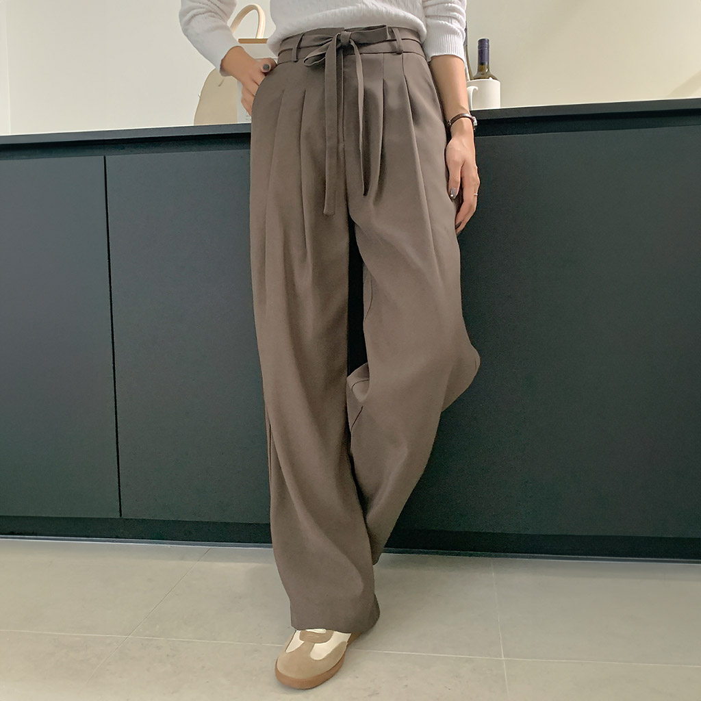 [ジャスト丈/ロング丈] リボンピンタックワイドスラックスパンツ