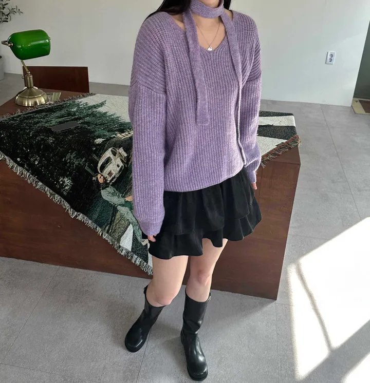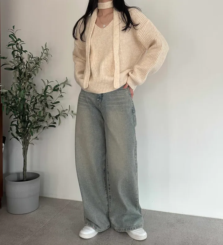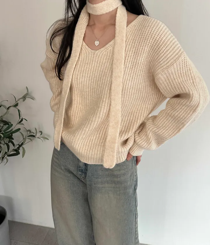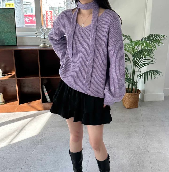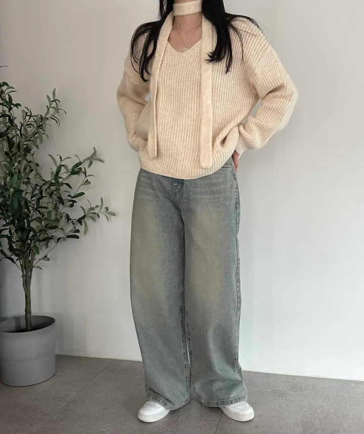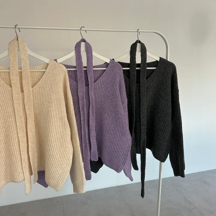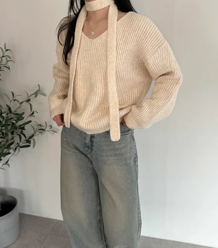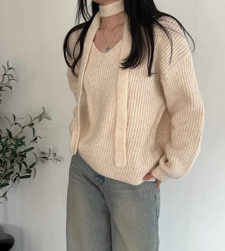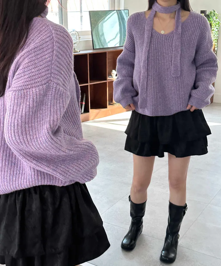 ウールマフラーVネックリブオーバーサイズニット(3color)