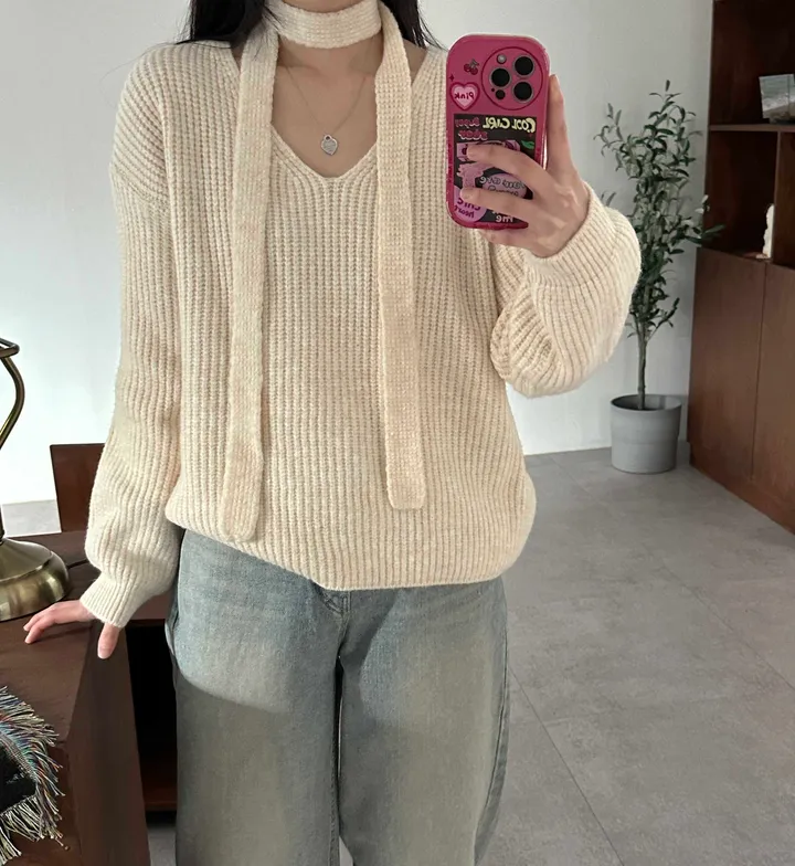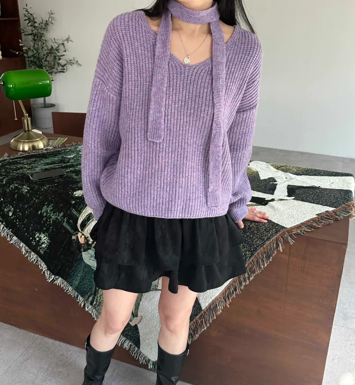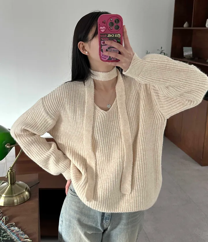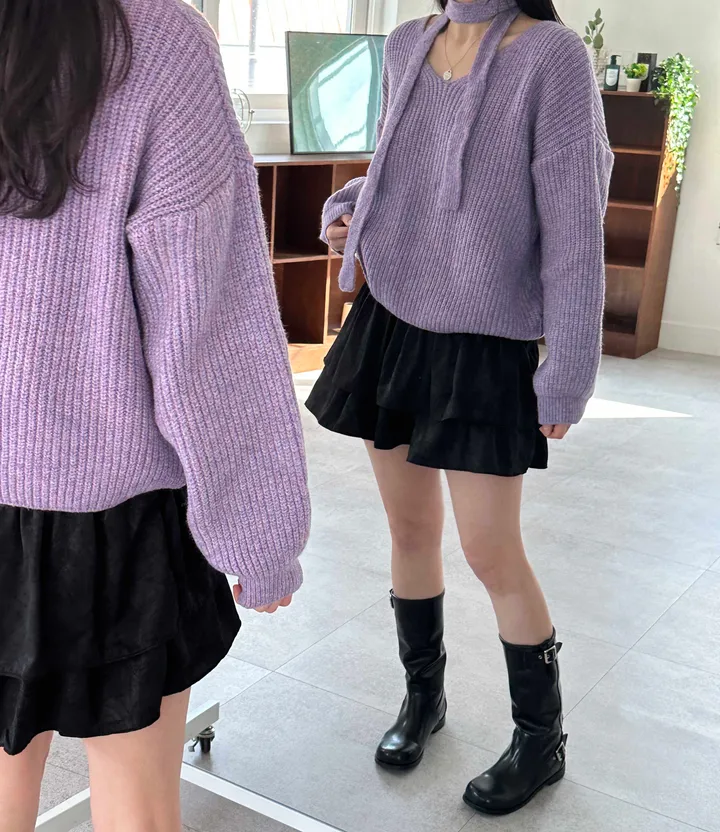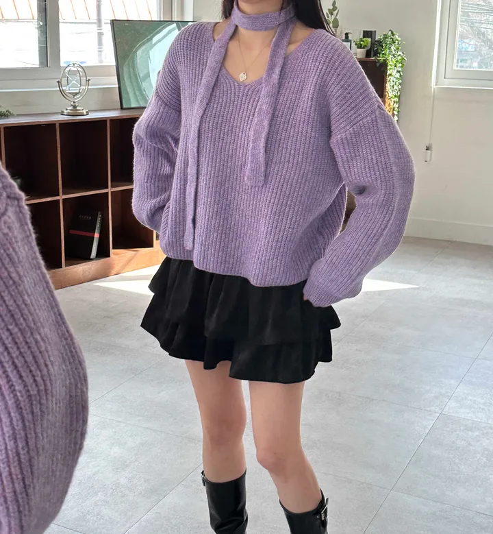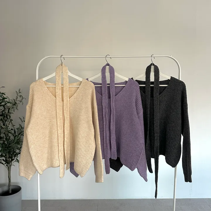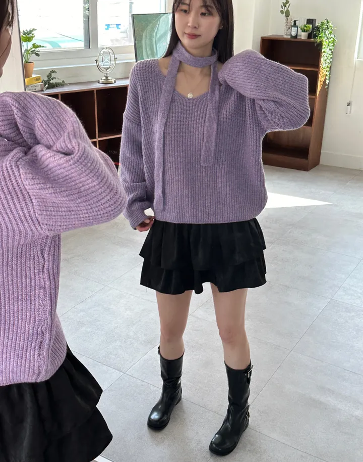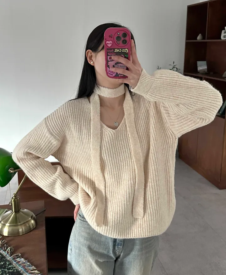 ウールマフラーVネックリブオーバーサイズニット(3color)