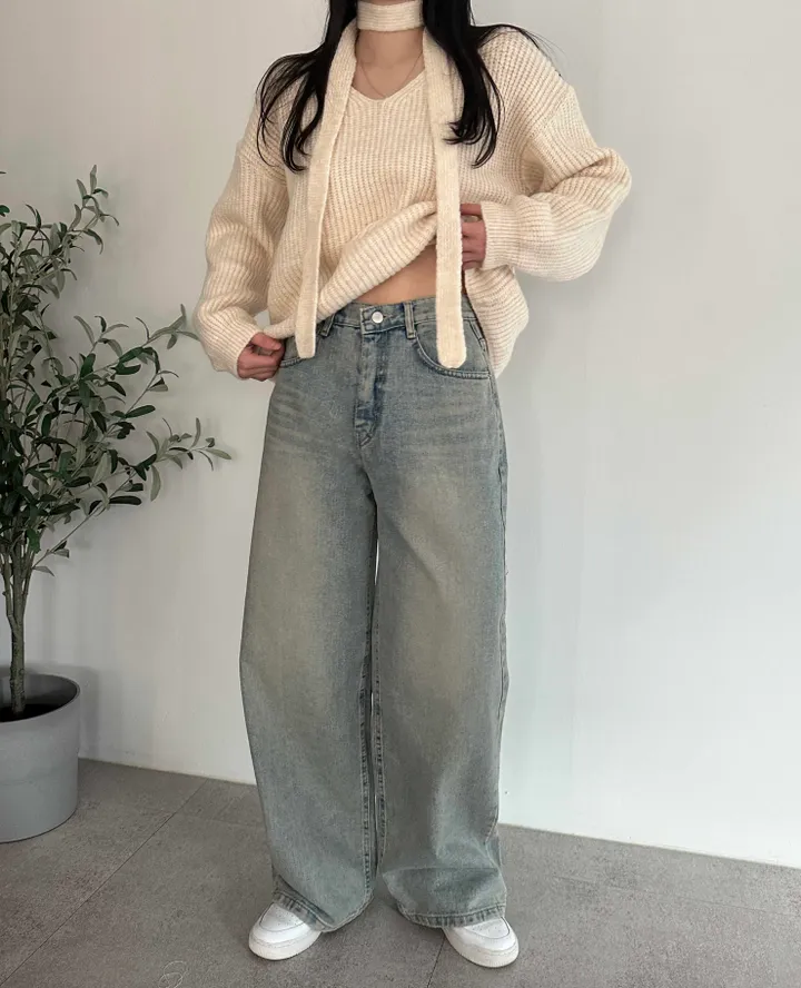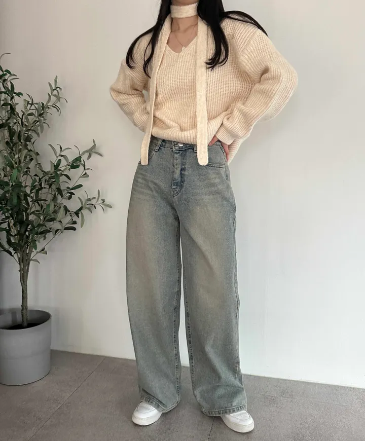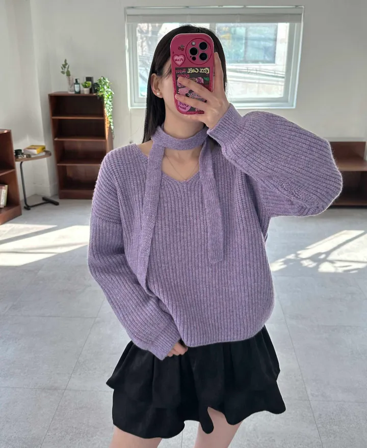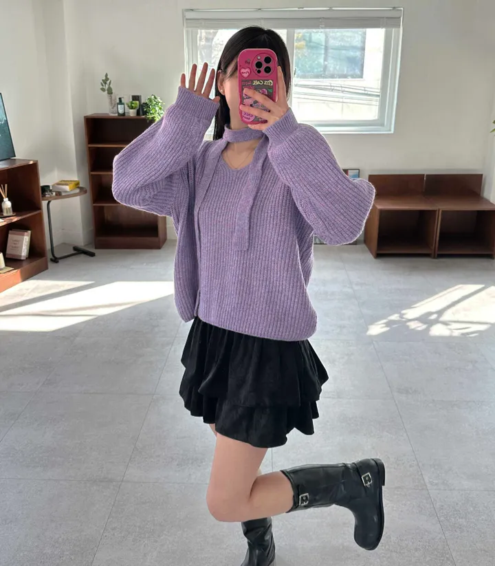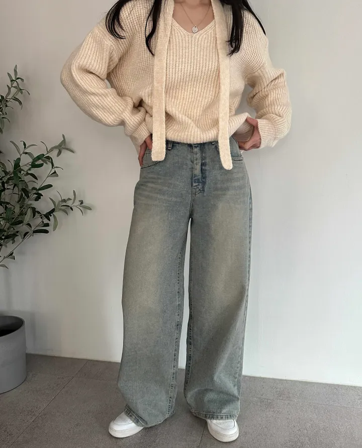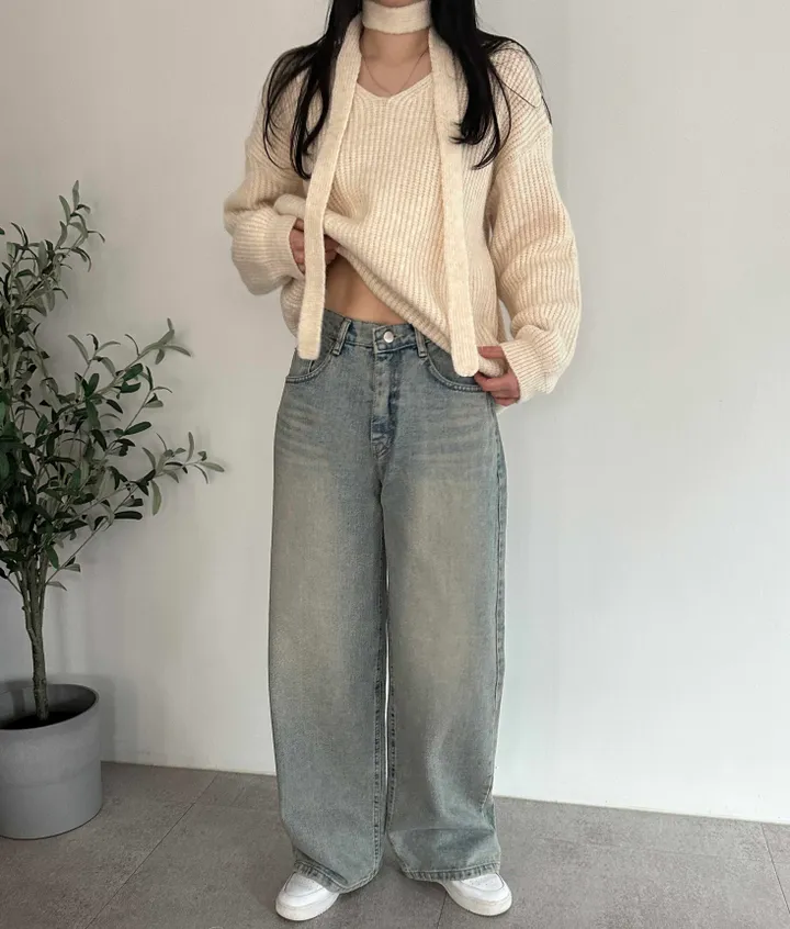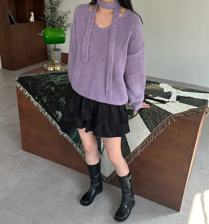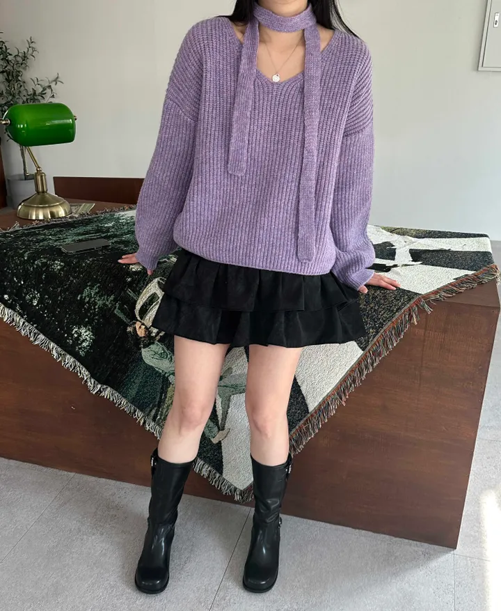 ウールマフラーVネックリブオーバーサイズニット(3color)