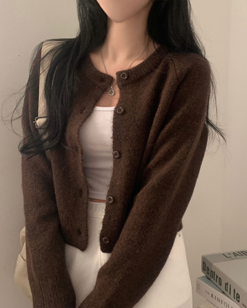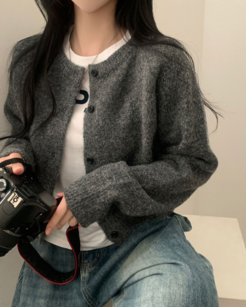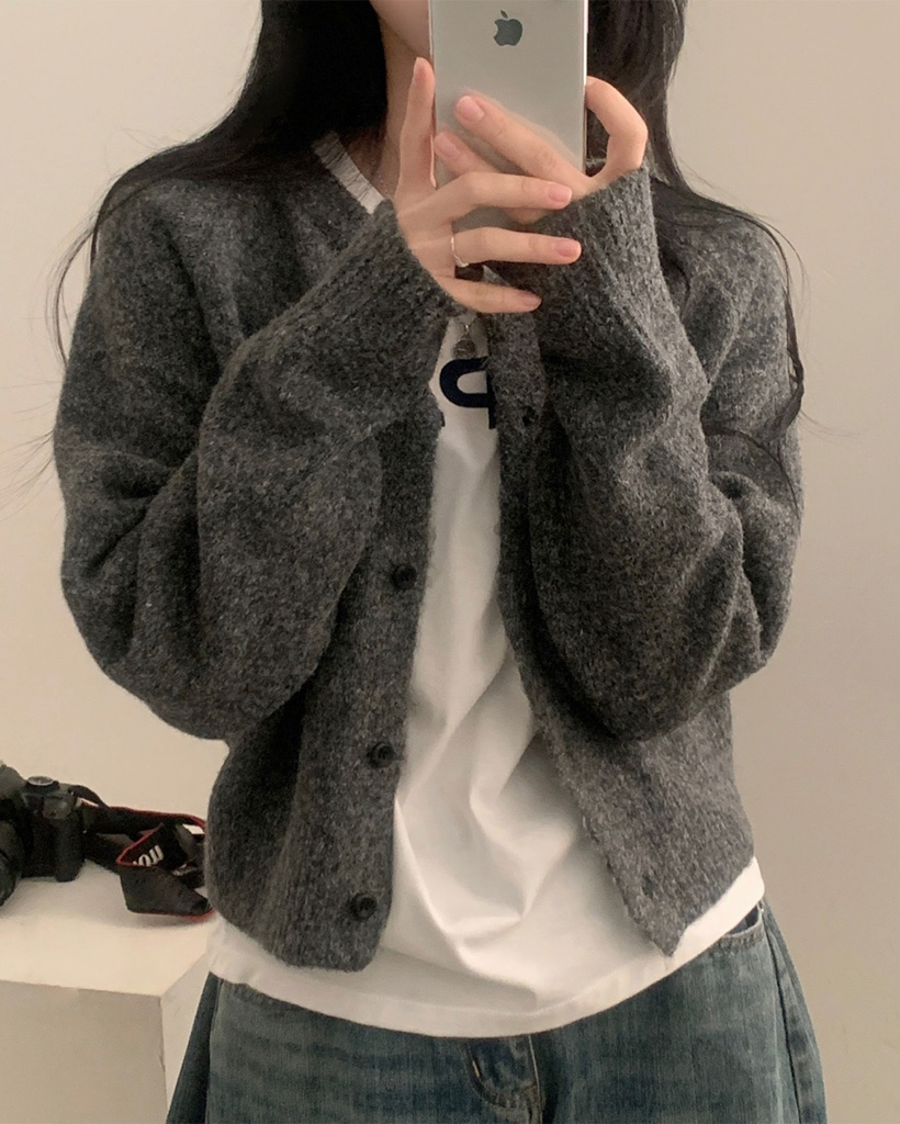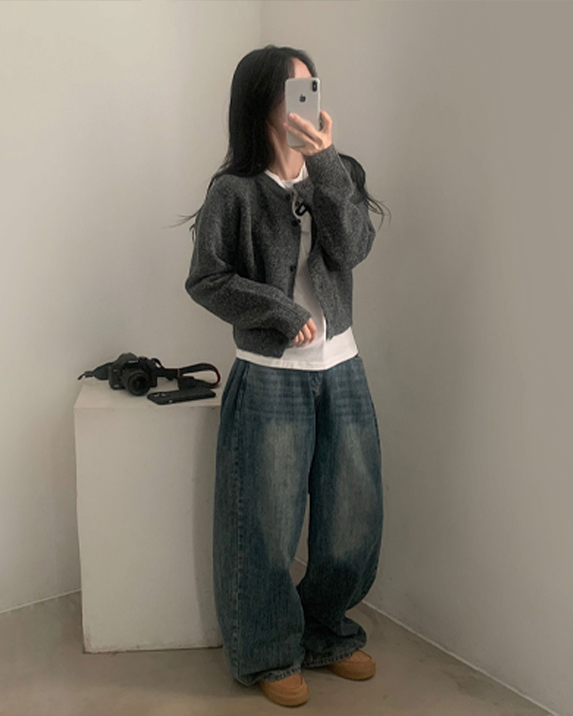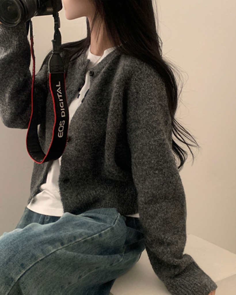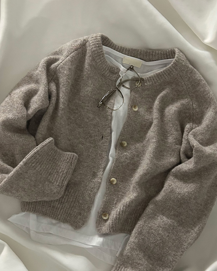 カシミヤ ウールアルパカラウンドニットカーディガン