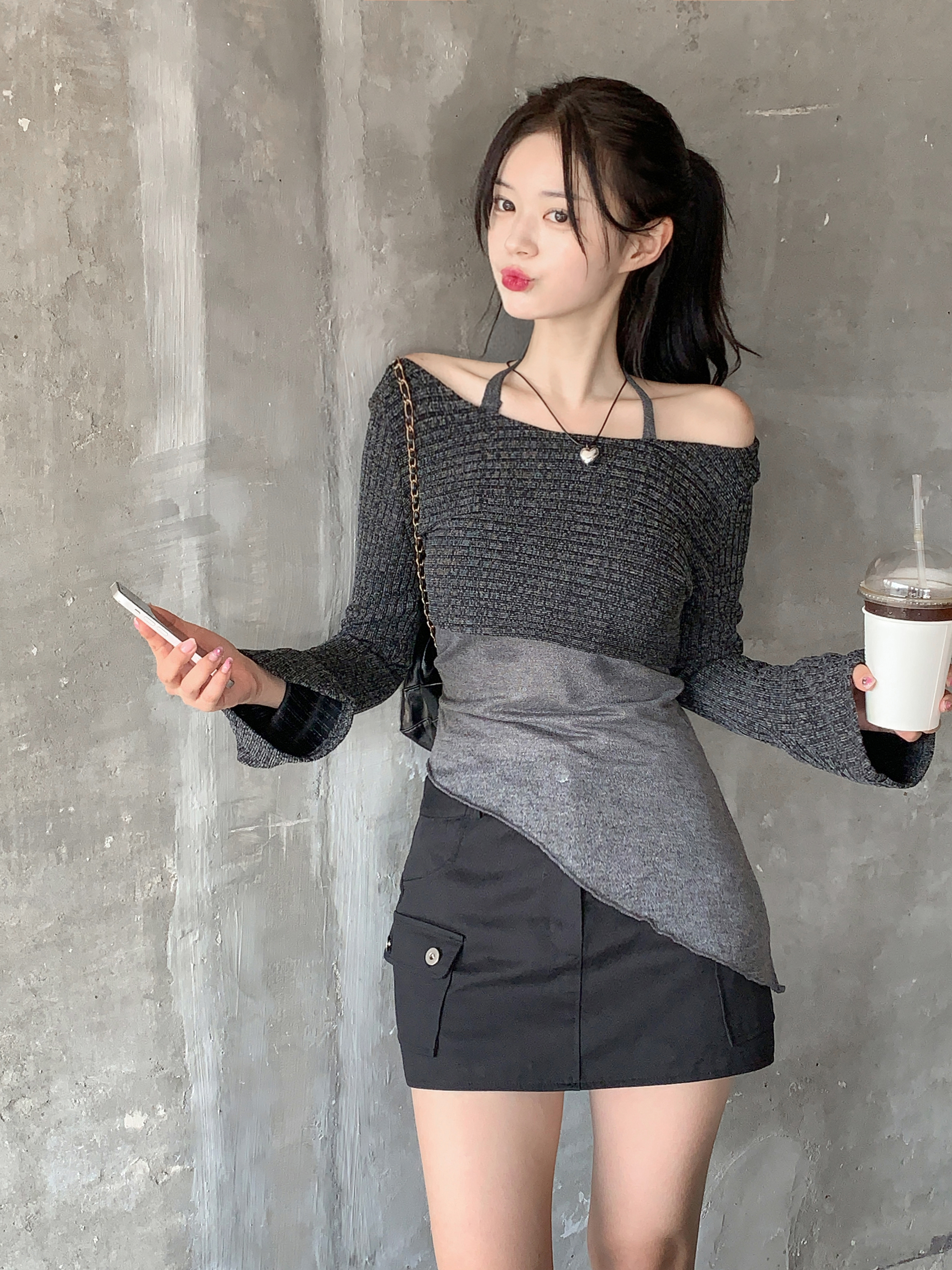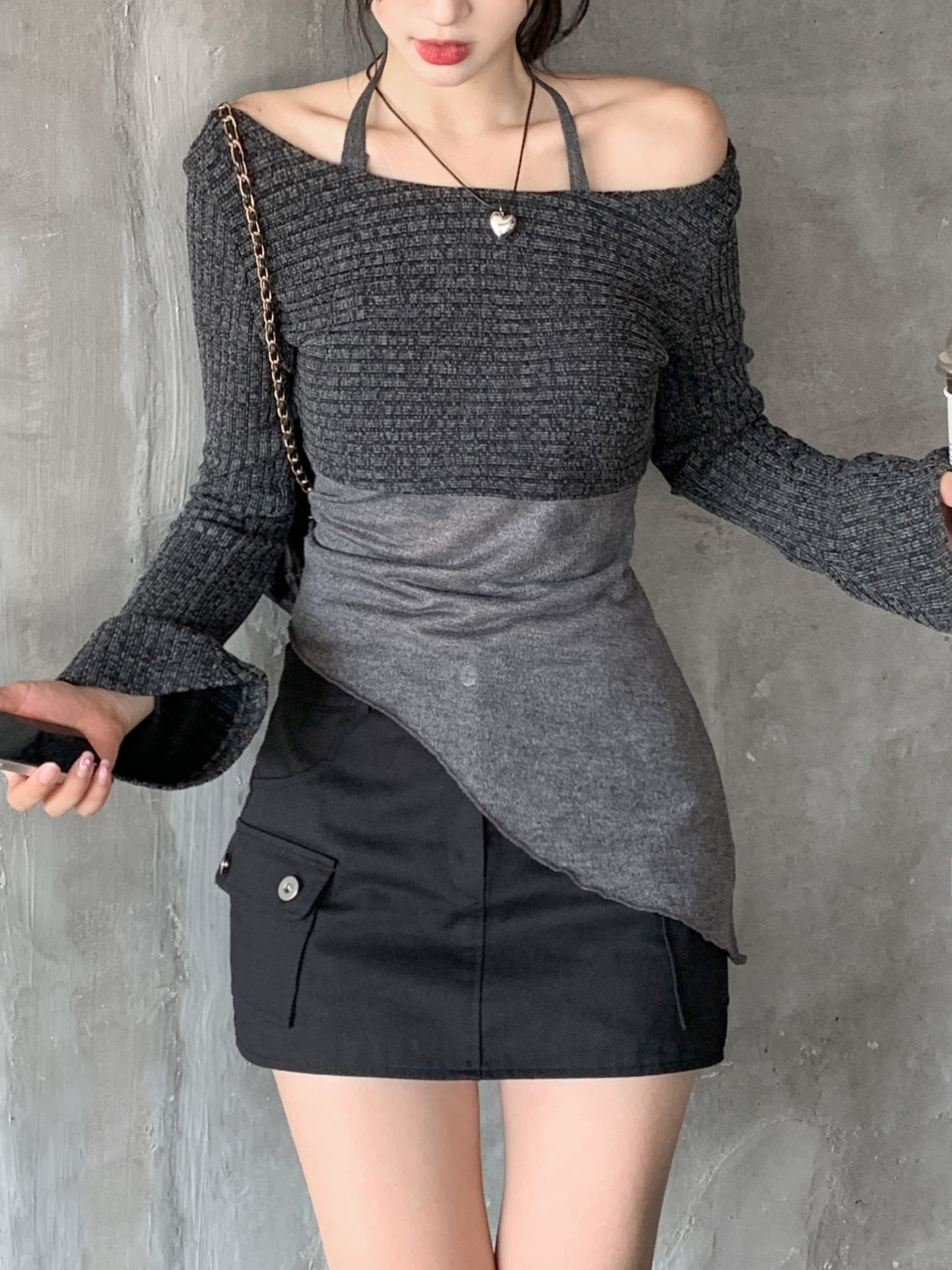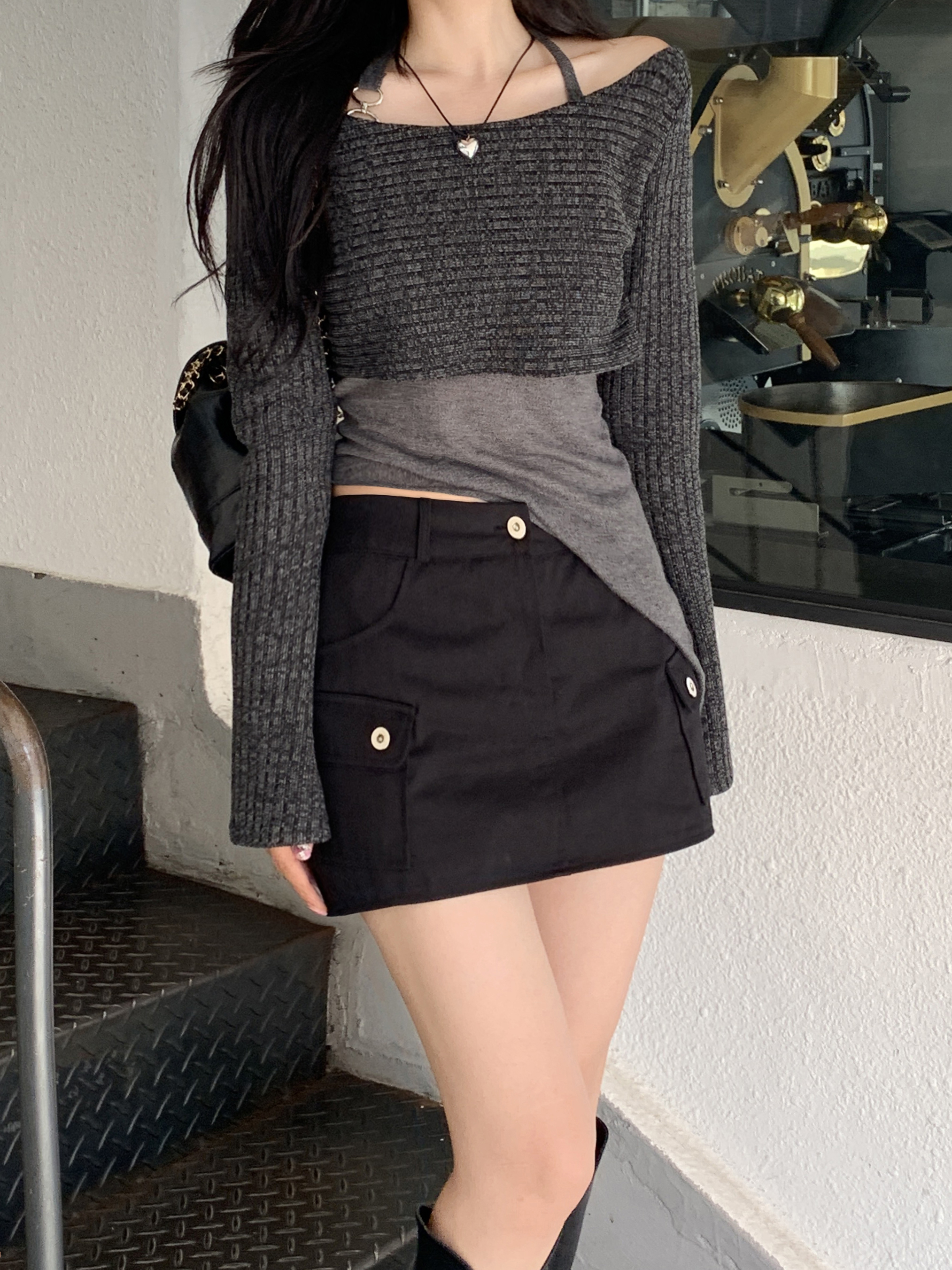 [パンツ型裏地付き] ローライズカーゴスカート(2color)