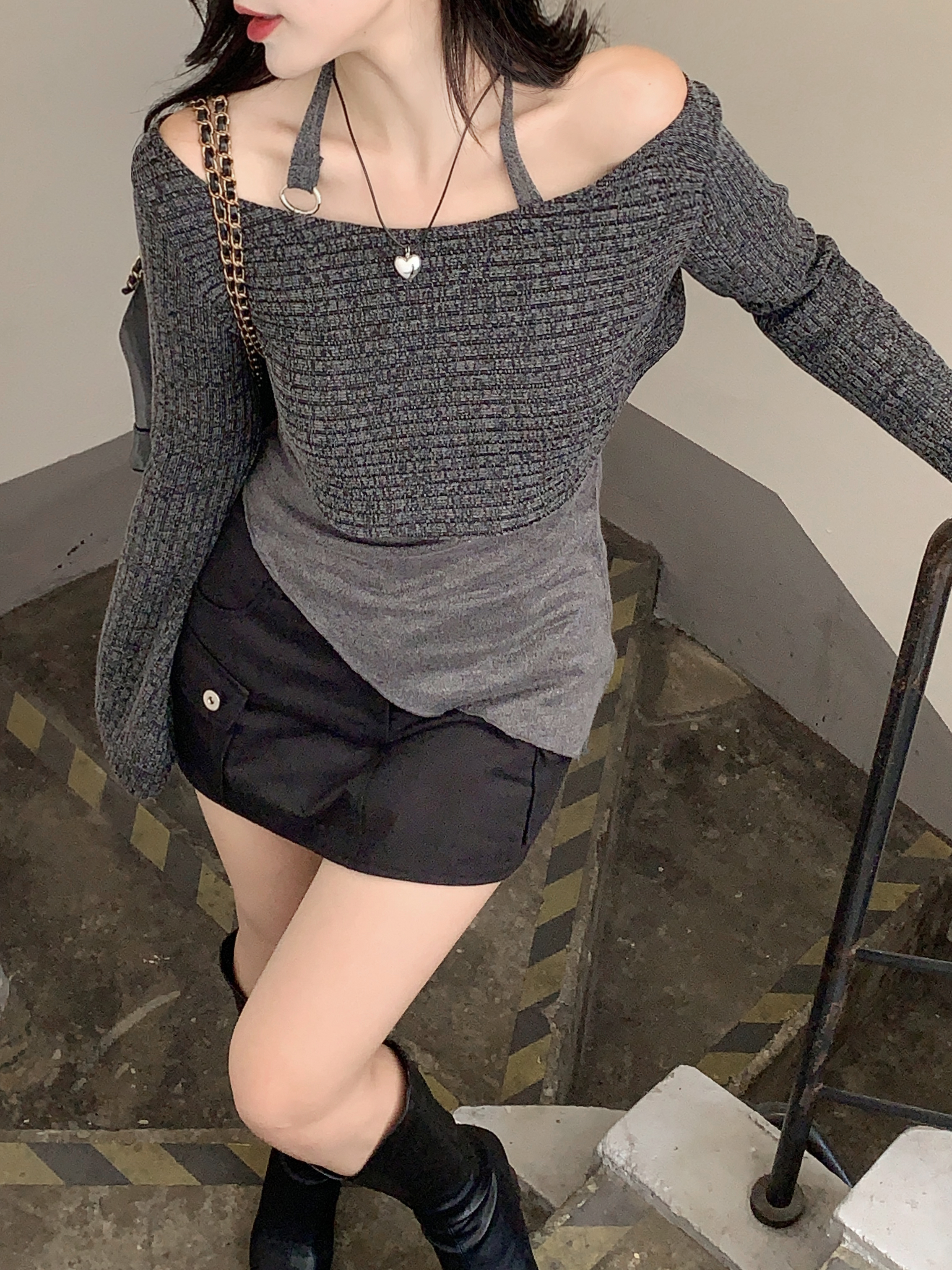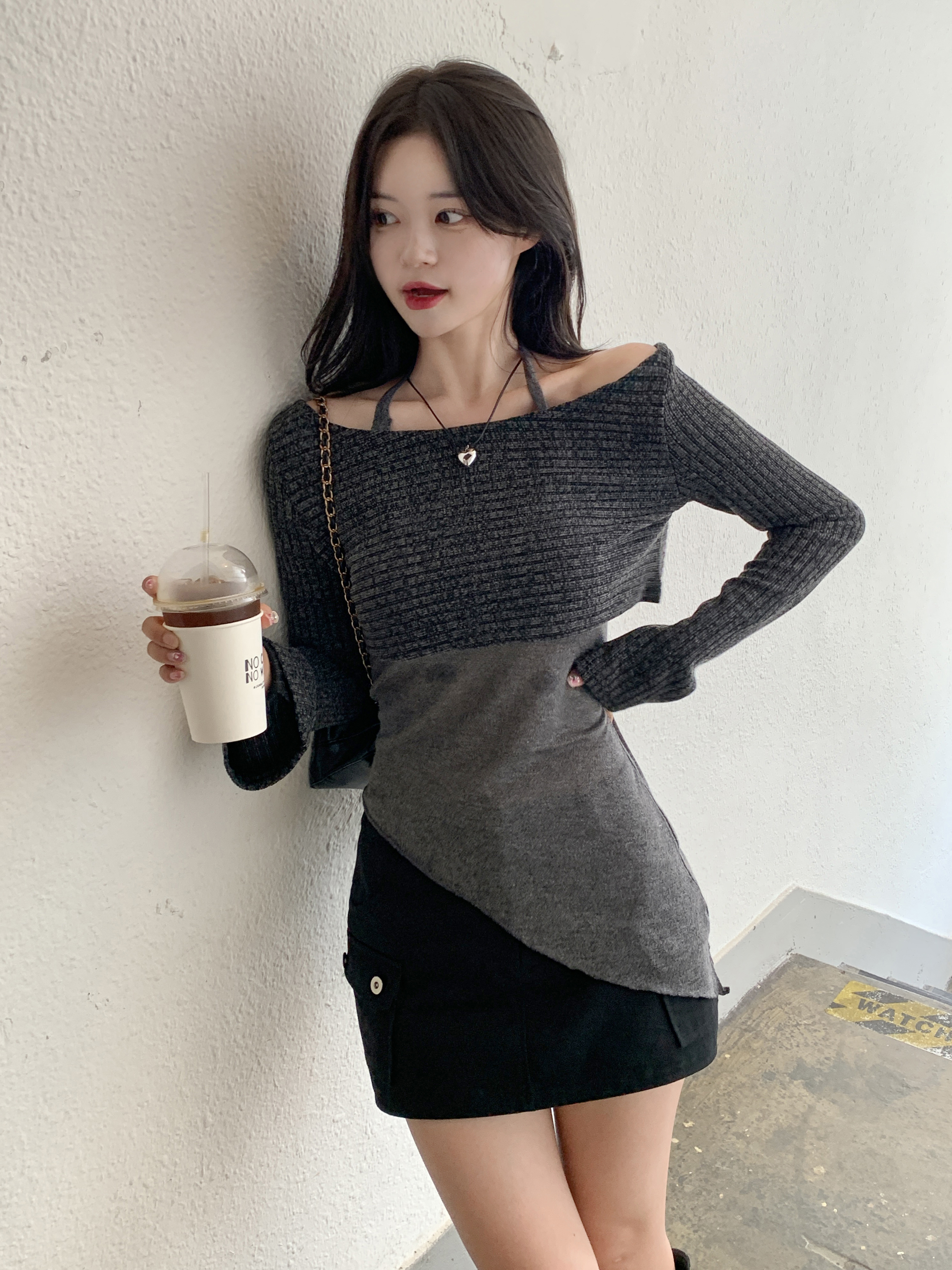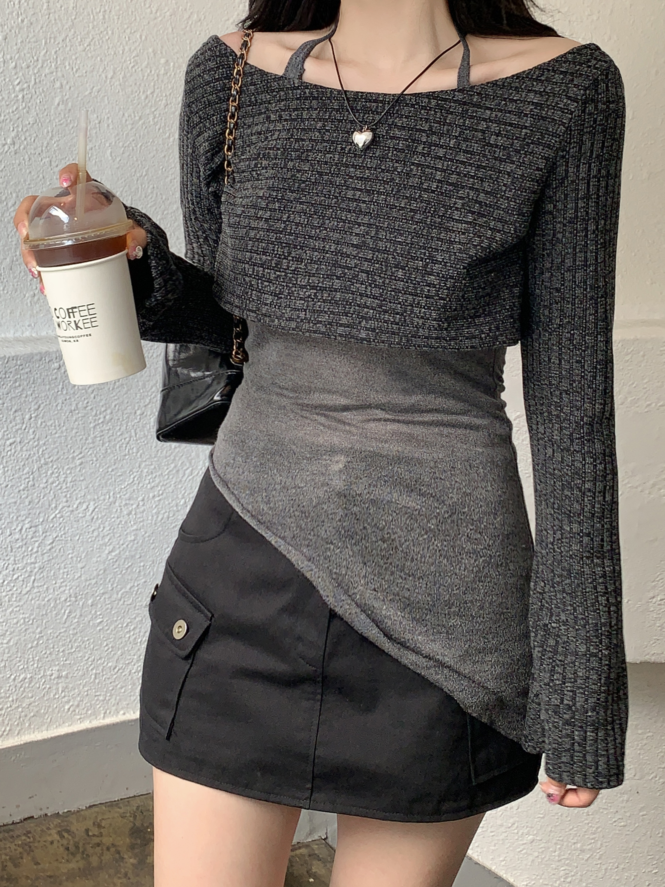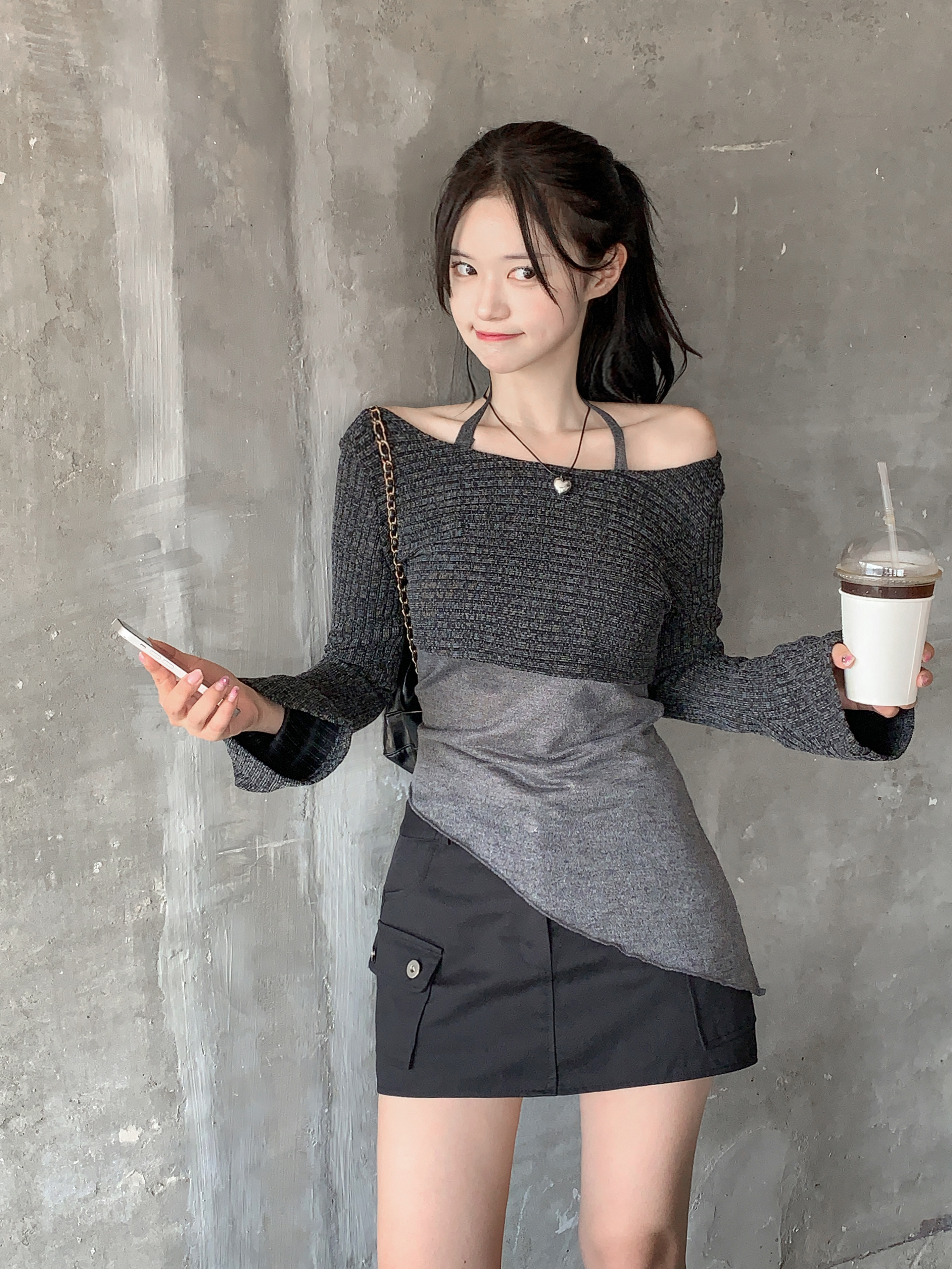 [パンツ型裏地付き] ローライズカーゴスカート(2color)