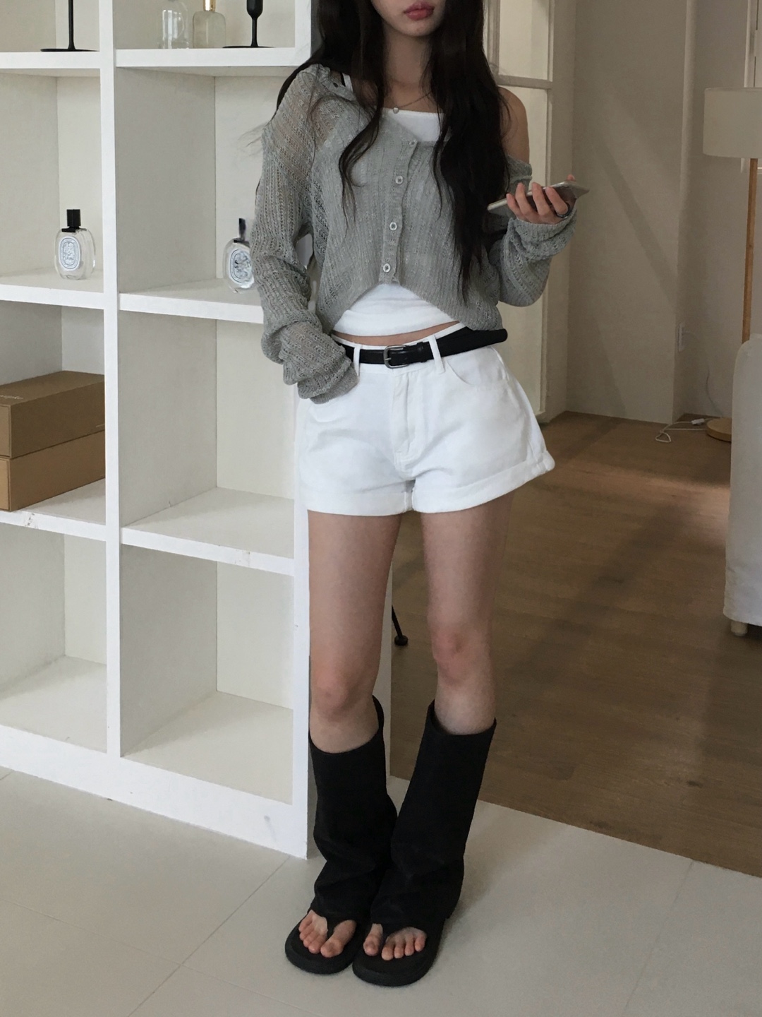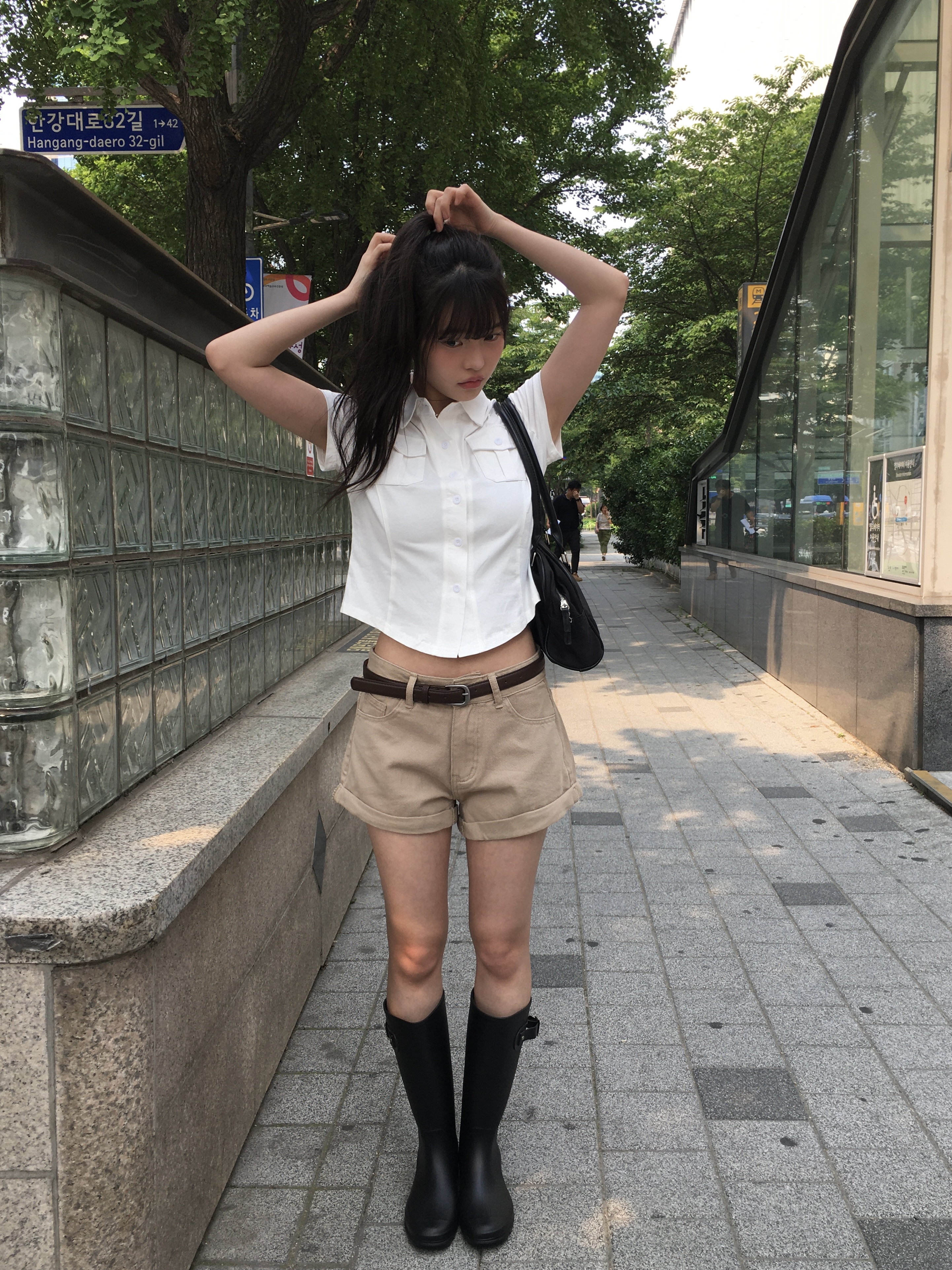 ロールアップショートパンツを