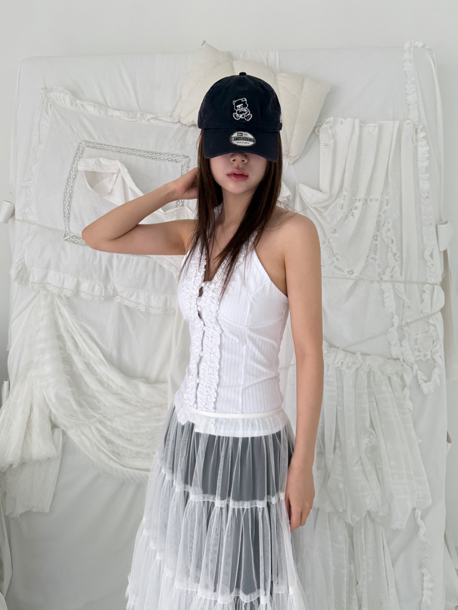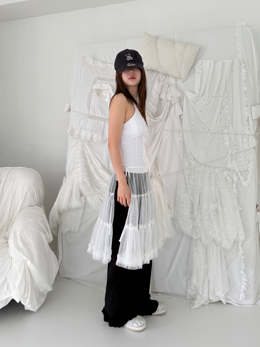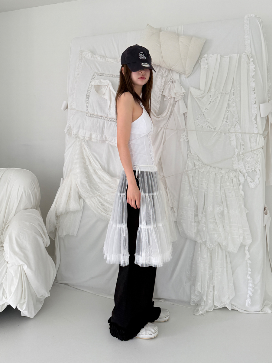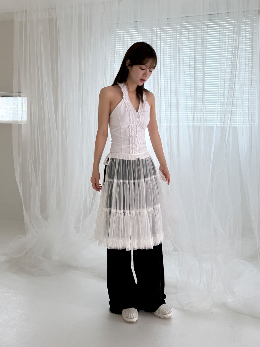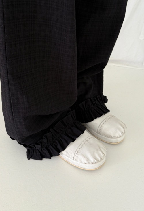 check frill pants