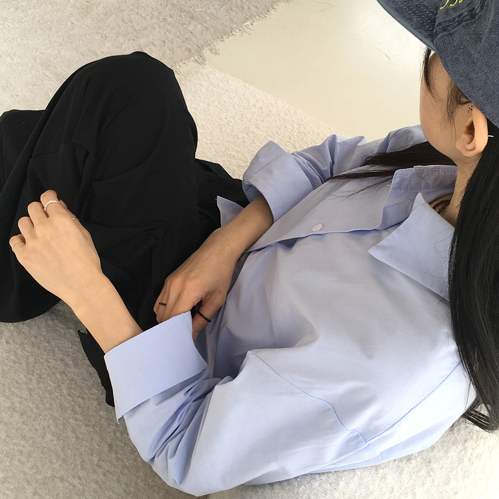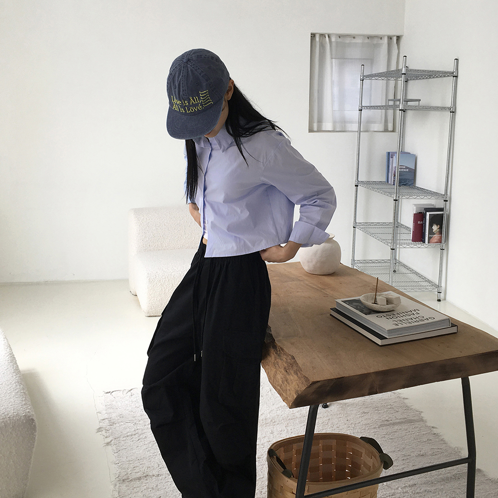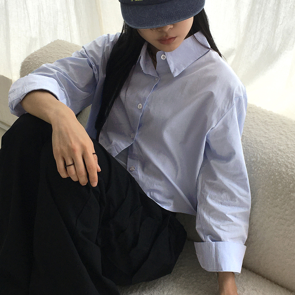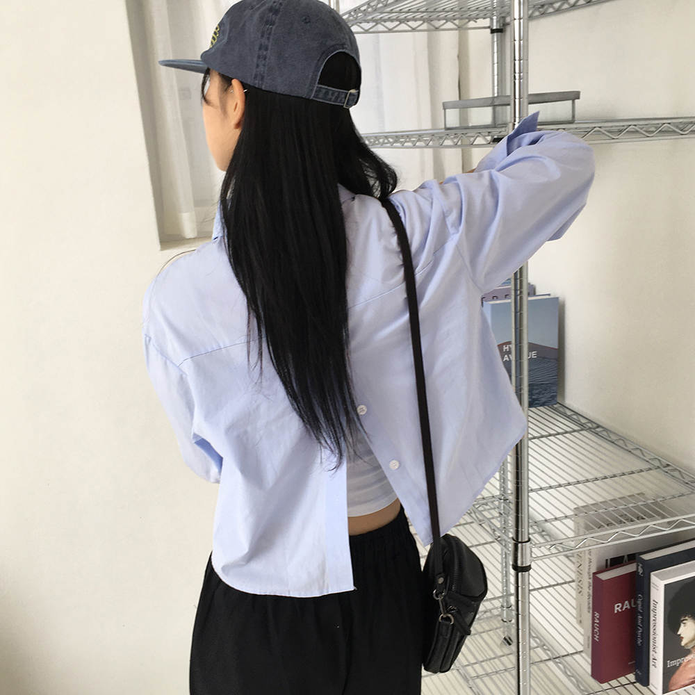 バックスリットボタンクロップド長袖シャツ