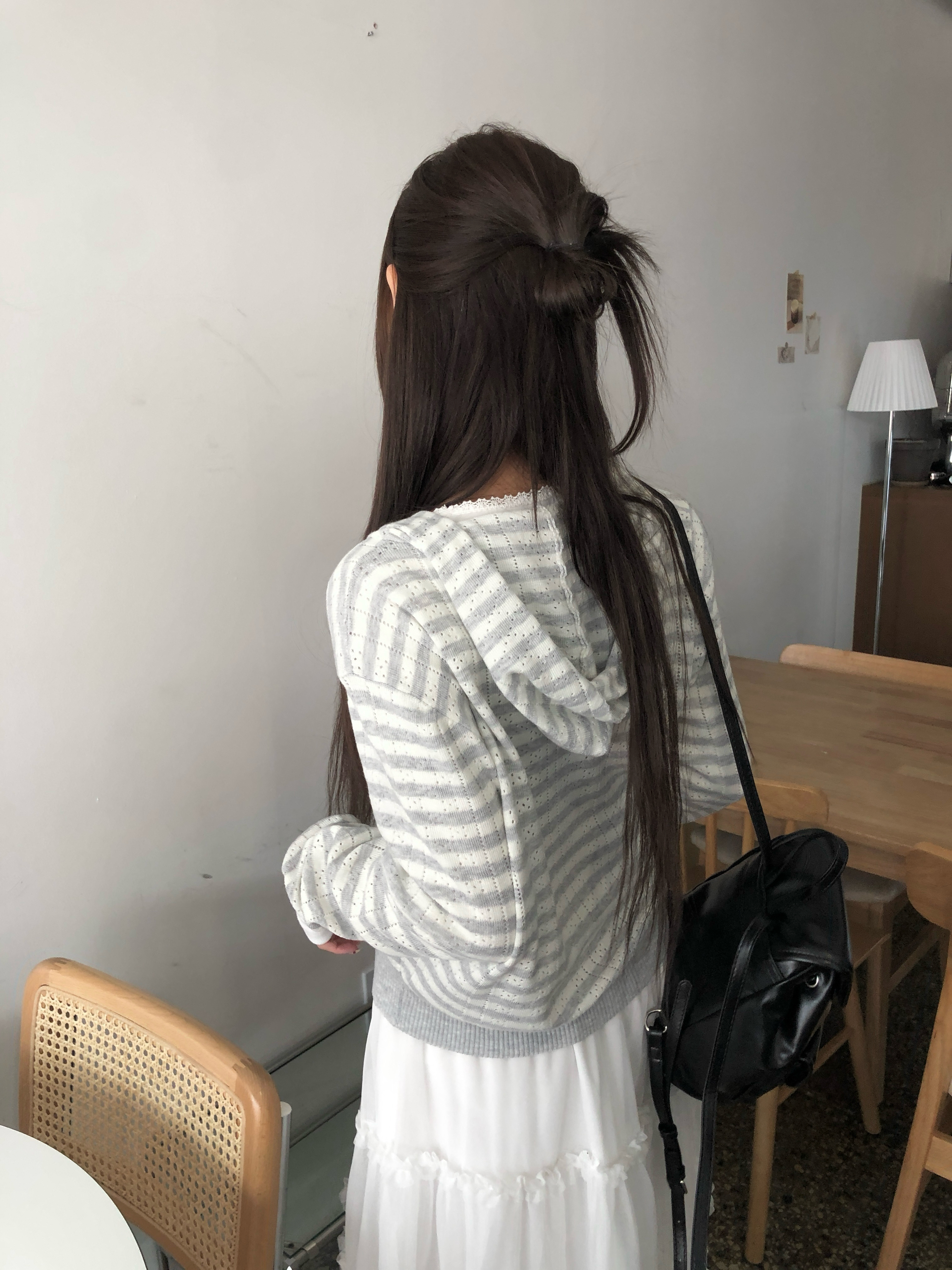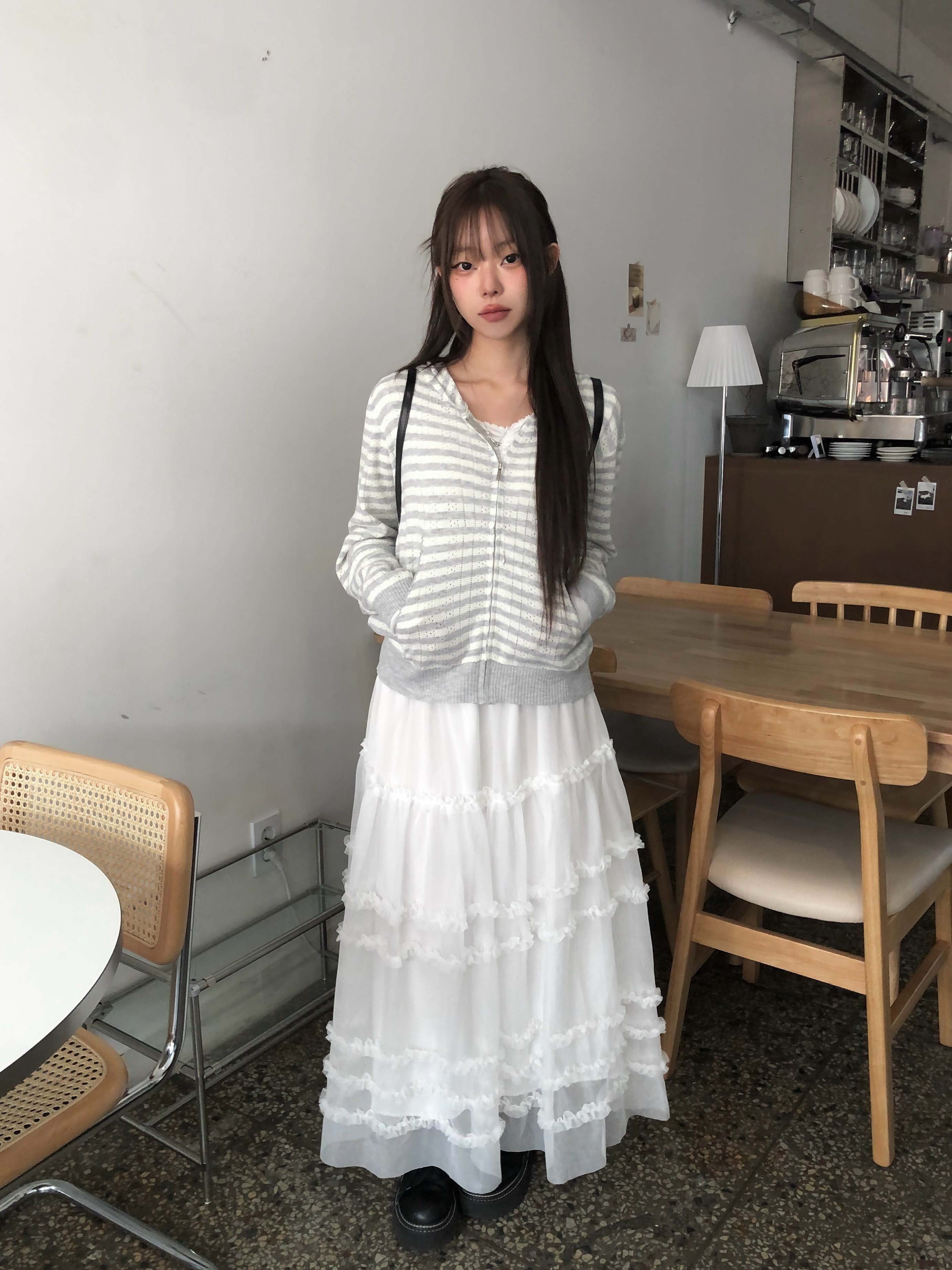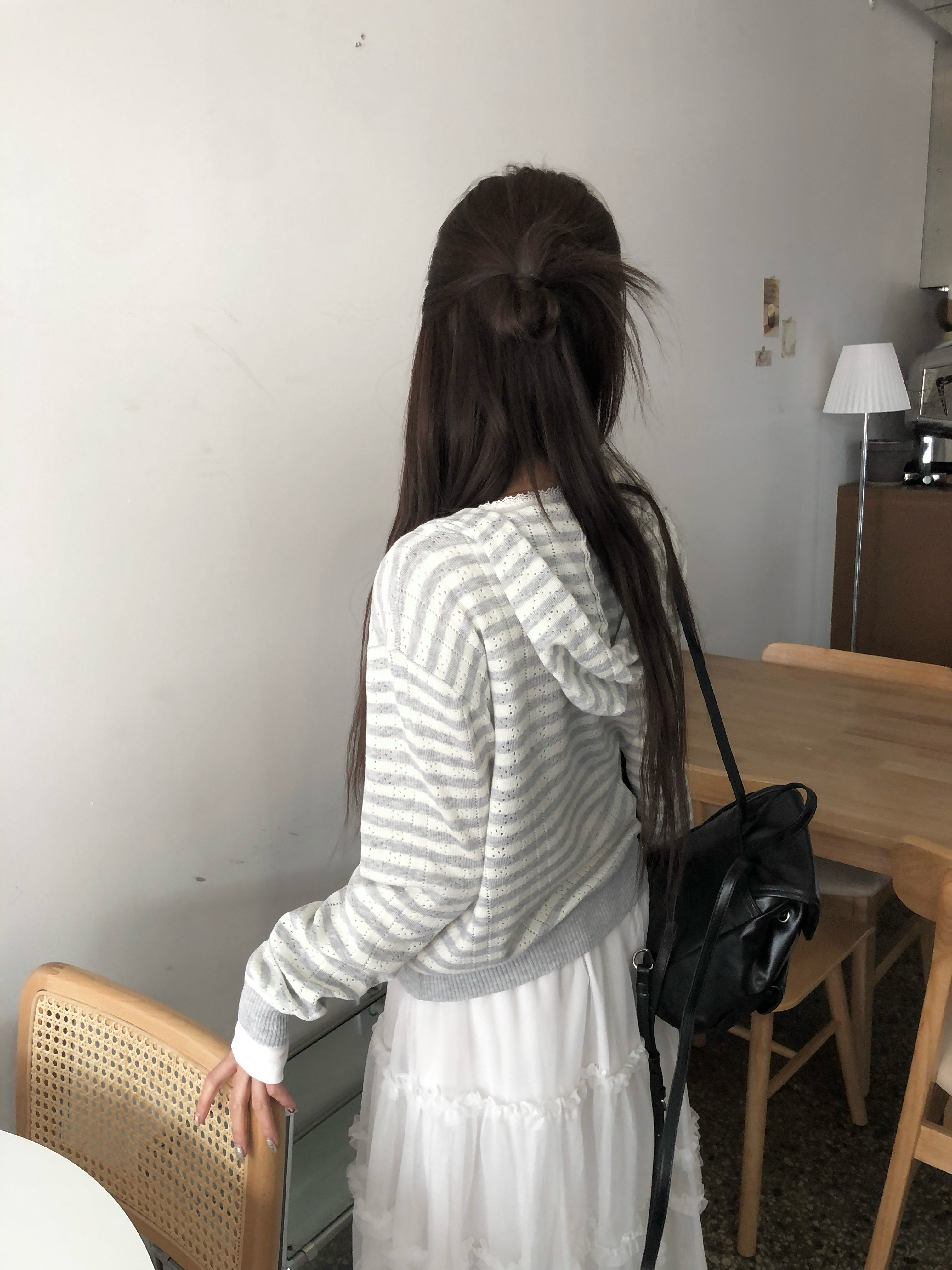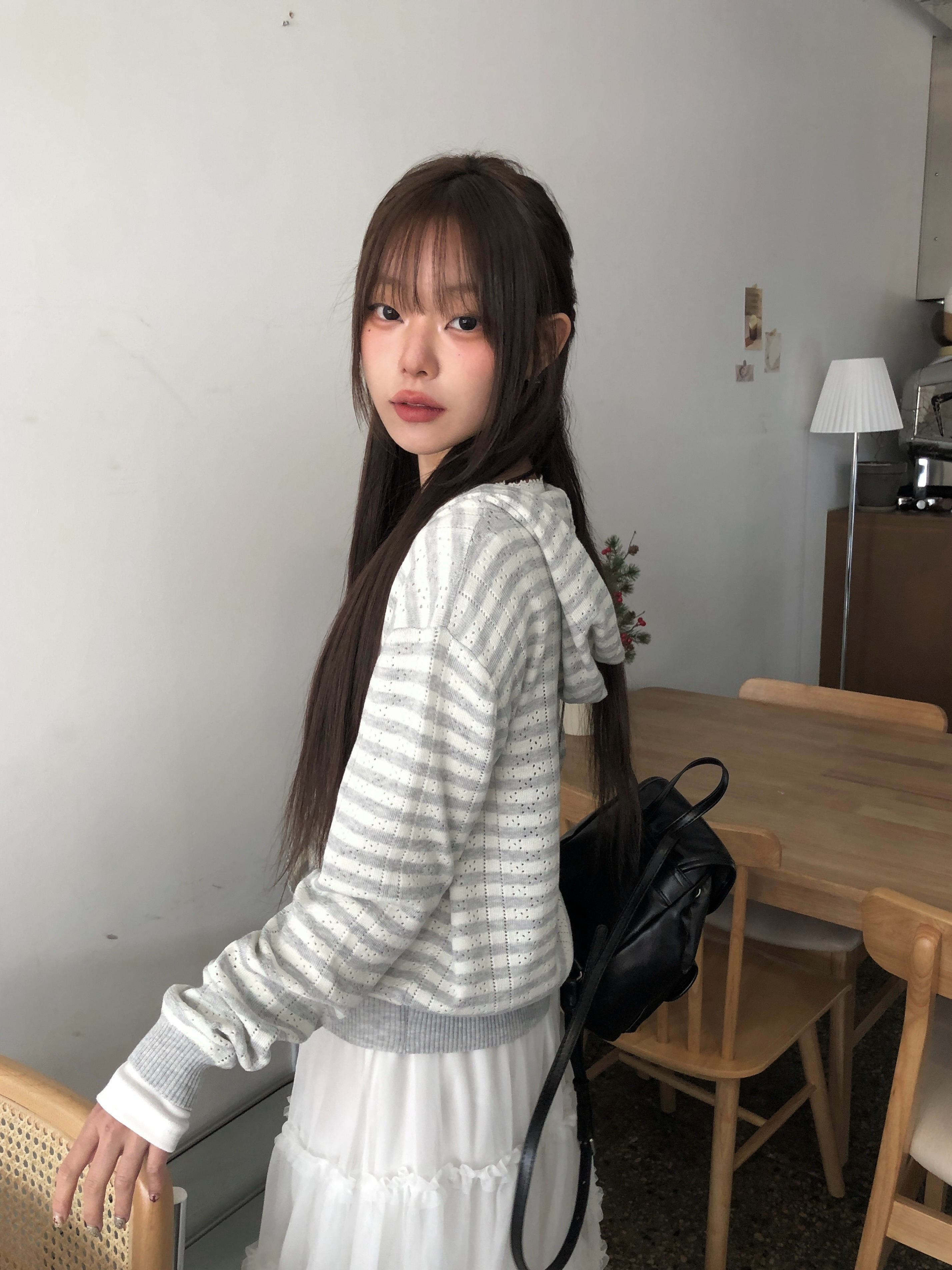 ボーダーニットフードジップアップです。