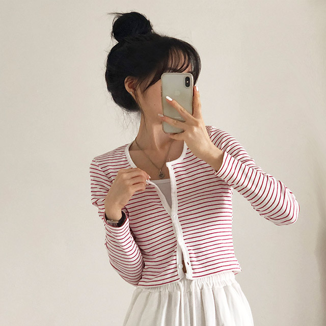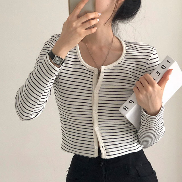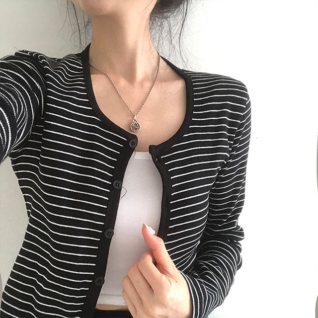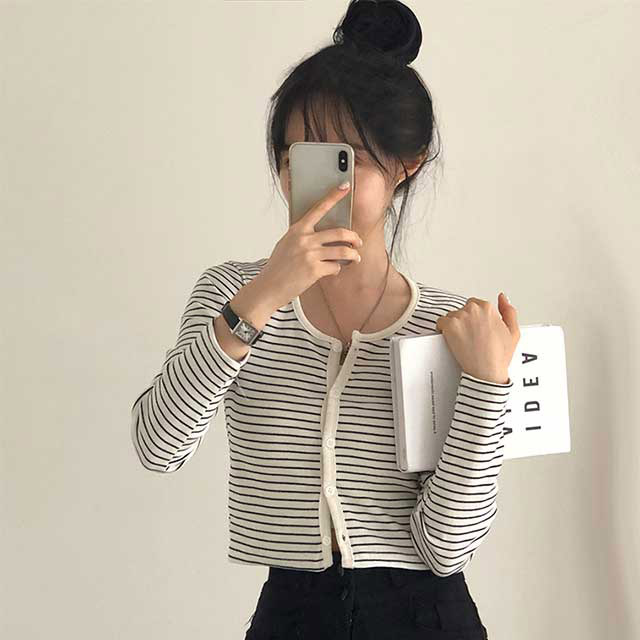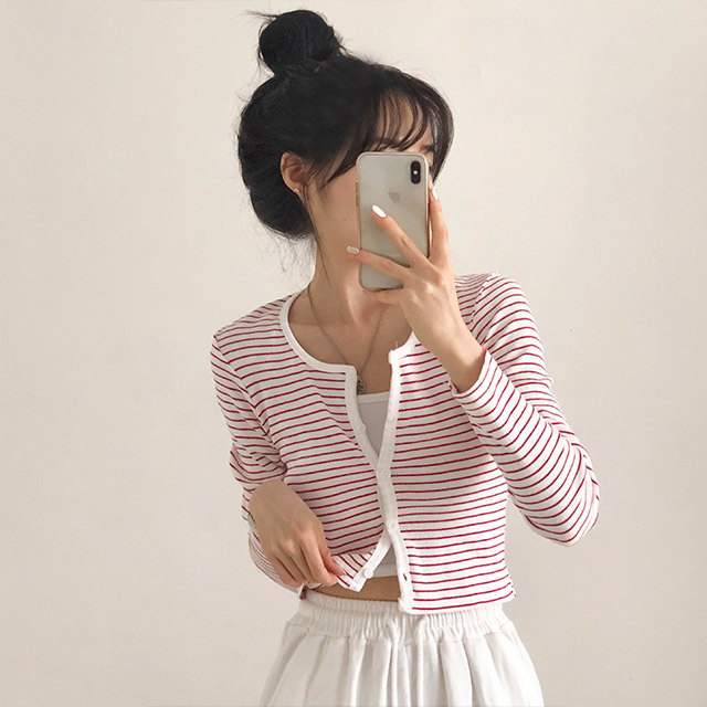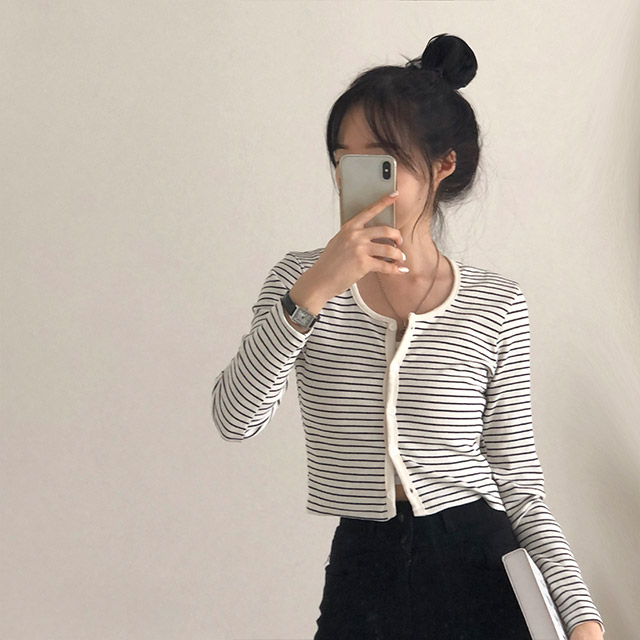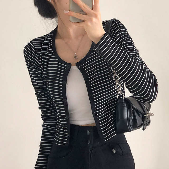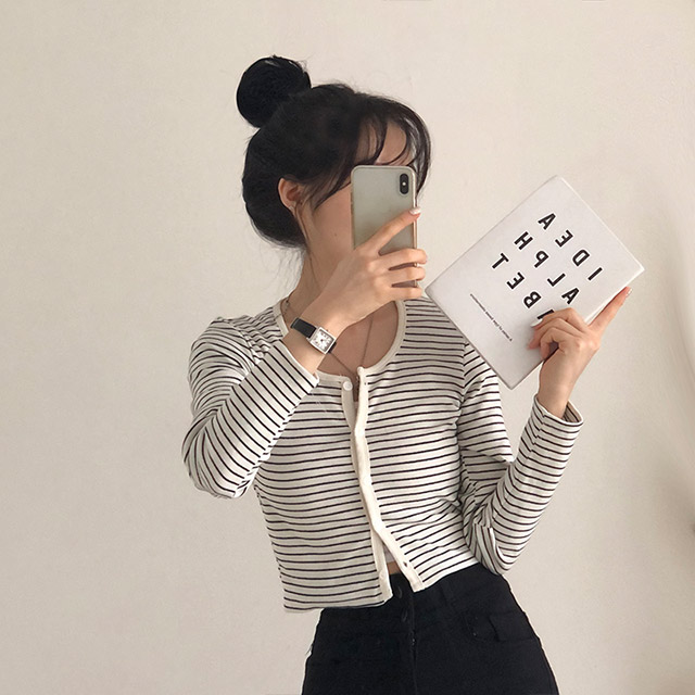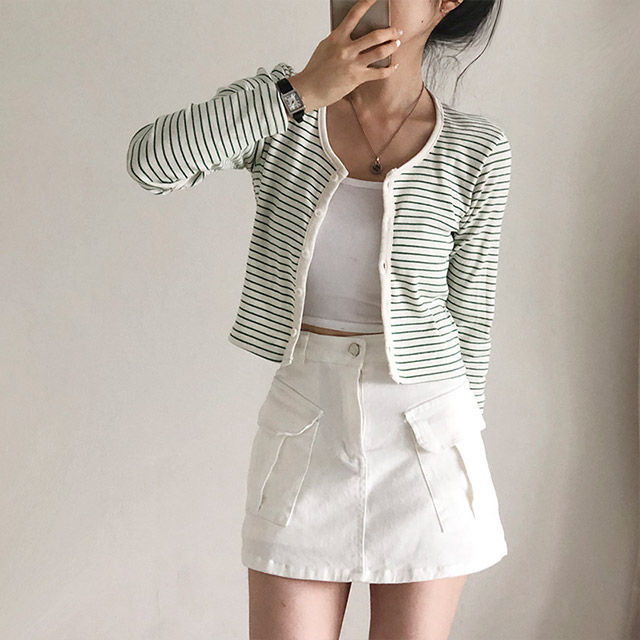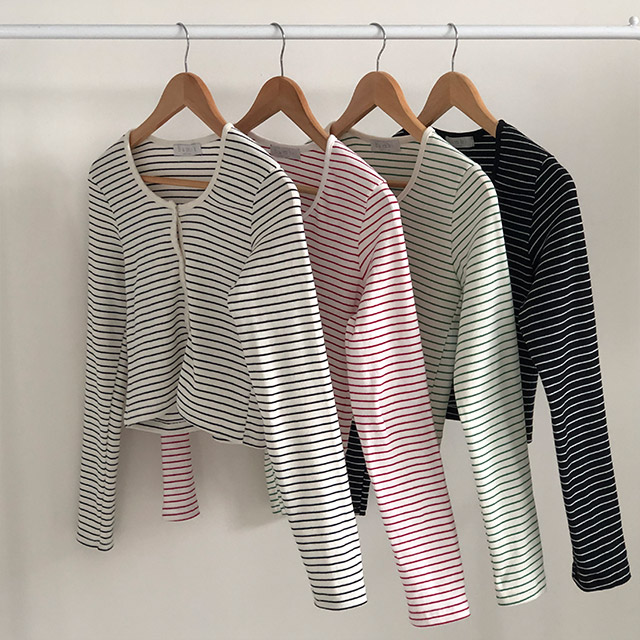 [4color]ボーダーUネッククロップドカーディガン