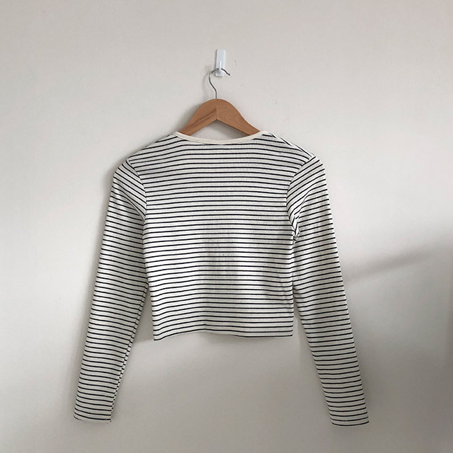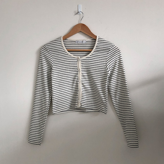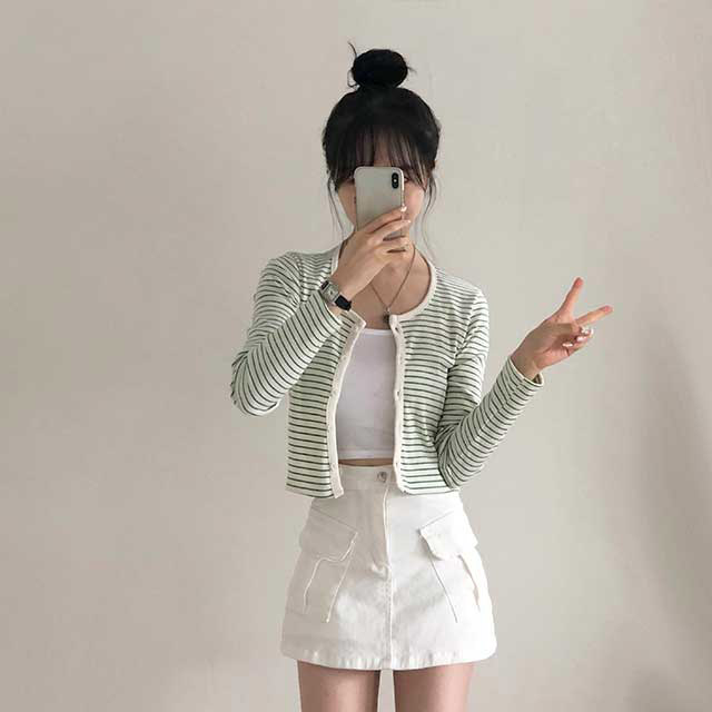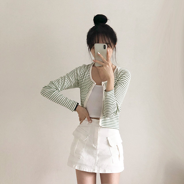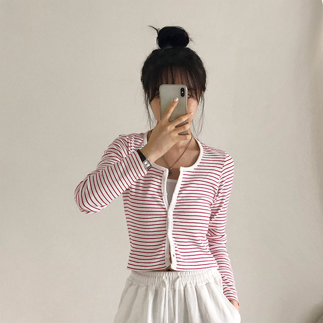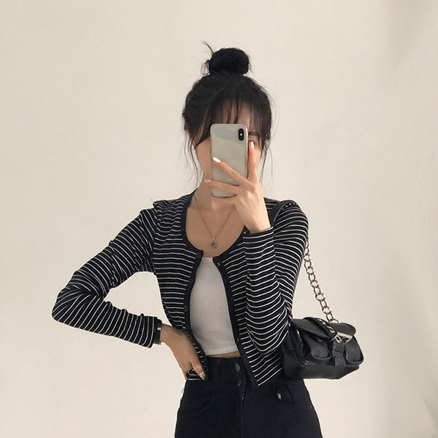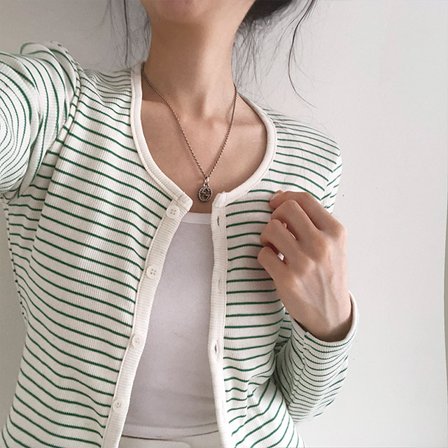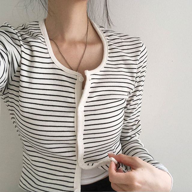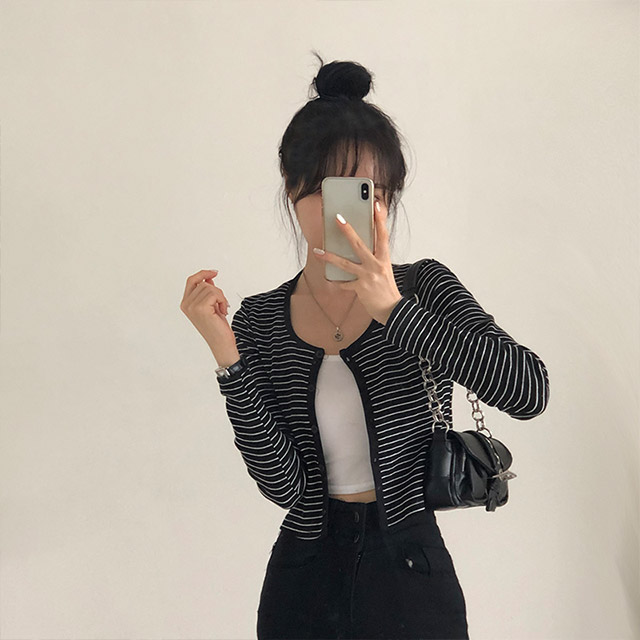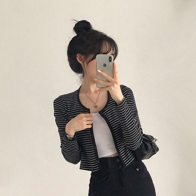 [4color]ボーダーUネッククロップドカーディガン