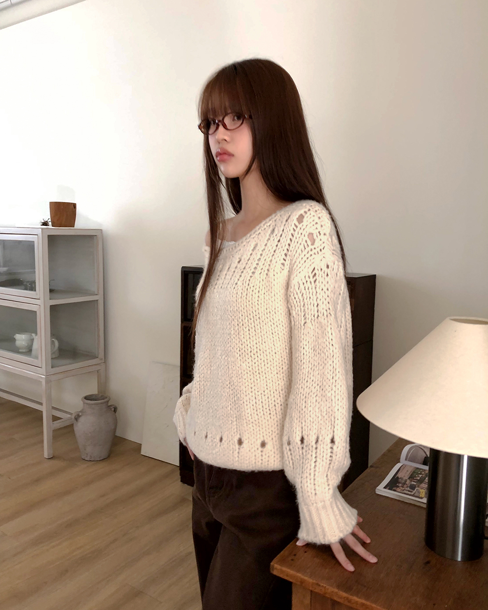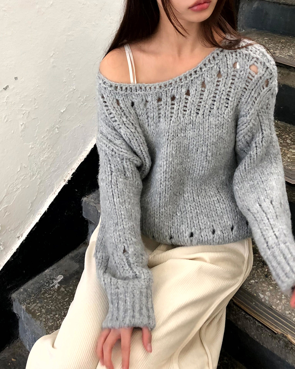 パンチングラウンドロングニット