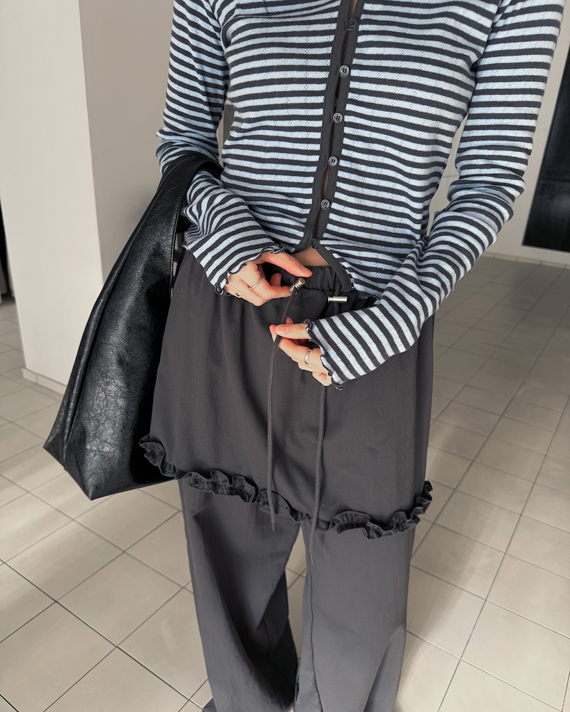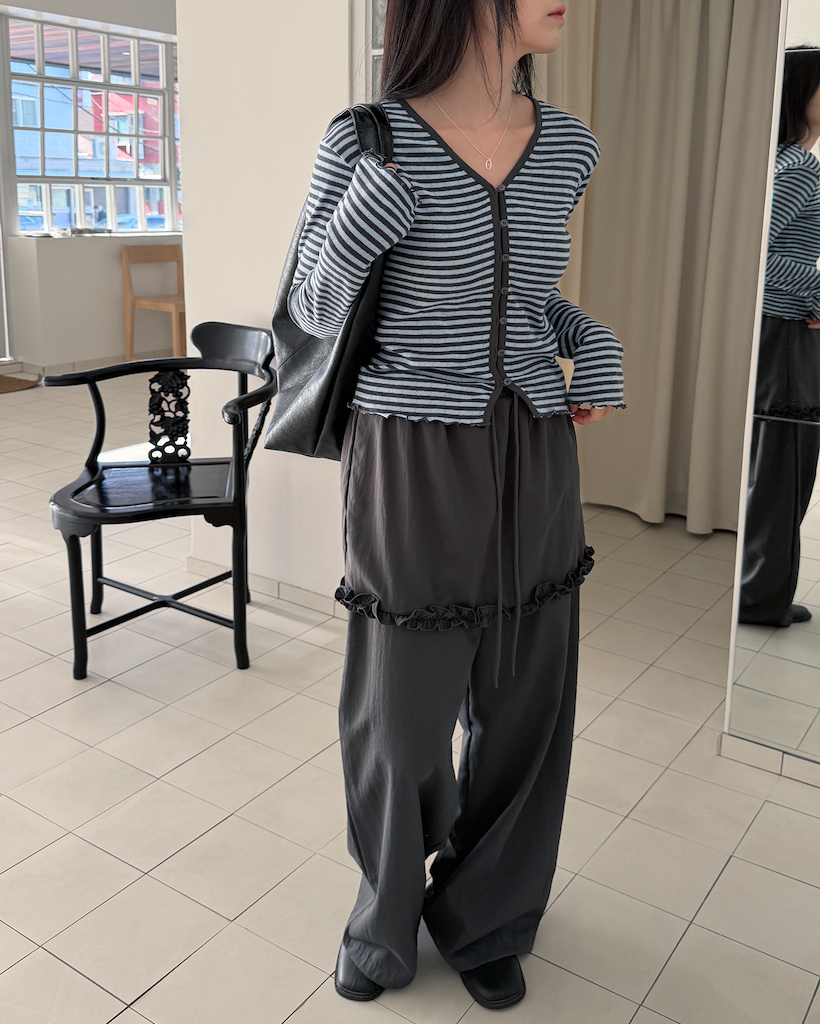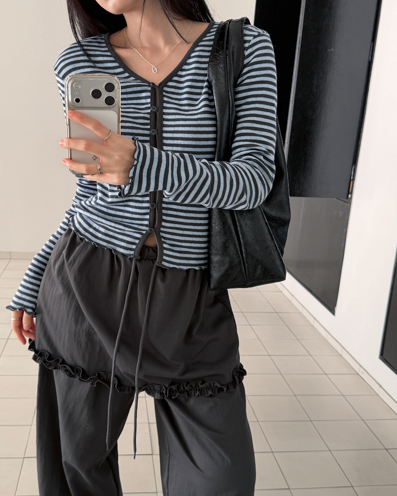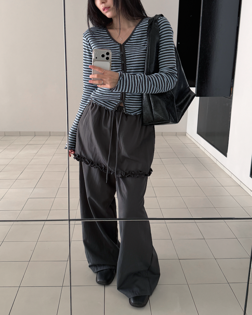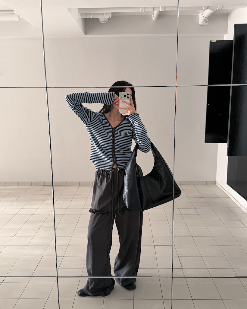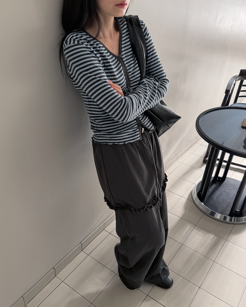 全体的なトーンを統一しているため、どんなボトムスとも自然に馴染み、洗練された印象を与えます。