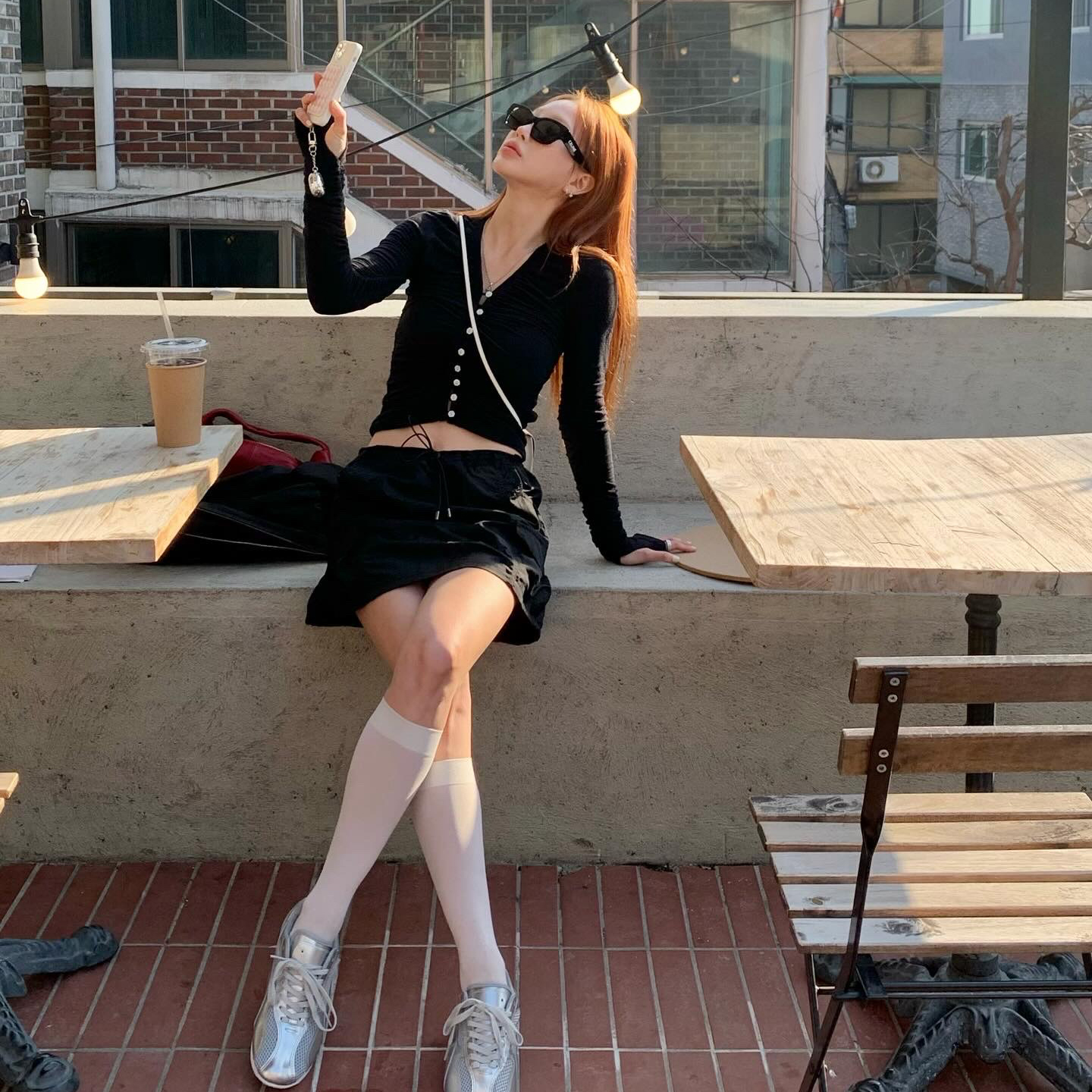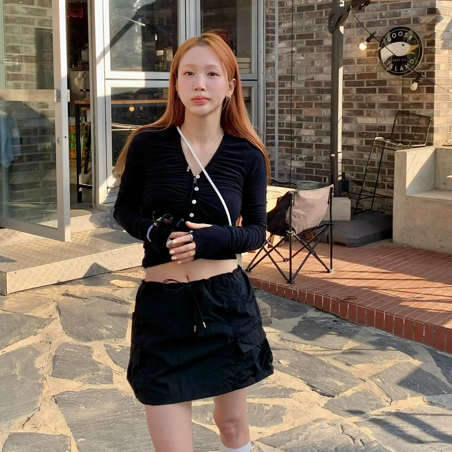 [original]Nylon Mini Skirt (Black)