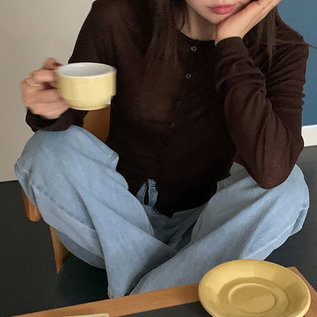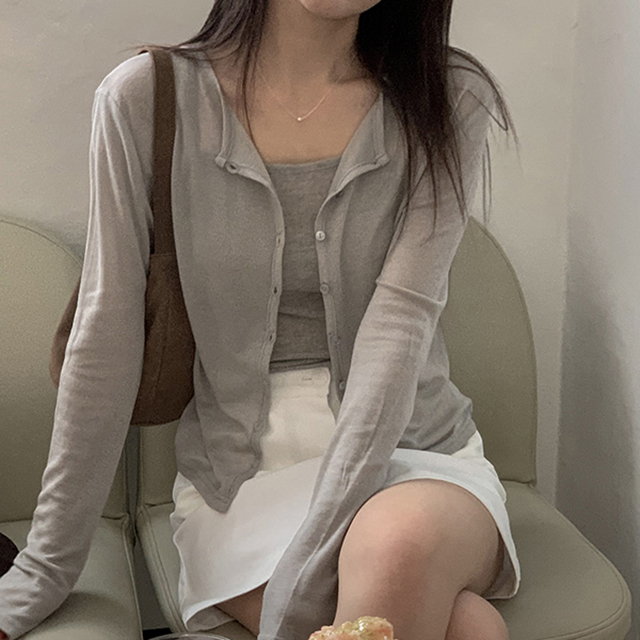 [5color]ウールテンセルレイヤードシースルー長袖カーディガン