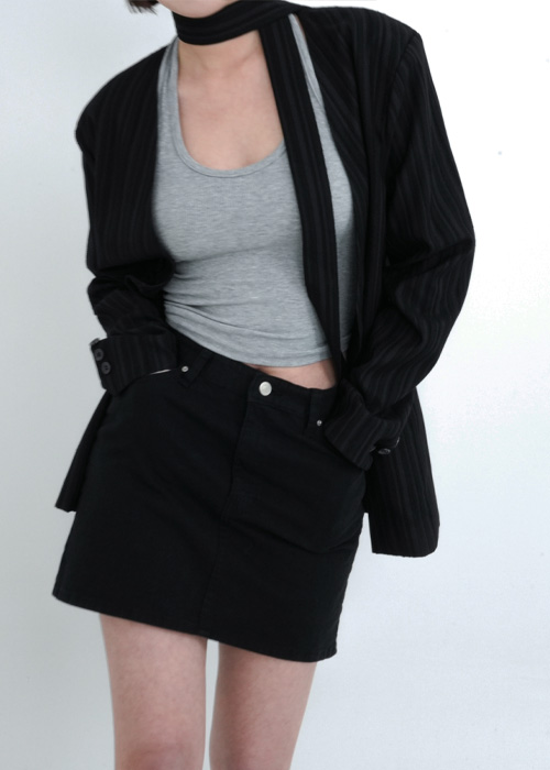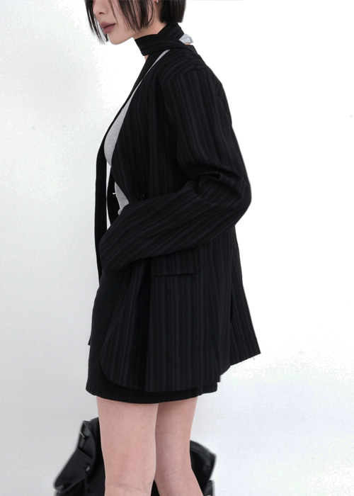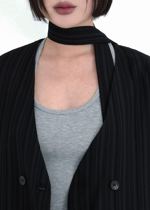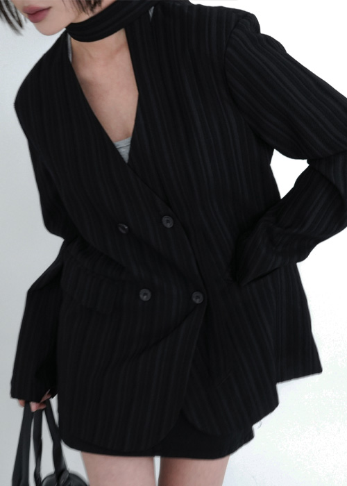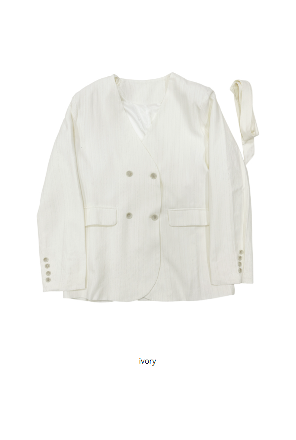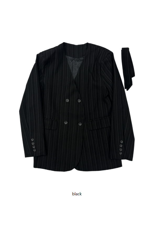 (set)タイ付きノーカラーダブルジャケット
