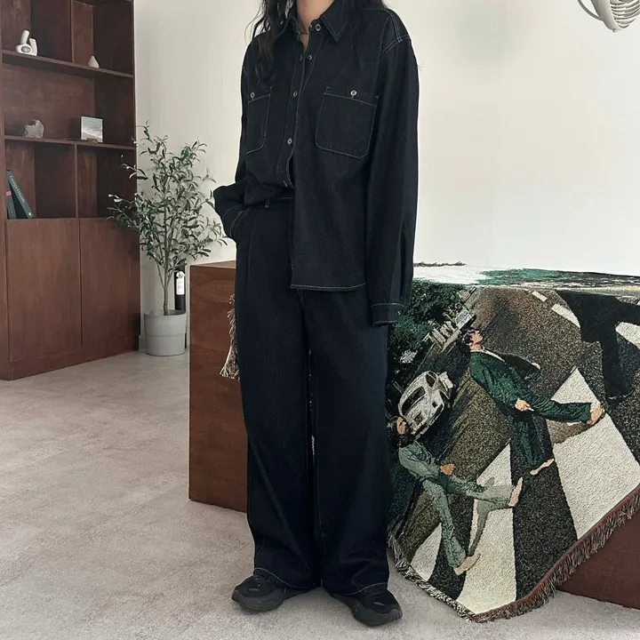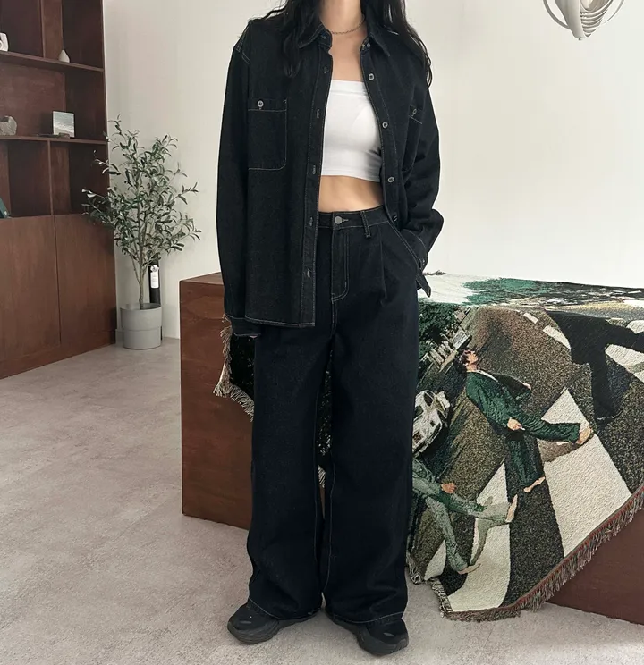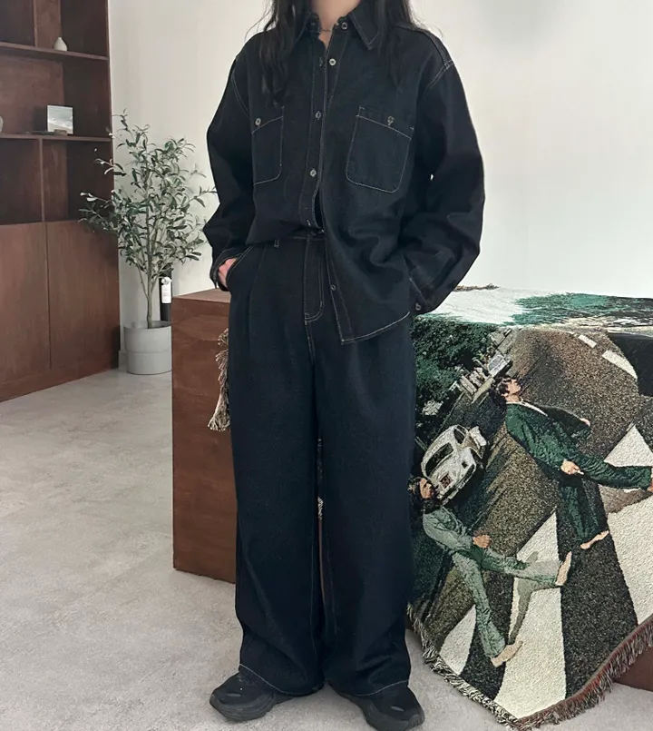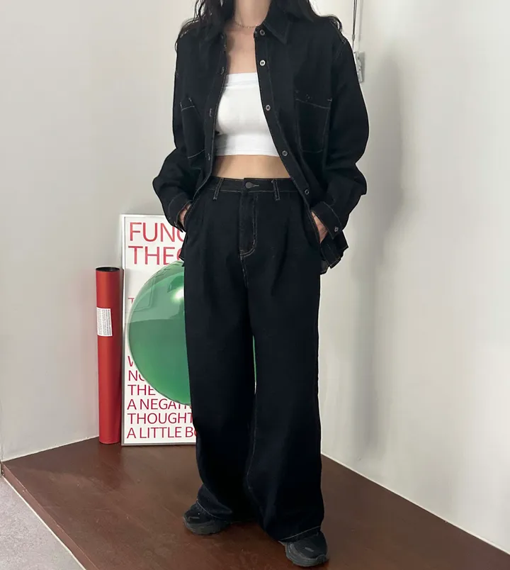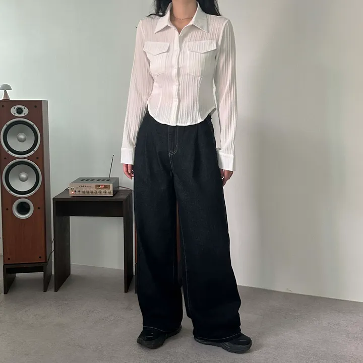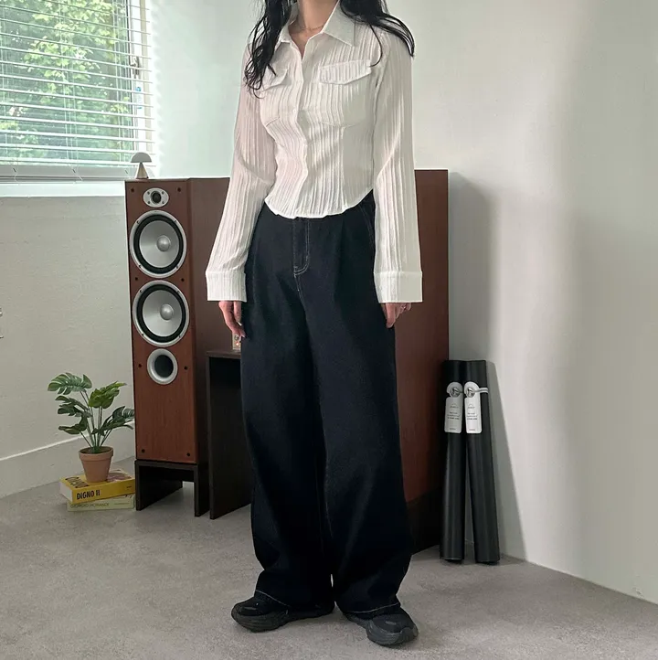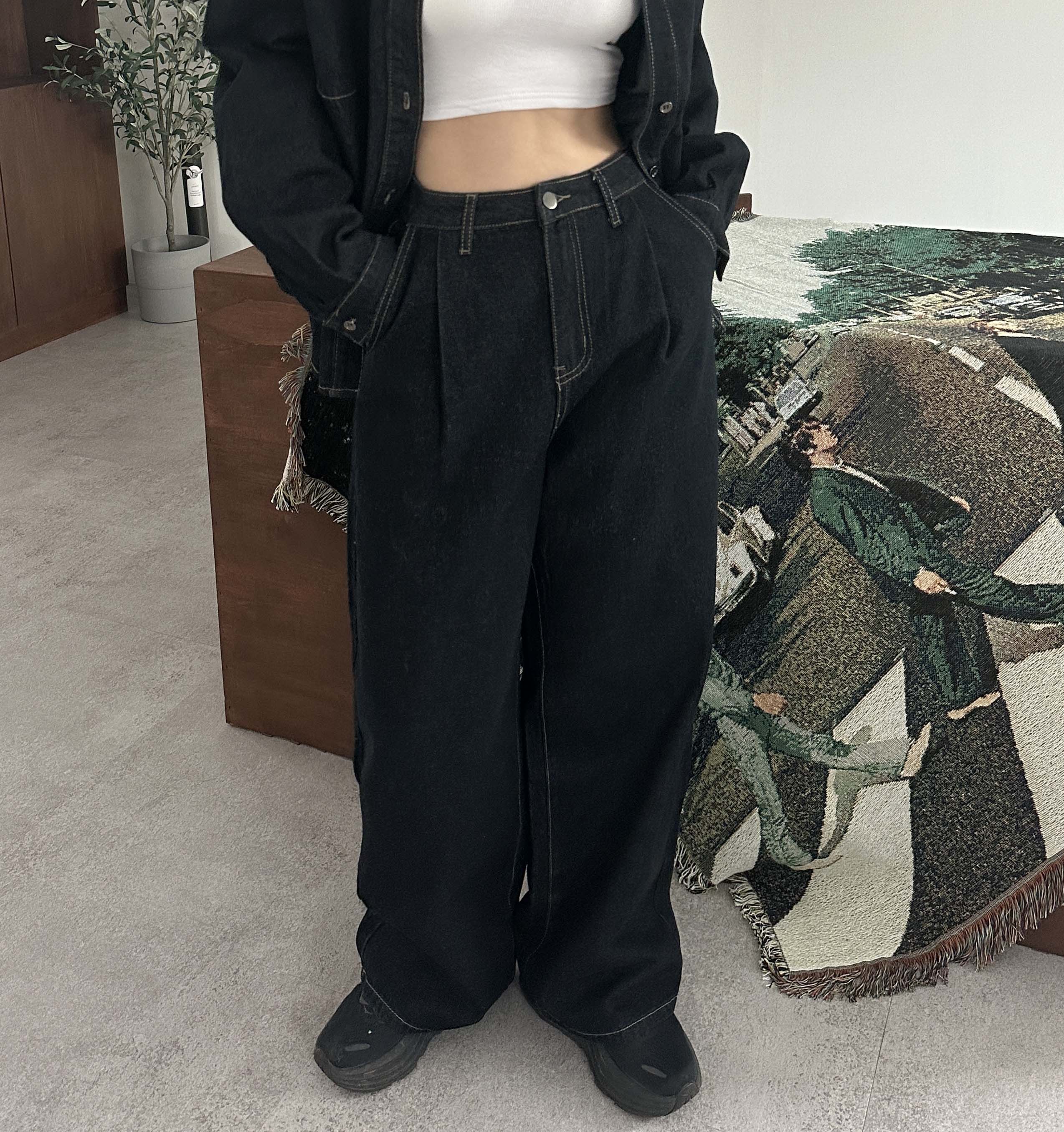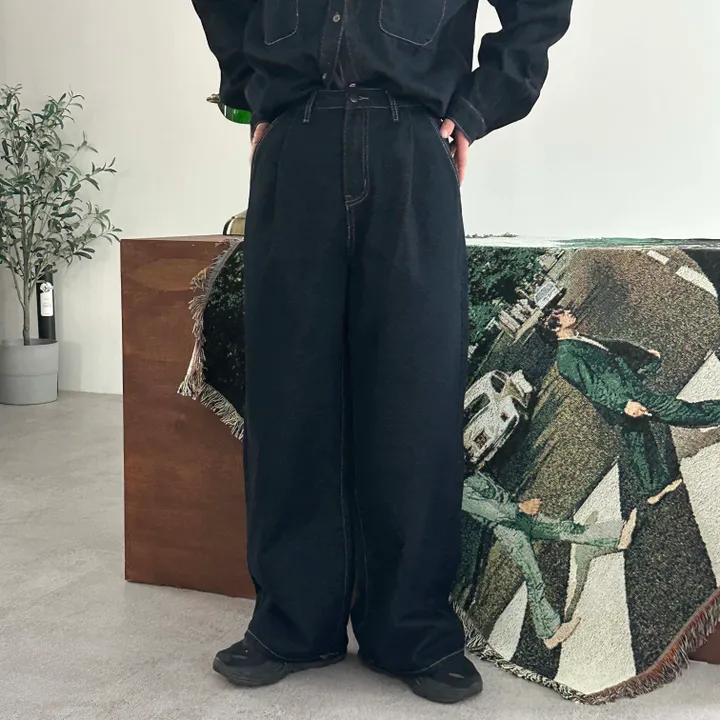 ローデニムタック入りワイドロングデニムパンツ(1color)