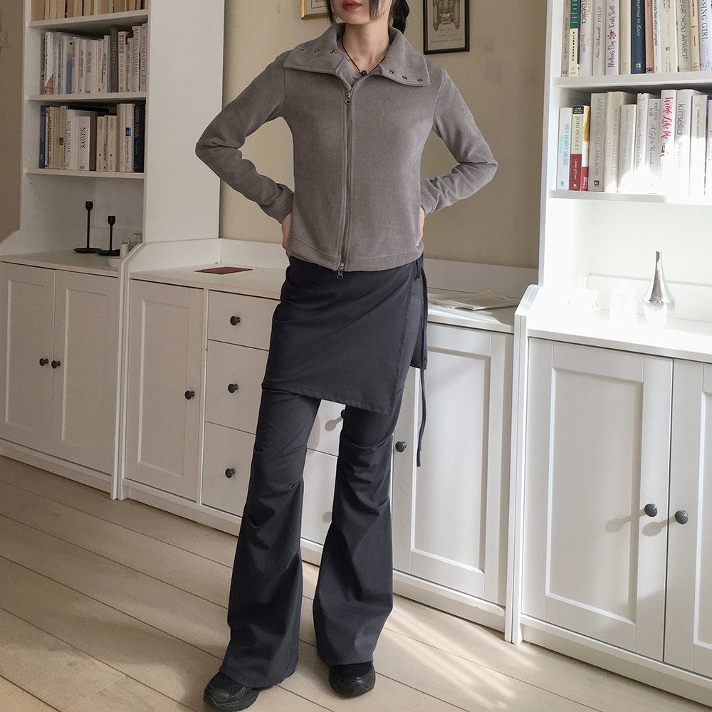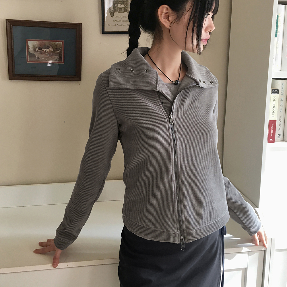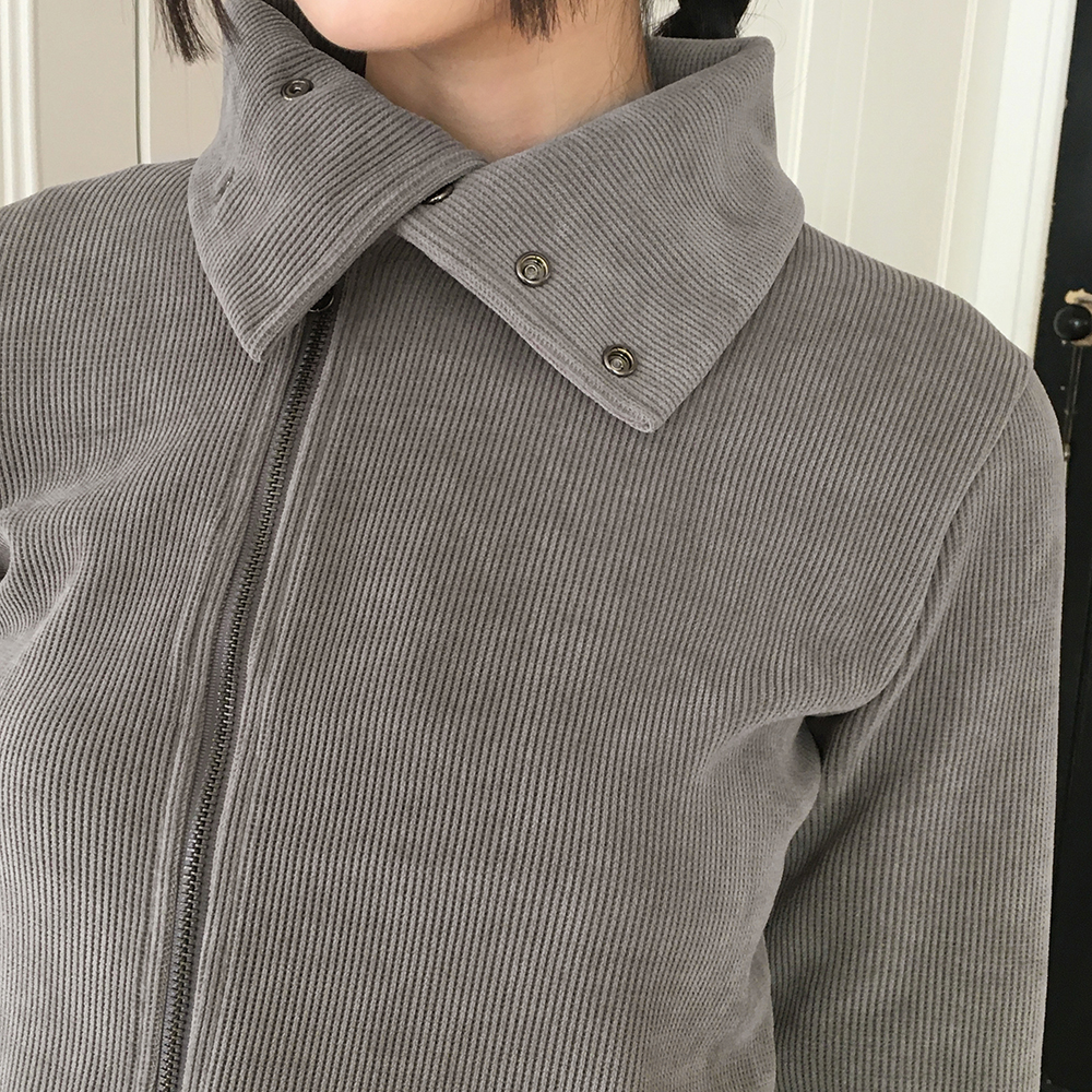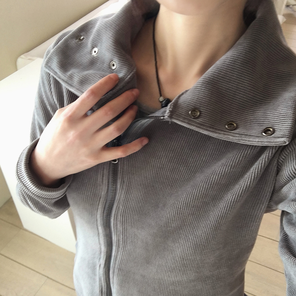 ボタンハイネック2WAYリブサイド長袖ジップアップ