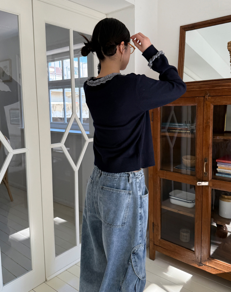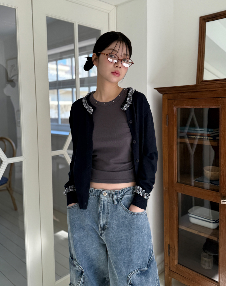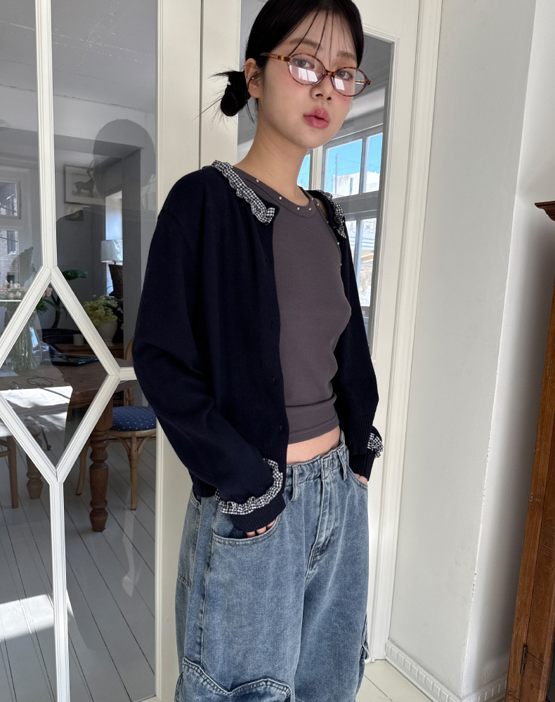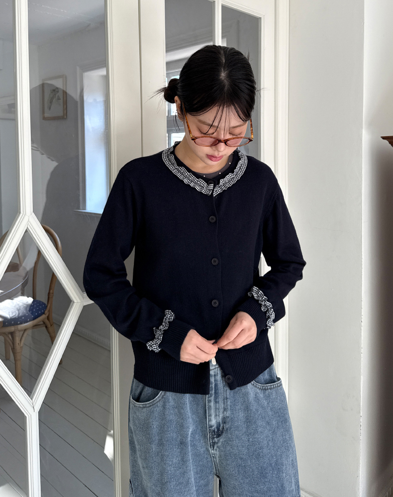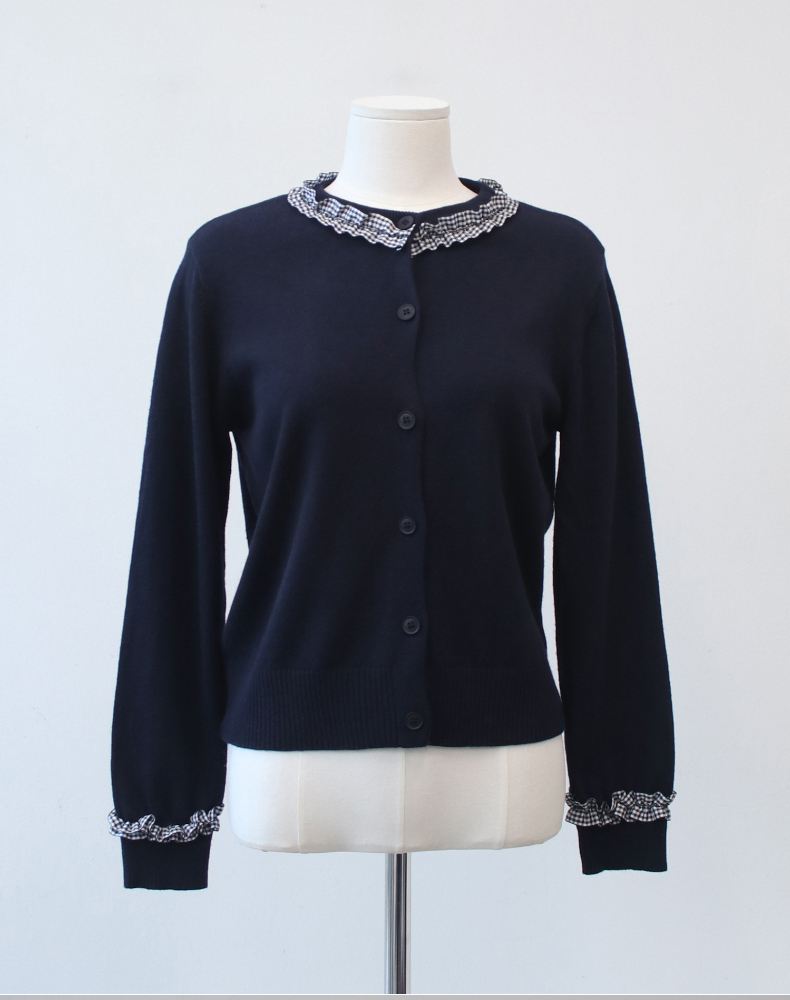 frill check cardigan