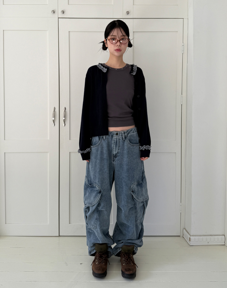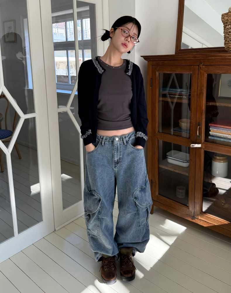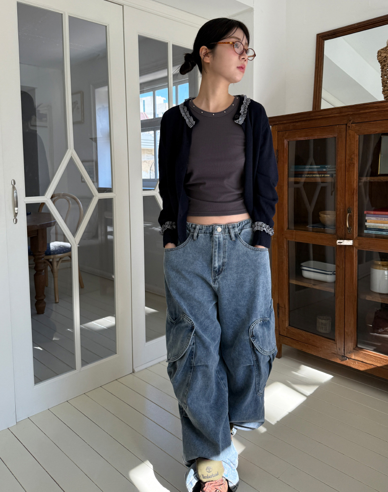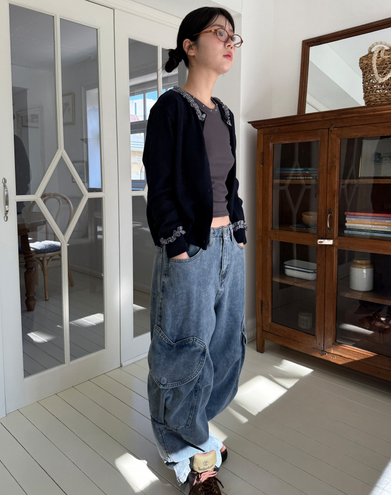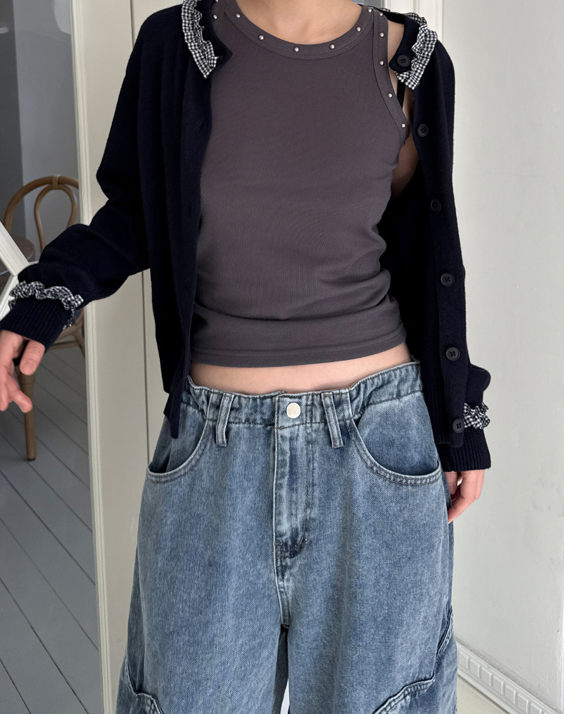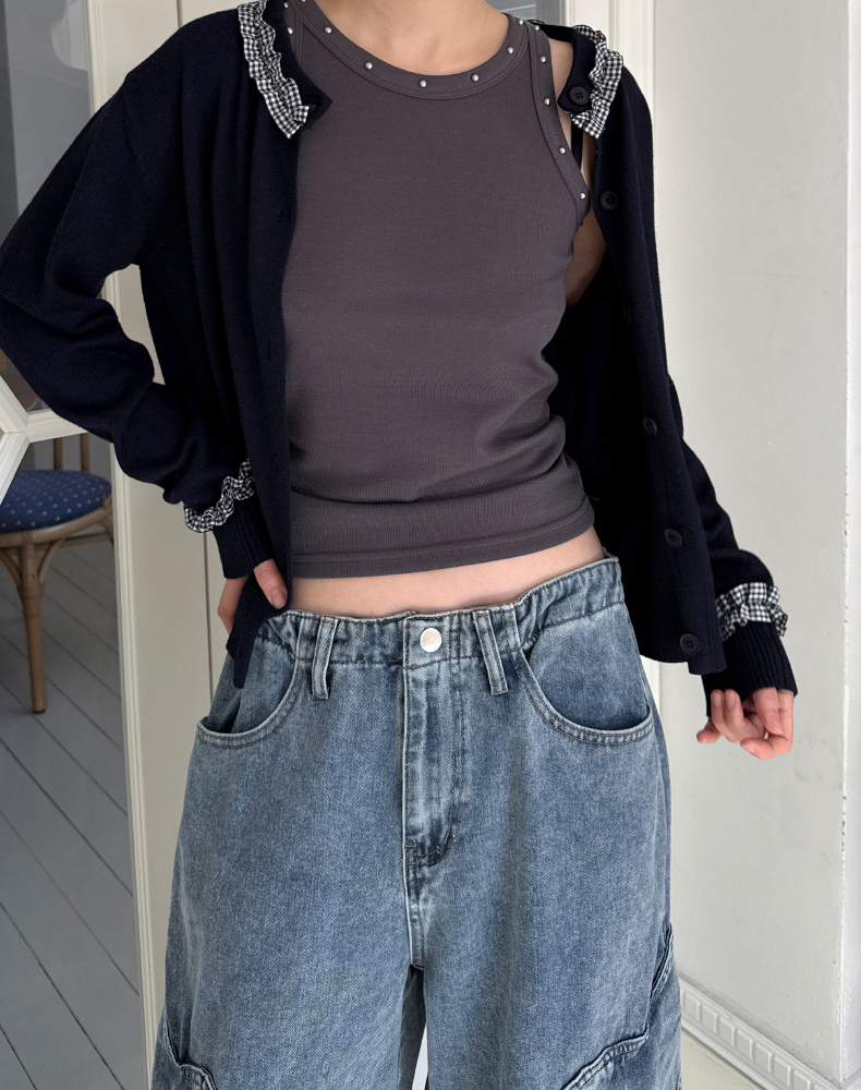frill check cardigan