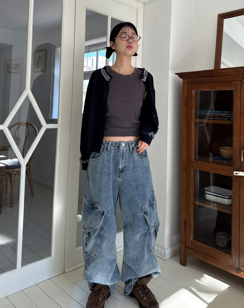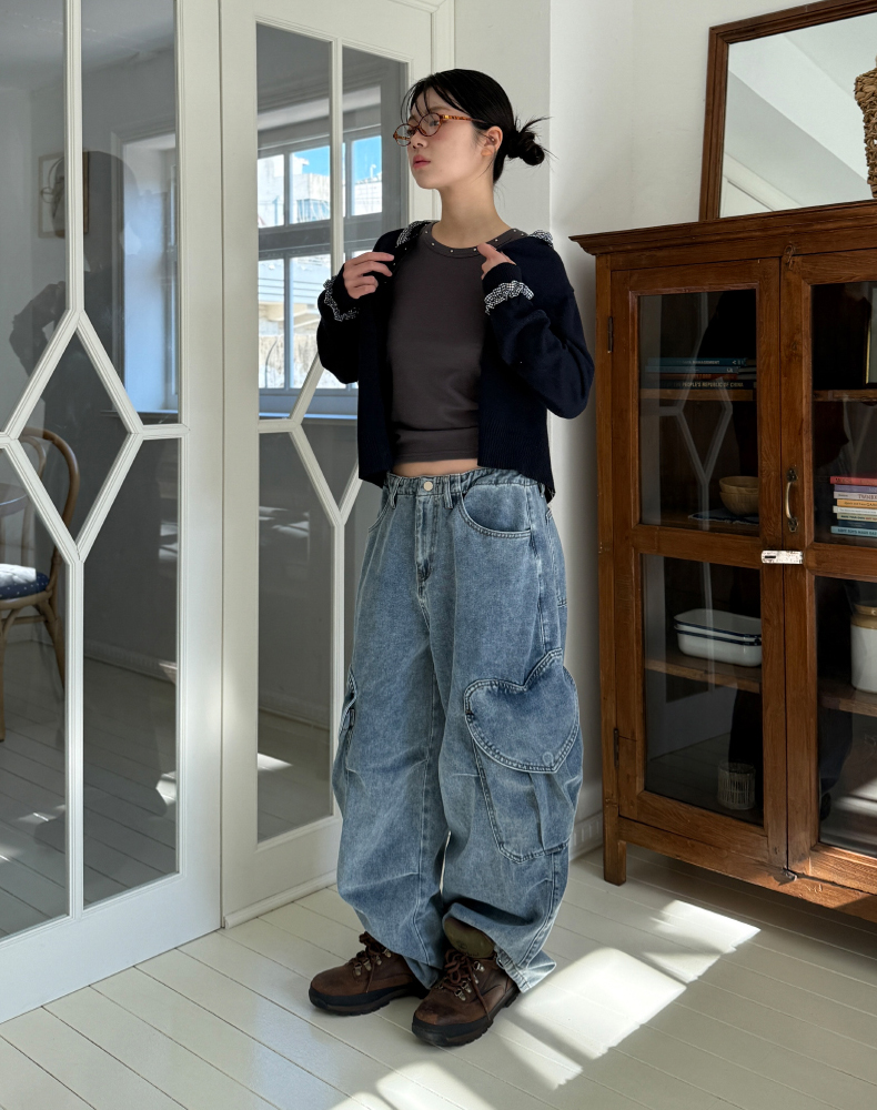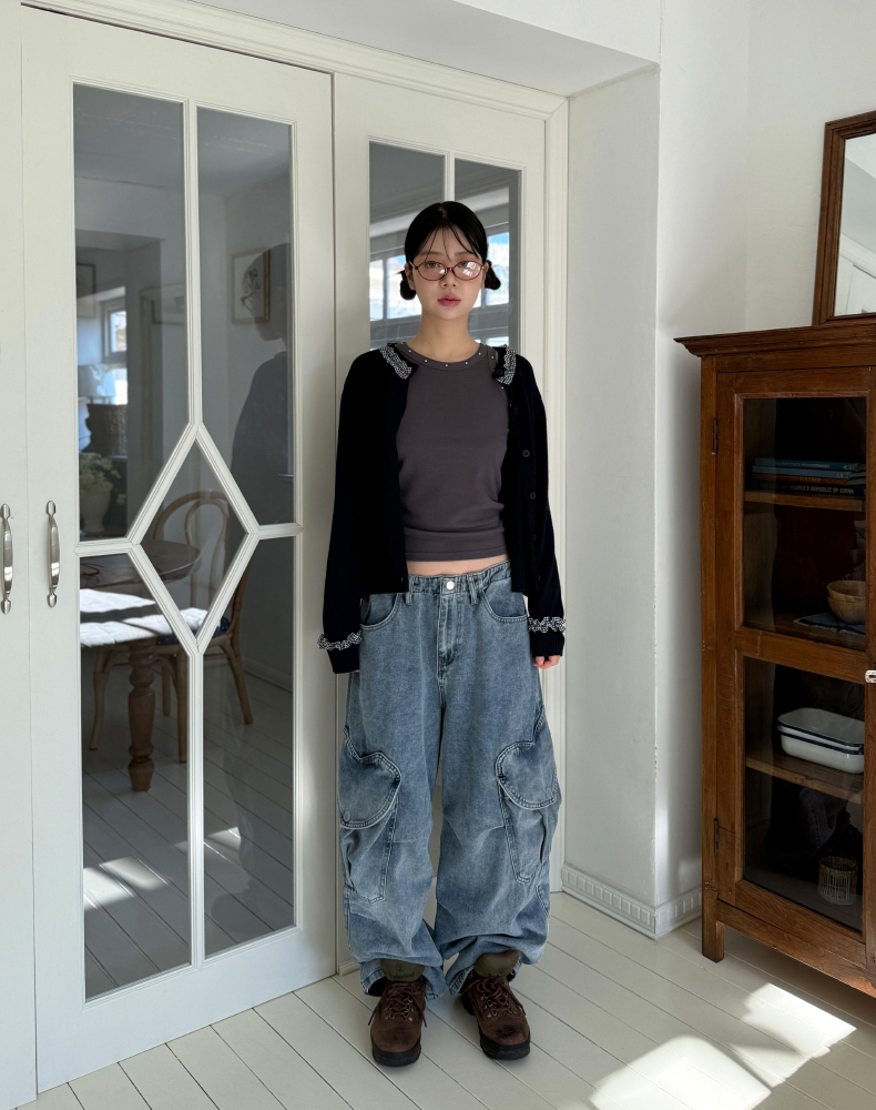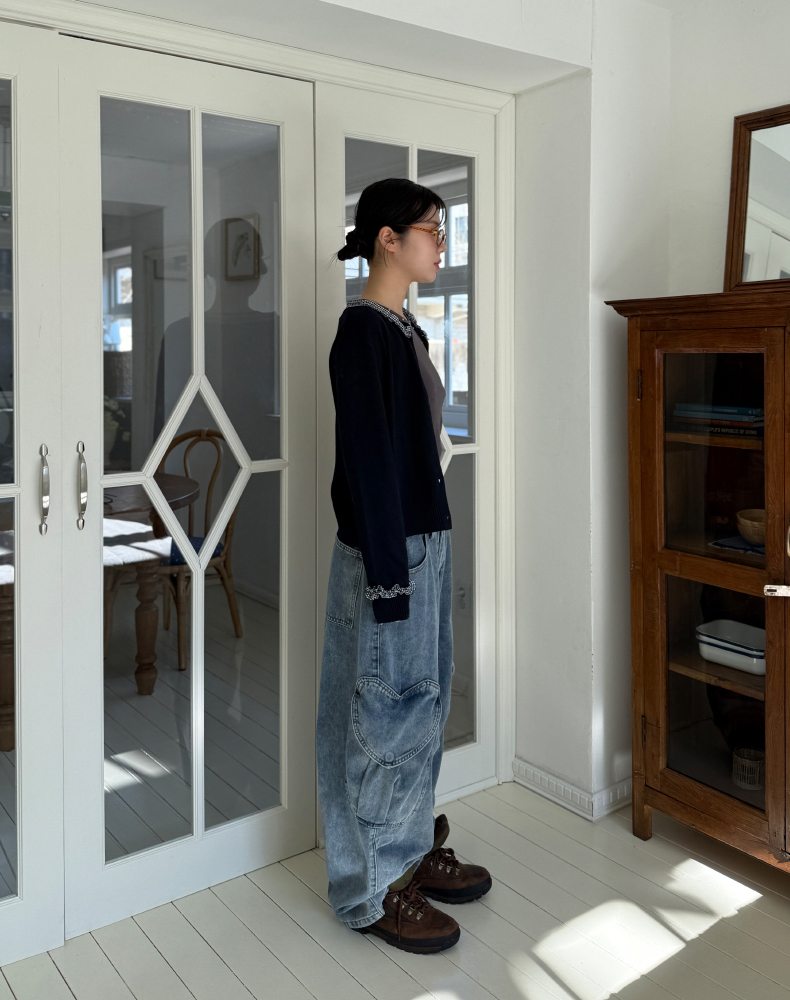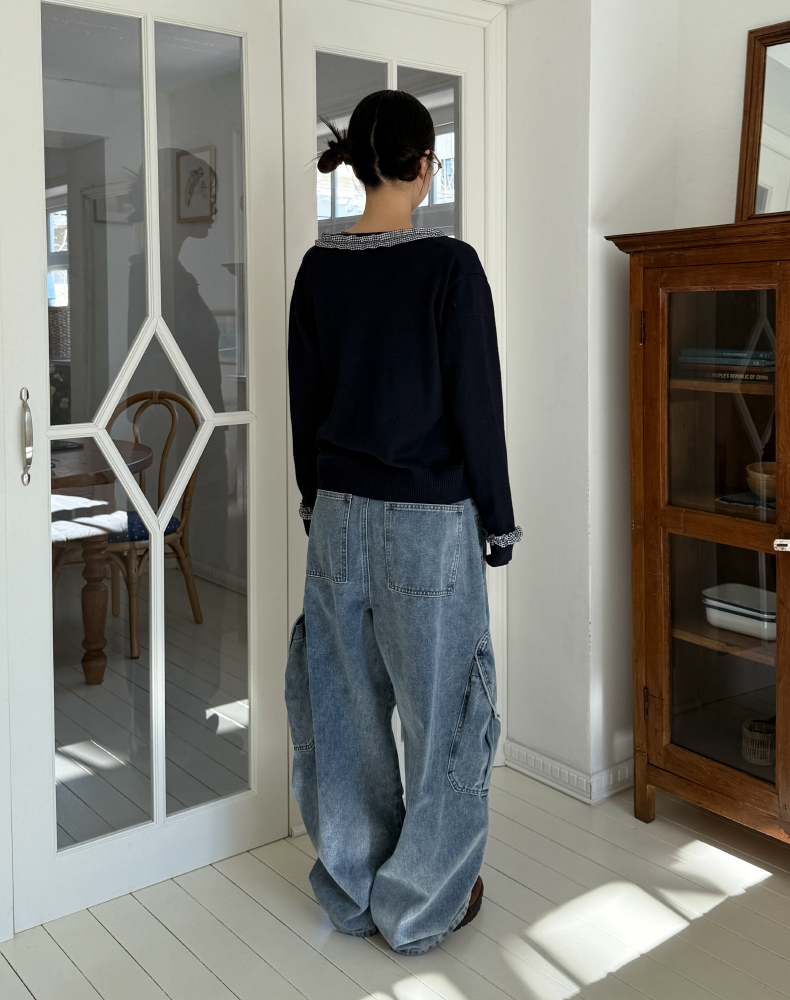 frill check cardigan