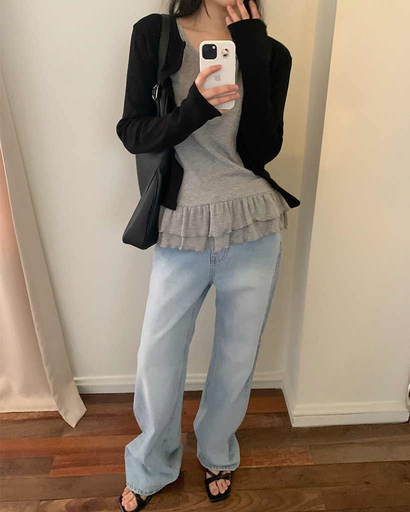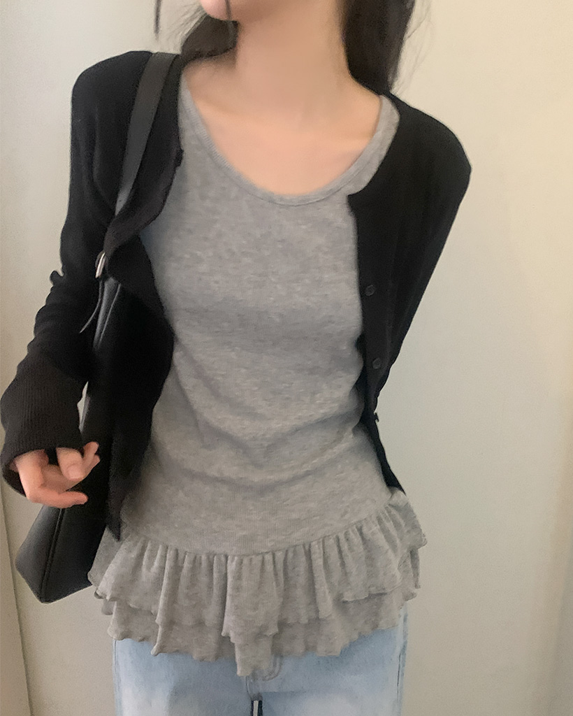 (3color) リブシャーリングフリルレイヤードノースリーブ
