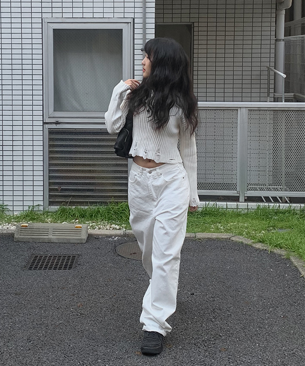 ホワイトコットンワイドロングパンツ
