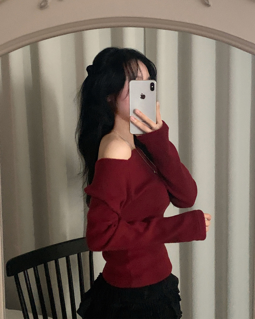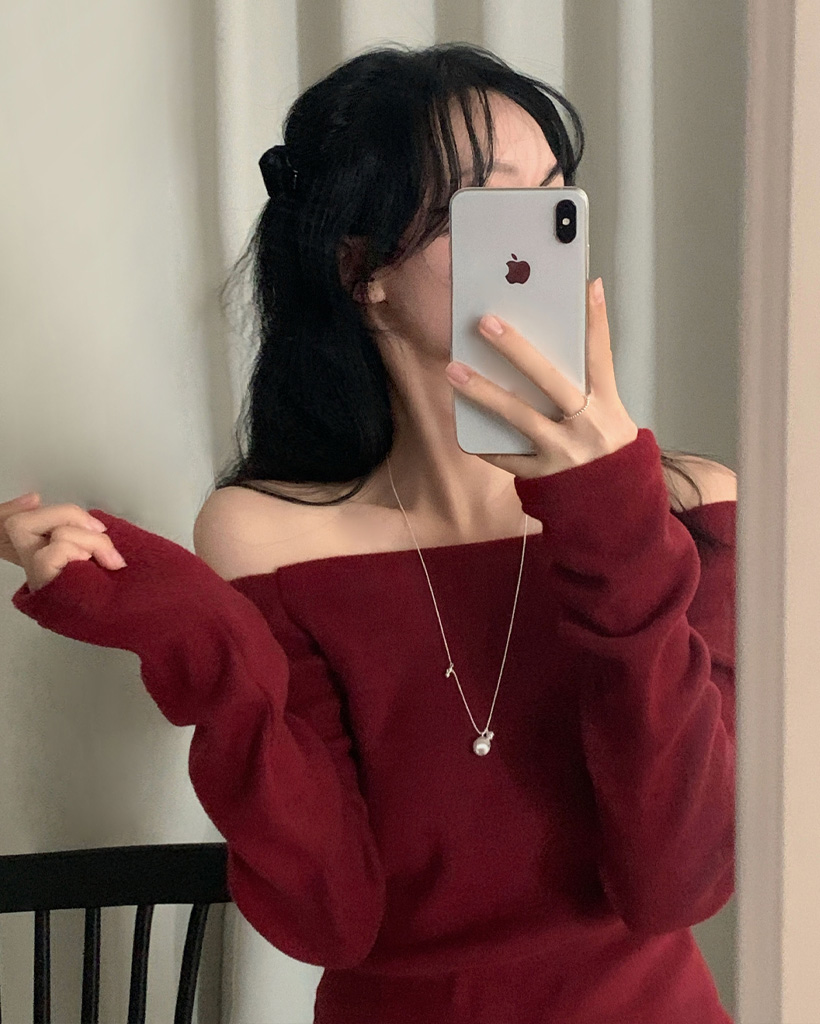 여리여리한 실루엣을 담은 오프숄더 긴팔니트 소개드려요 :)