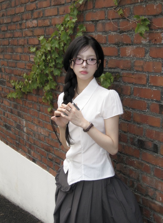 アシンメトリーカラーシャーリングブラウス