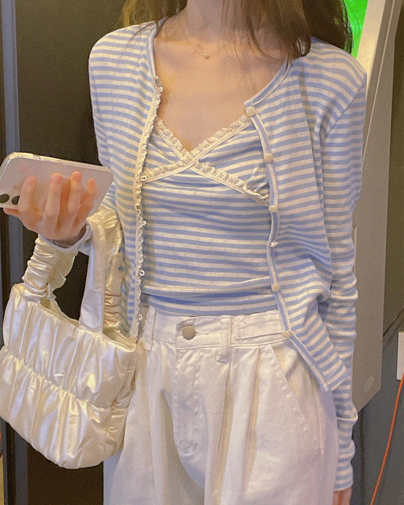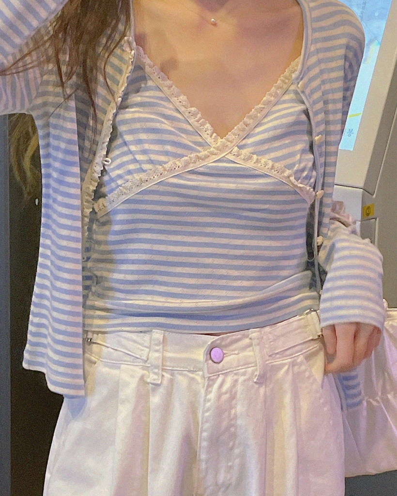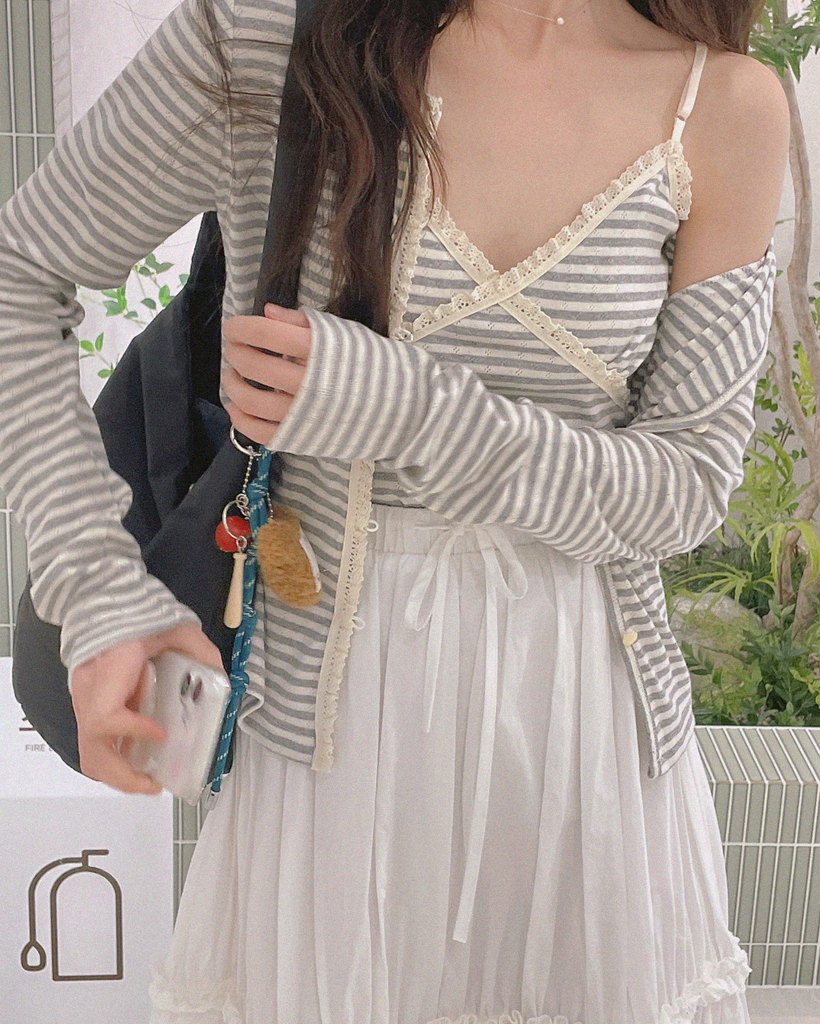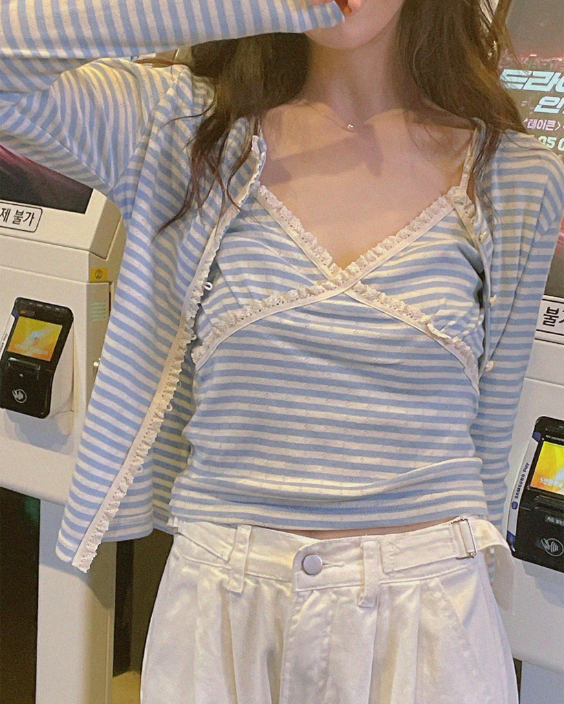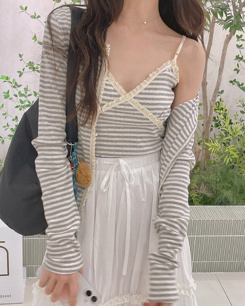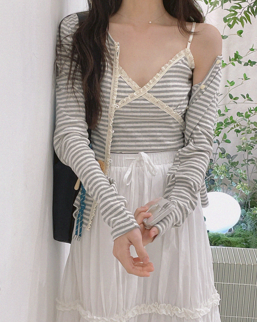 レースストライプカーディガンノースリーブSET