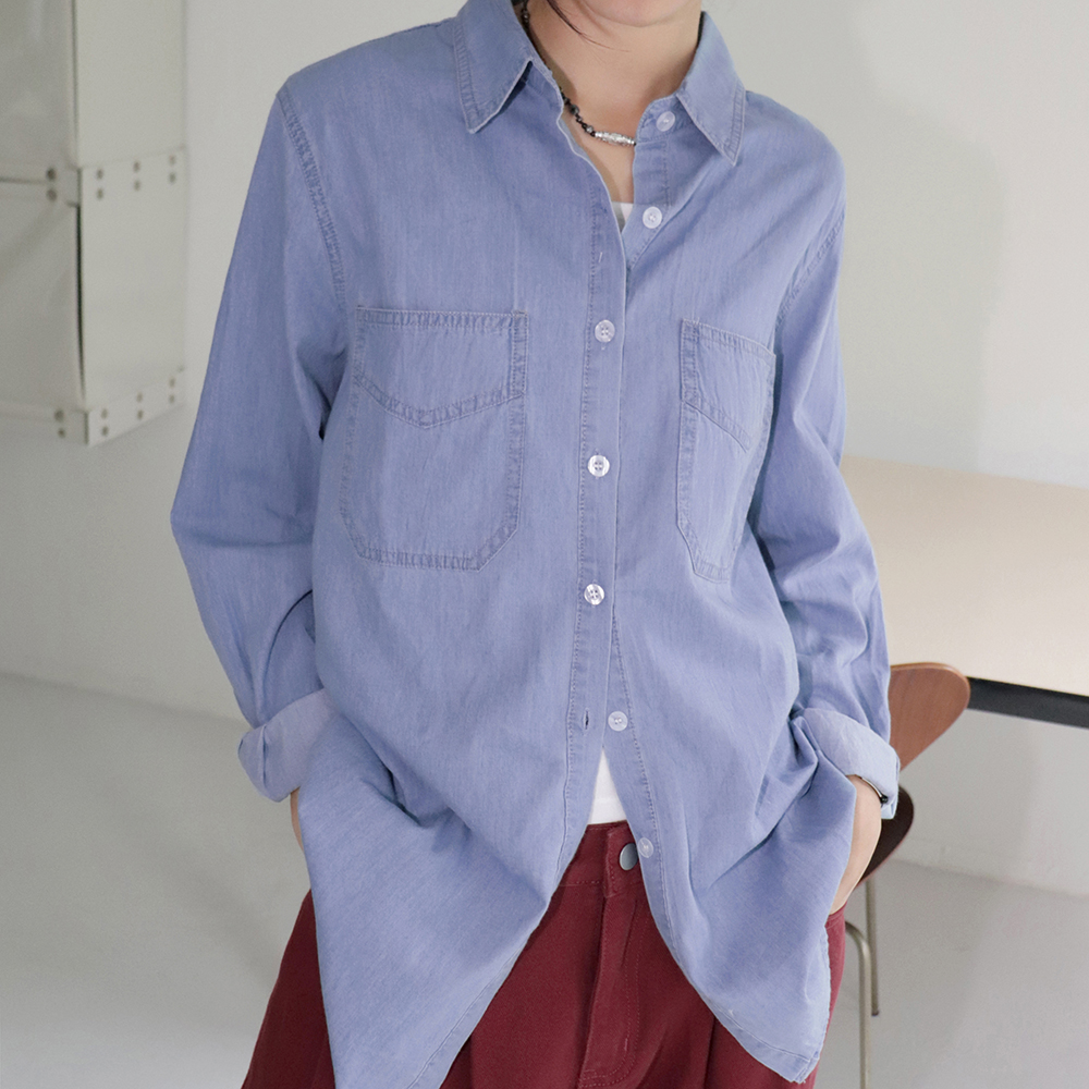 ポケットオーバーサイズ長袖デニムシャツ