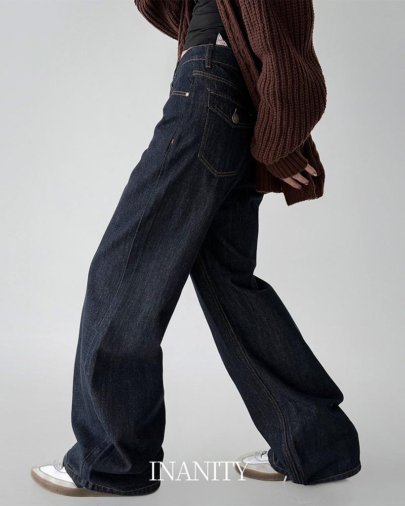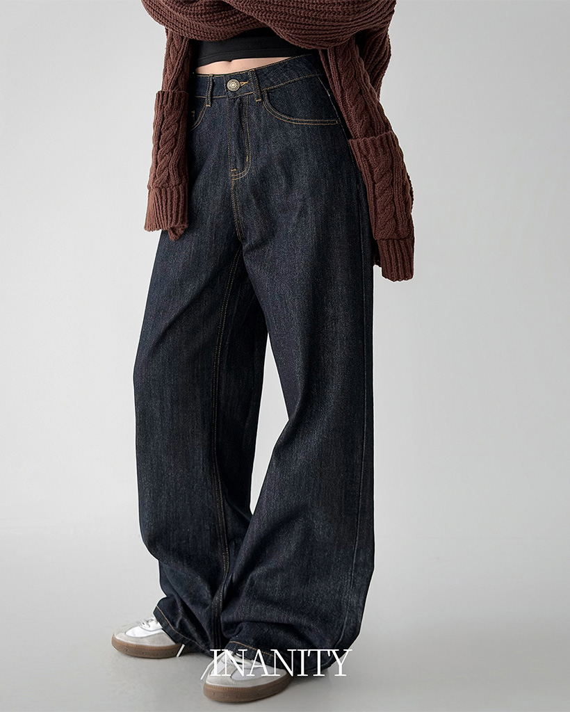 ハイウエストステッチワイドリジッドデニムパンツ