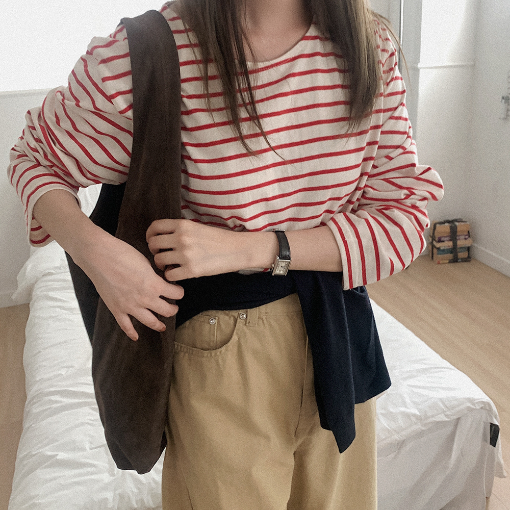 コットンボーダー長袖Tシャツ