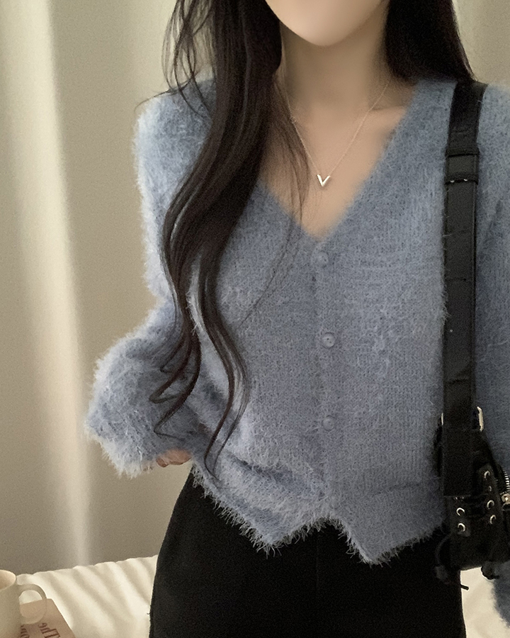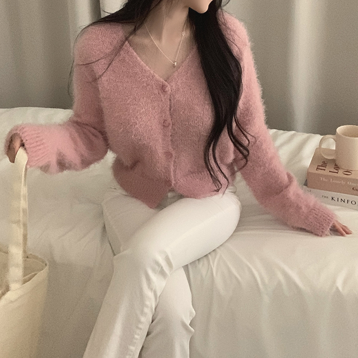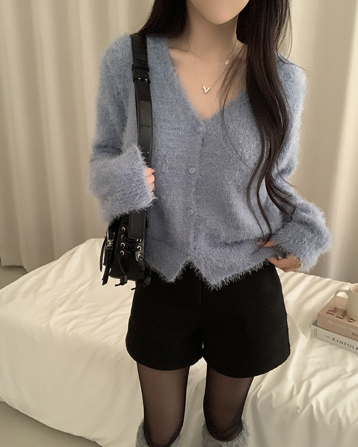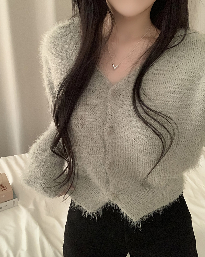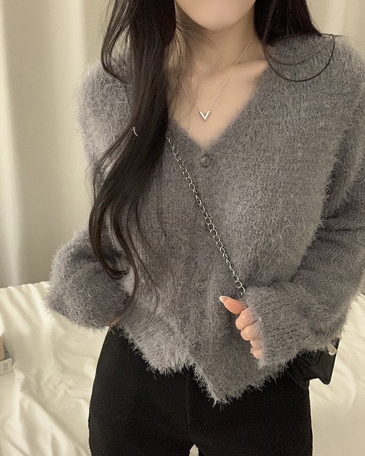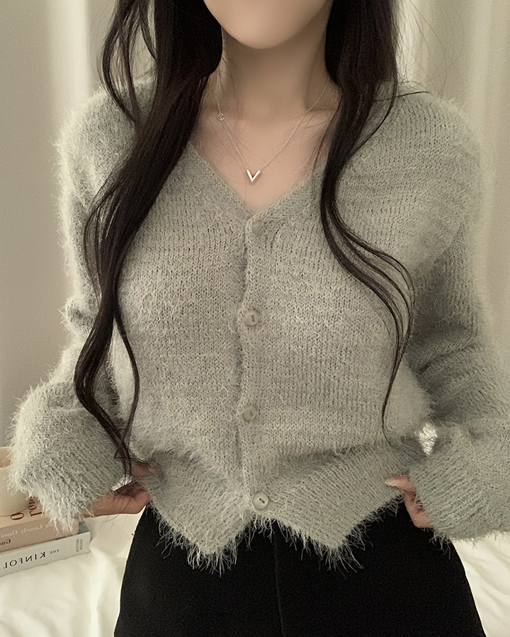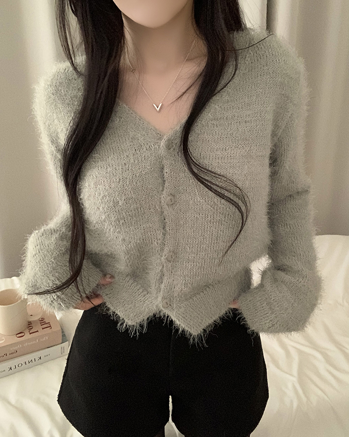 (7color)ヘアリVネックニットカーディガン