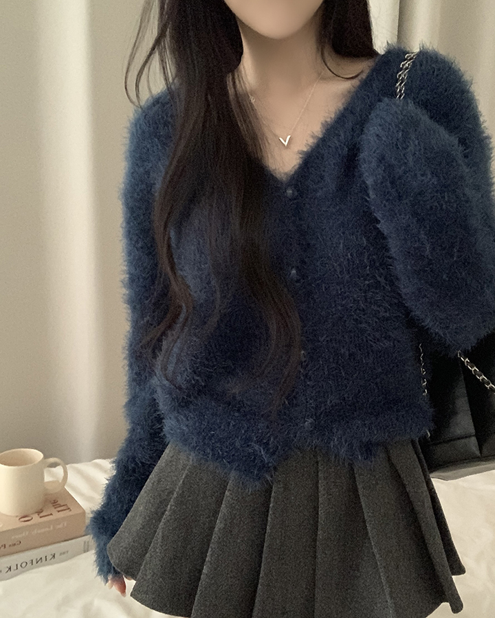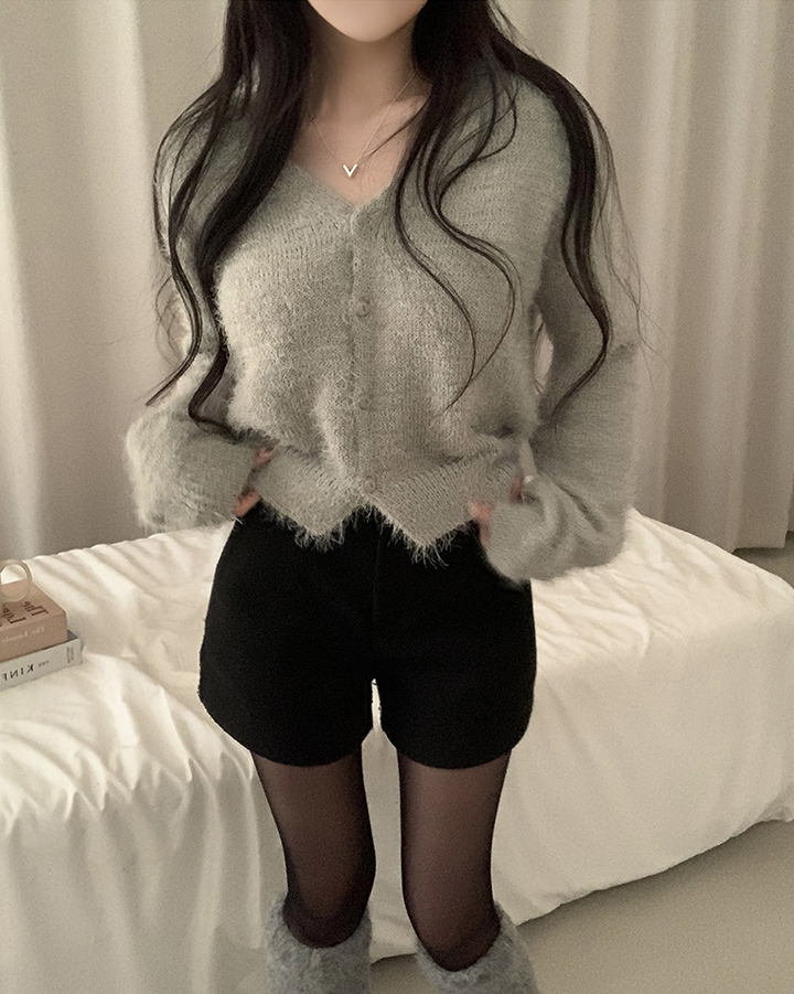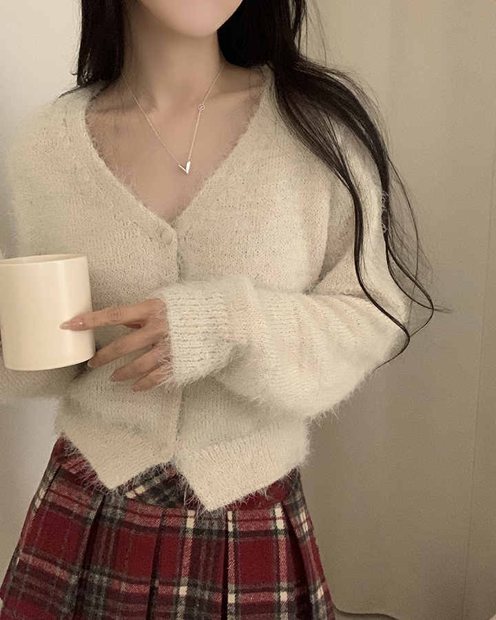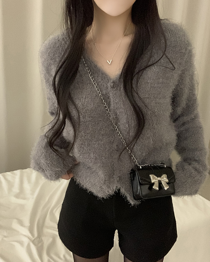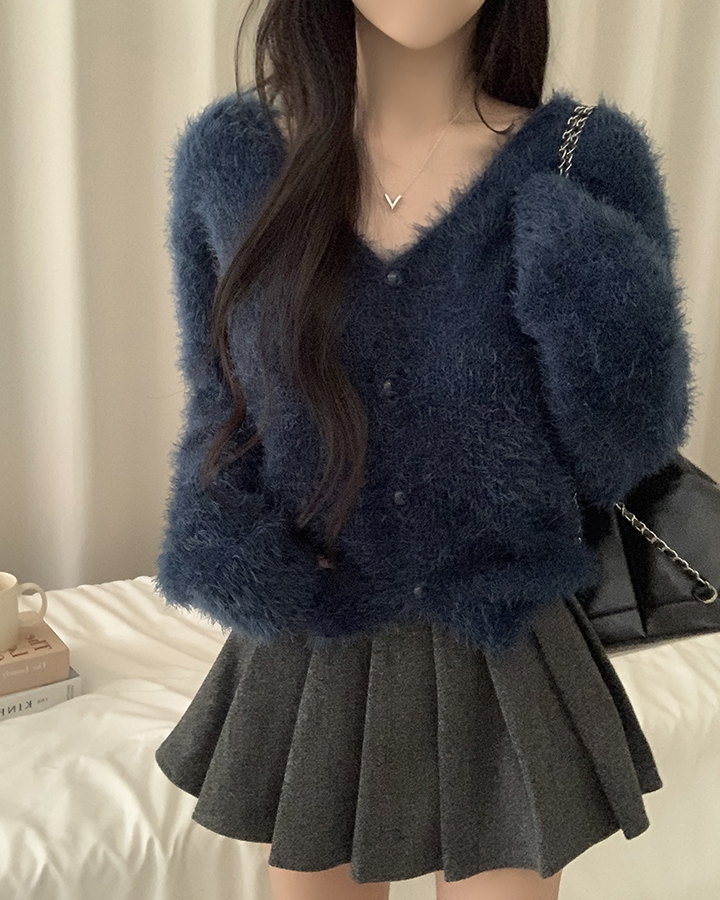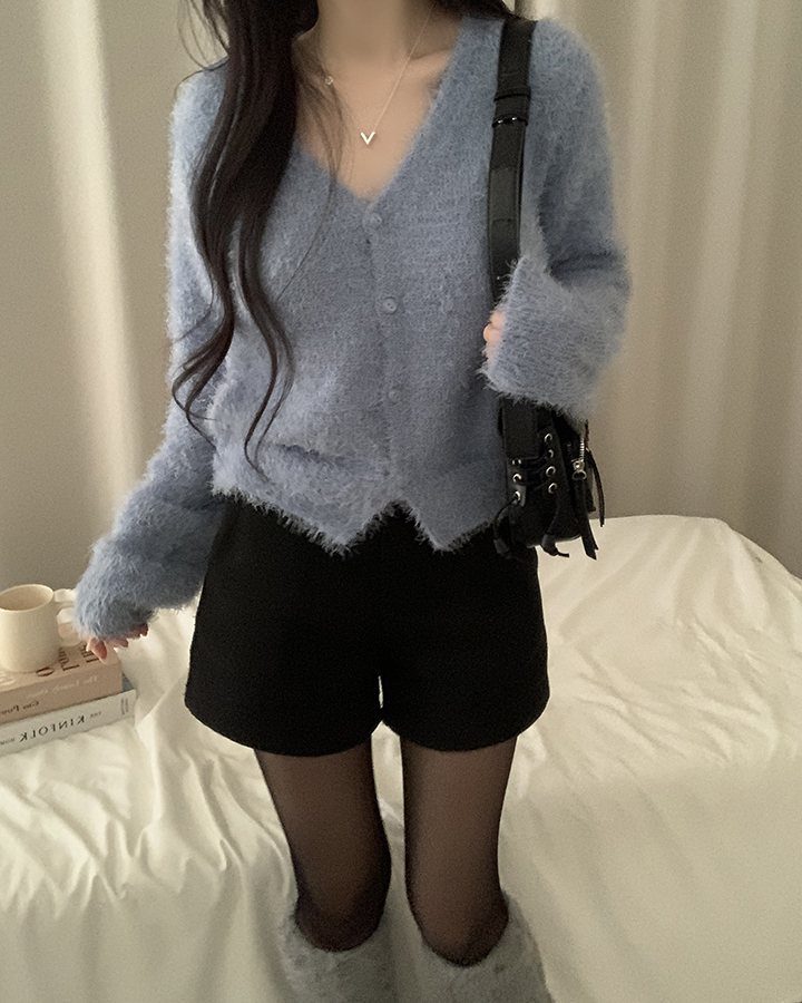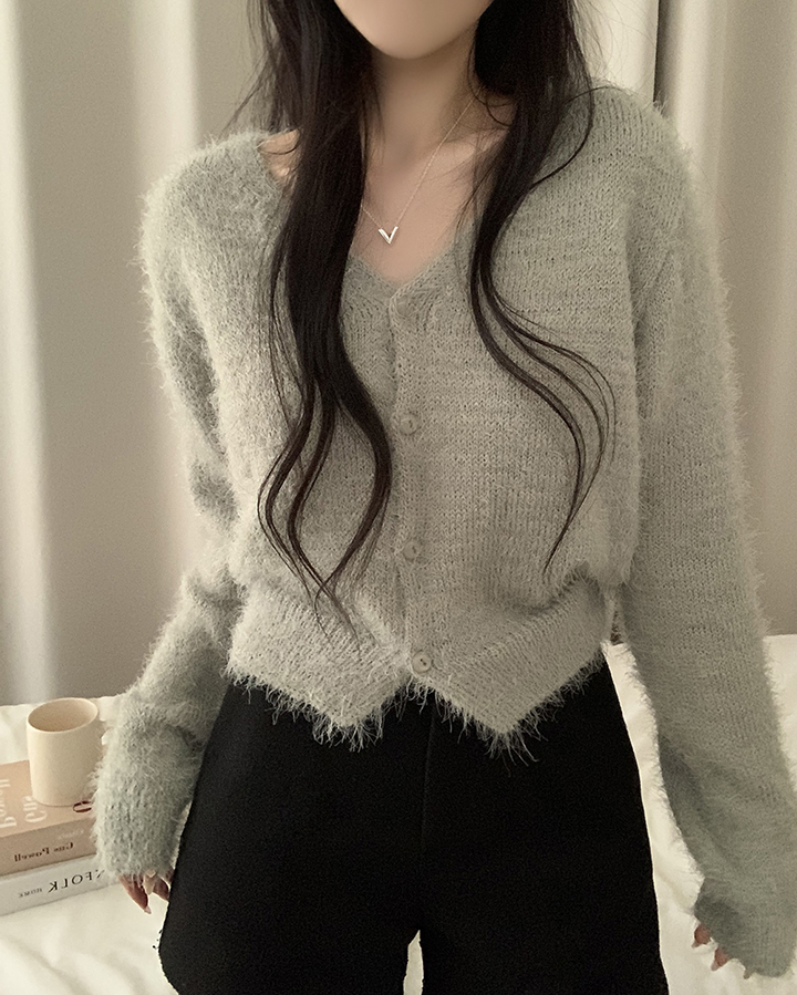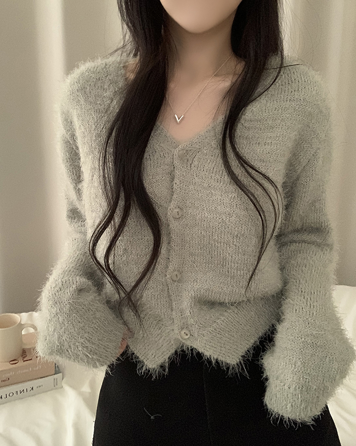 (7color)ヘアリVネックニットカーディガン