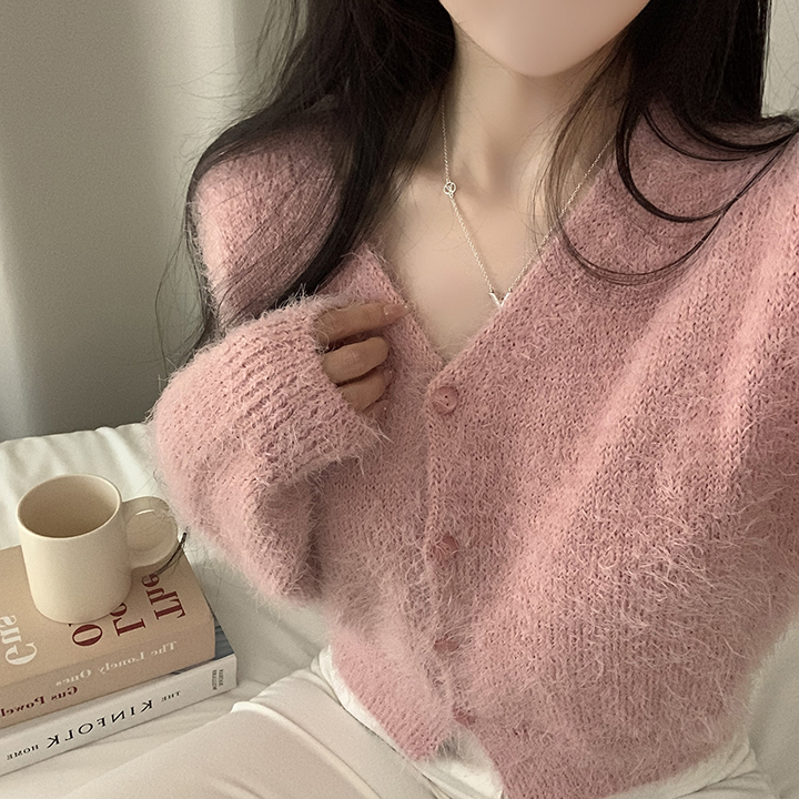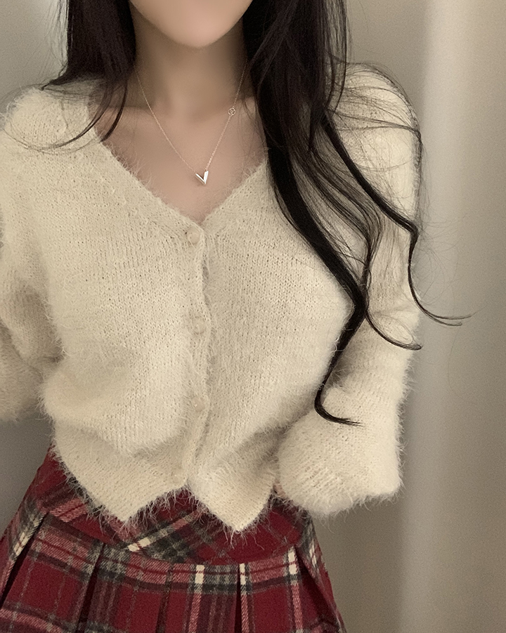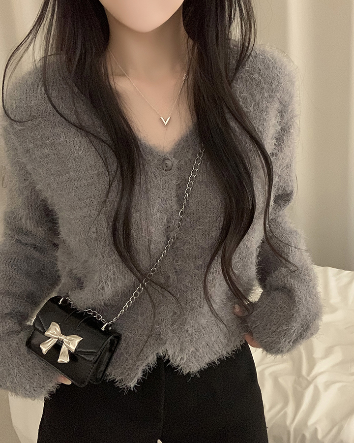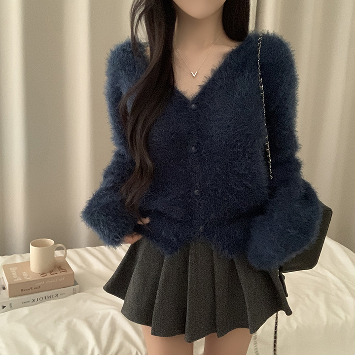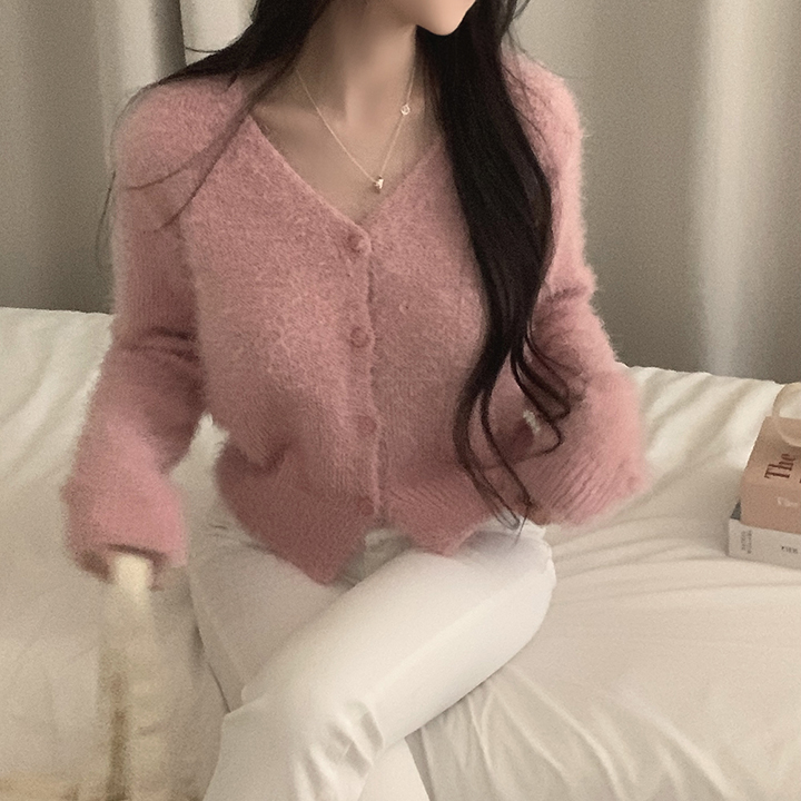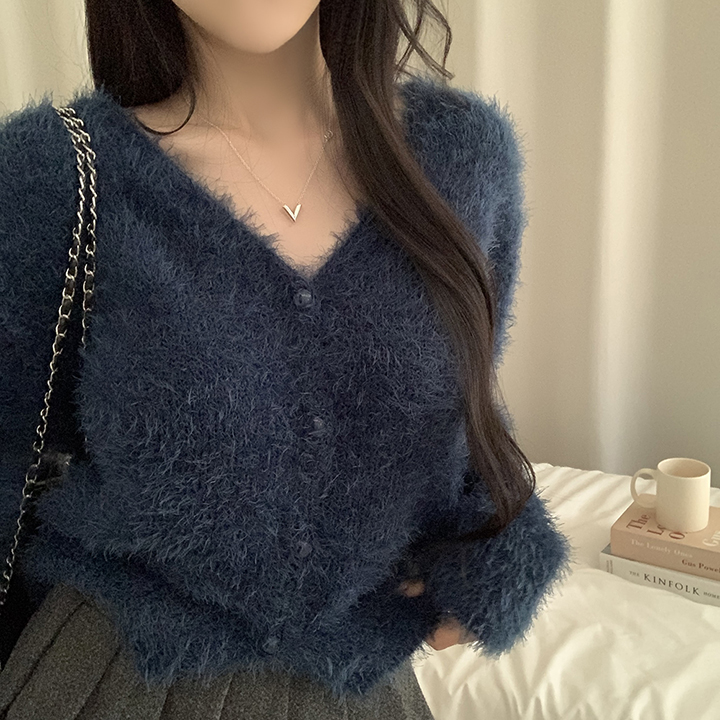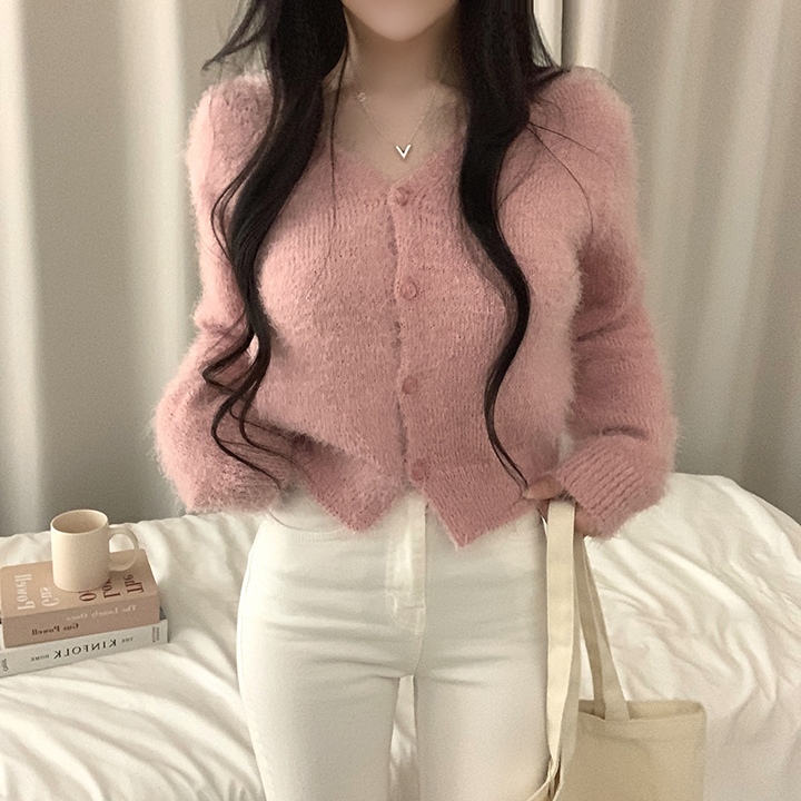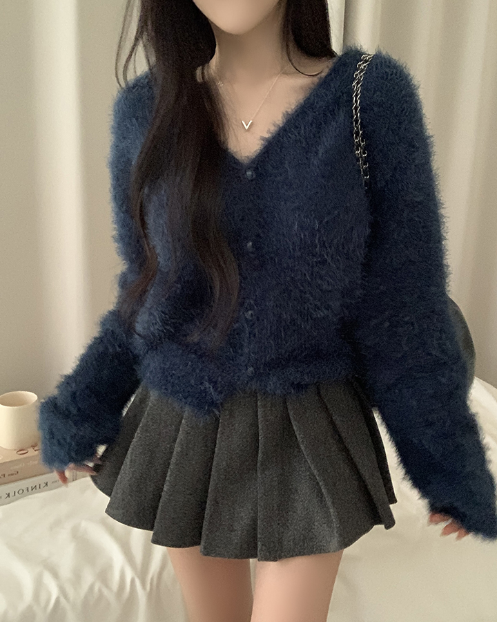 (7color)ヘアリVネックニットカーディガン