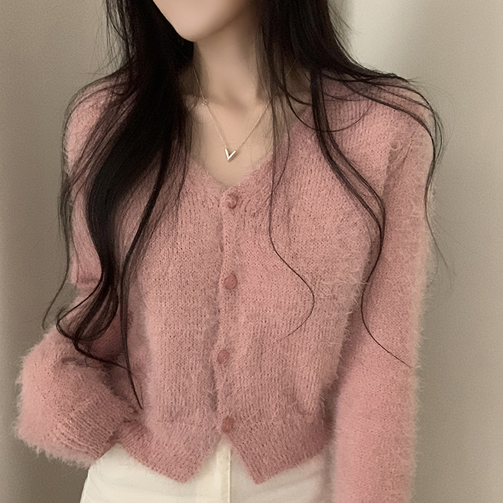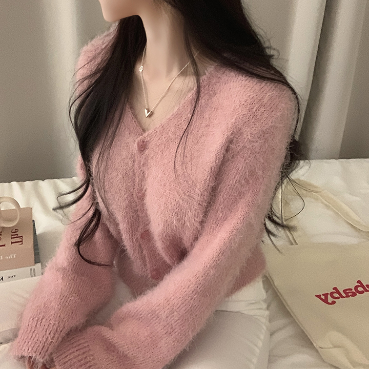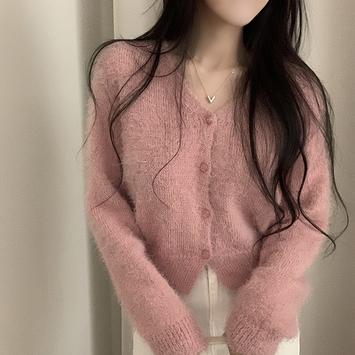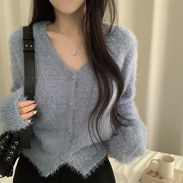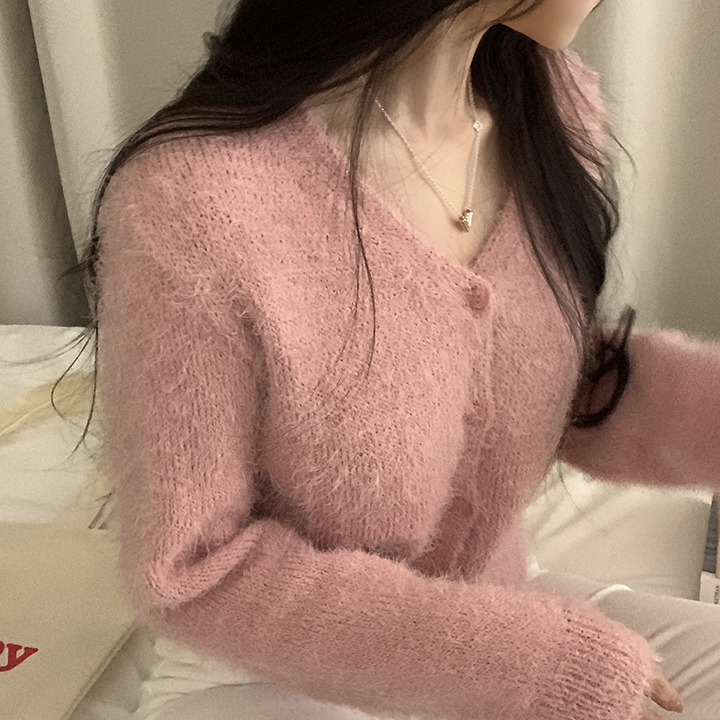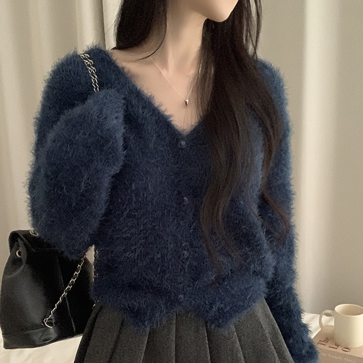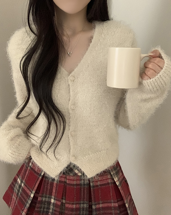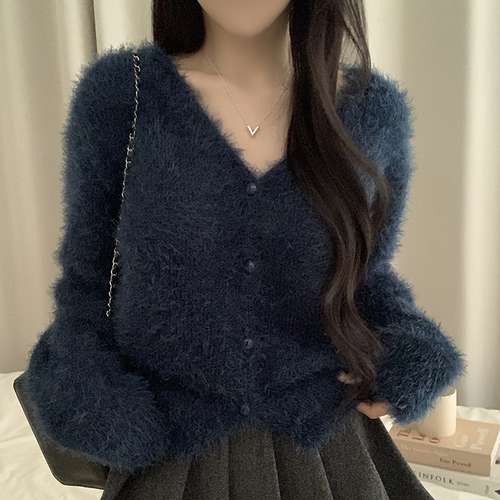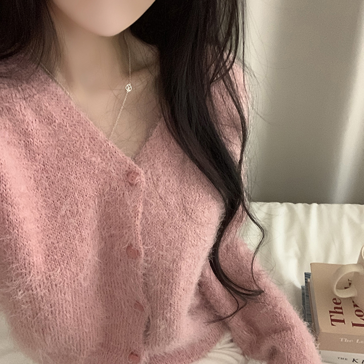 (7color)ヘアリVネックニットカーディガン