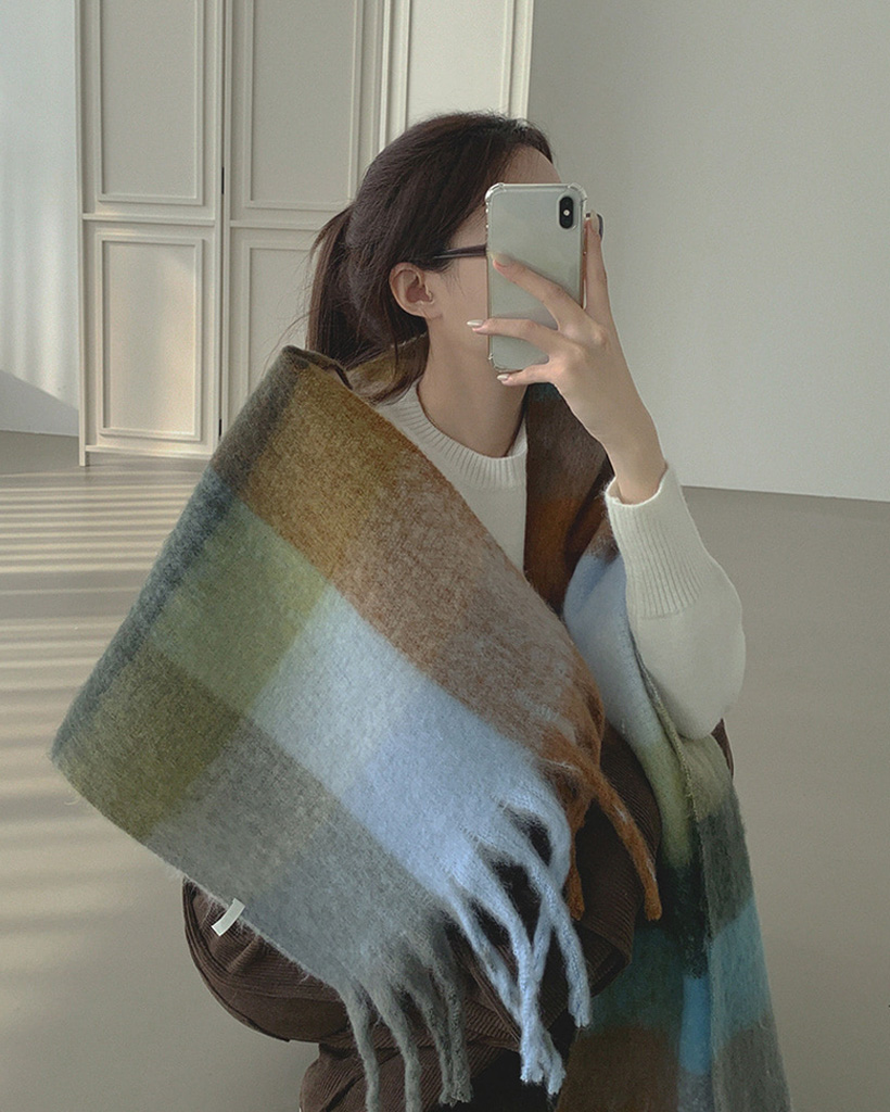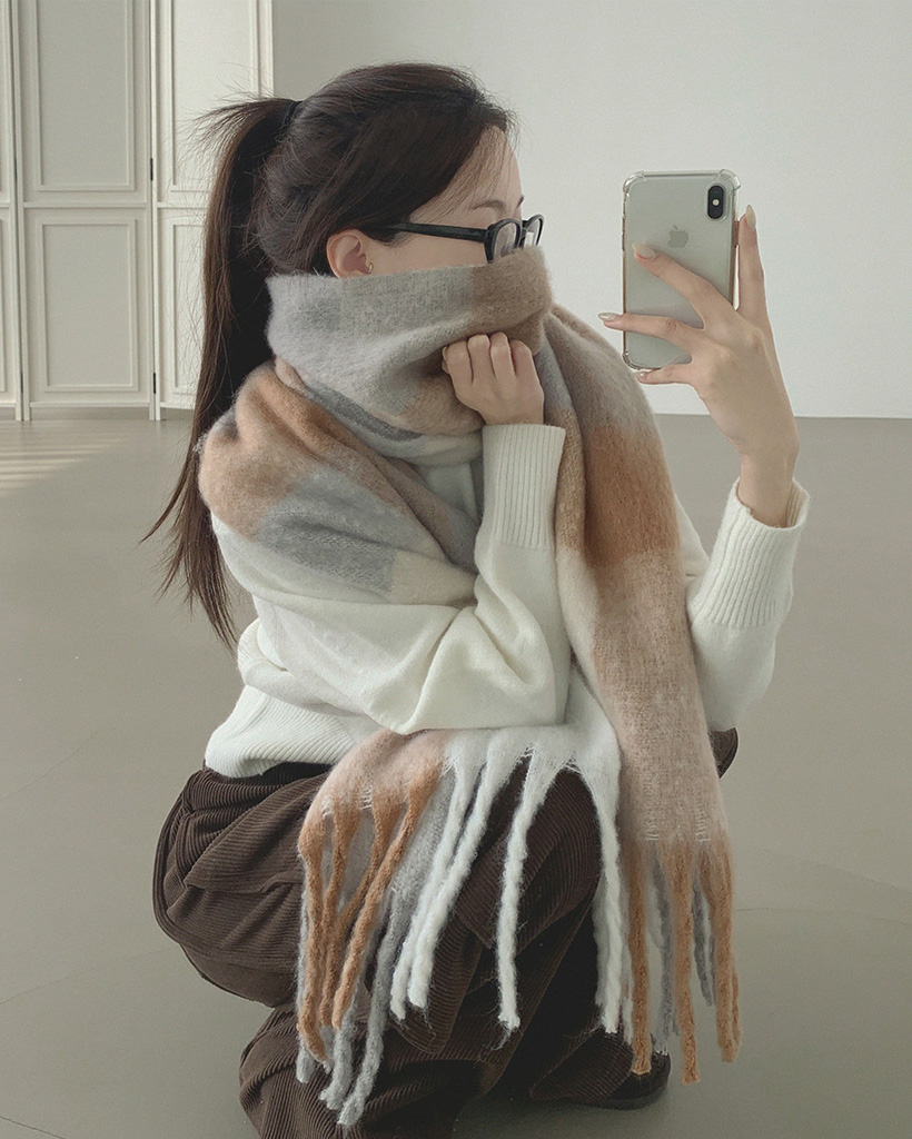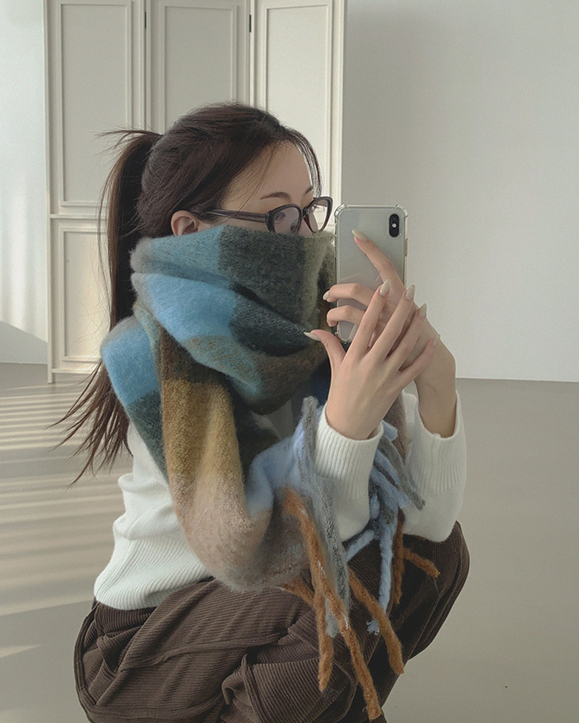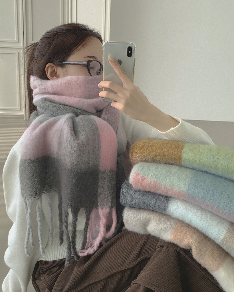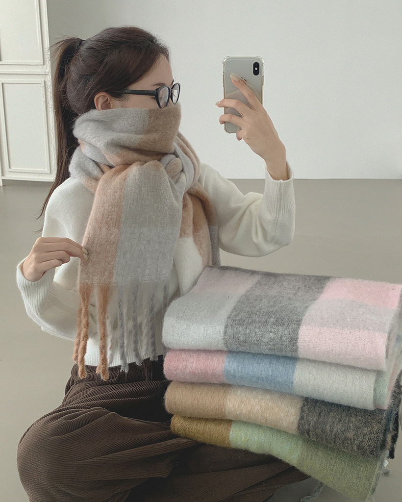[12月限定SALE](5color)チェック柄 ロングマフラー