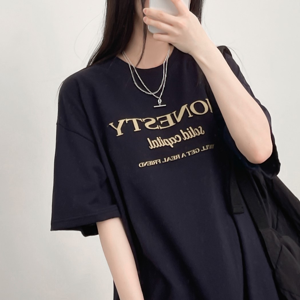 カジュアル英語プリントオーバーサイズ半袖Tシャツ