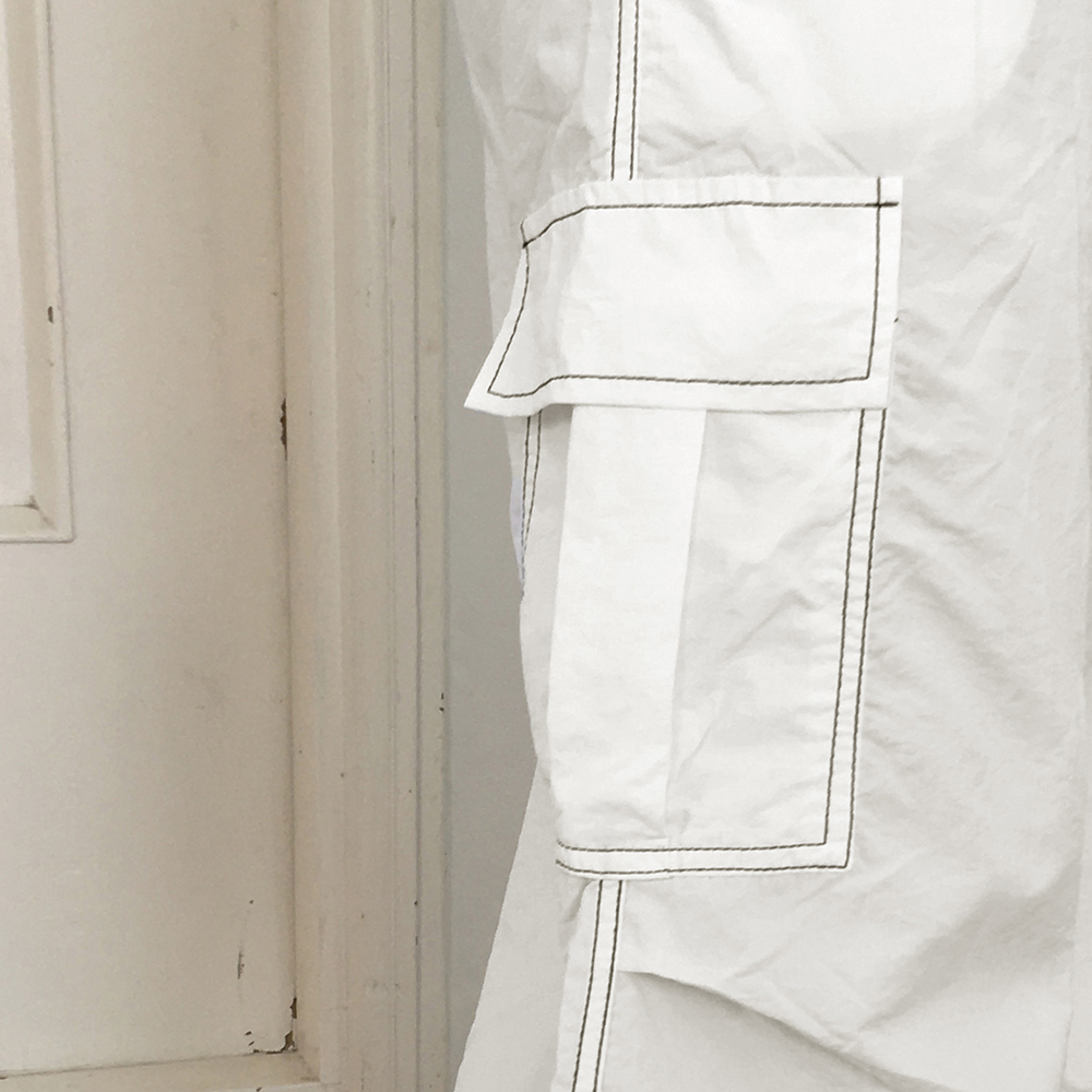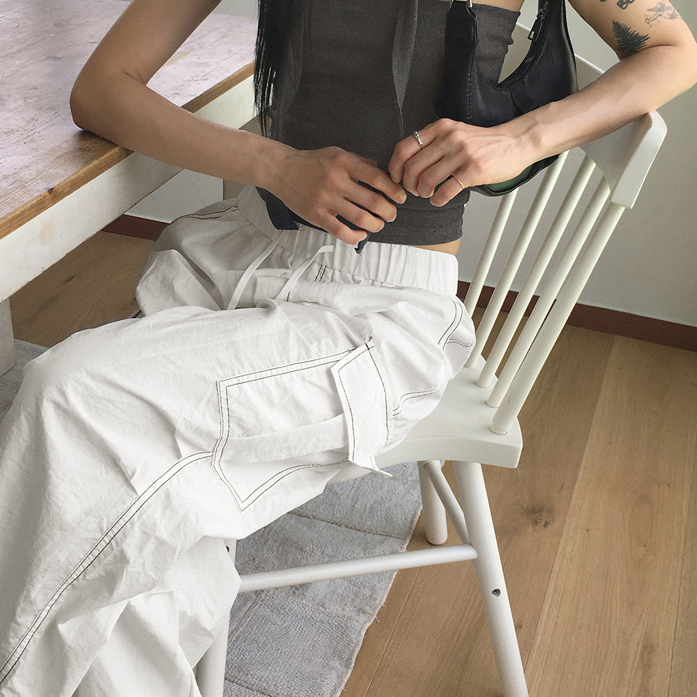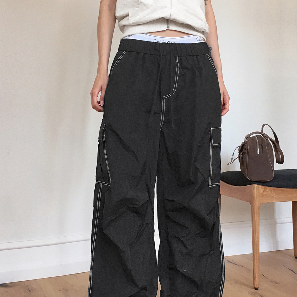 ステッチバイカラーナイロン2WAYカーゴロングワイドジョガーパンツ