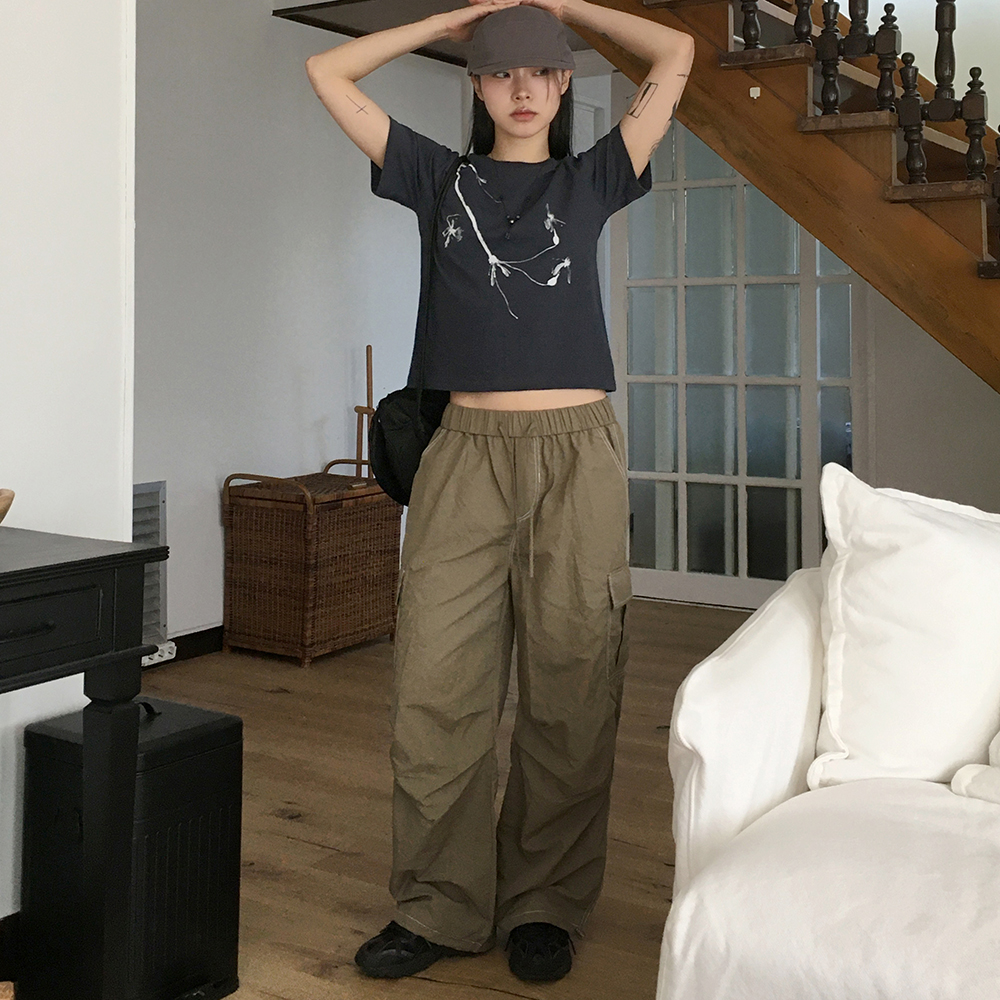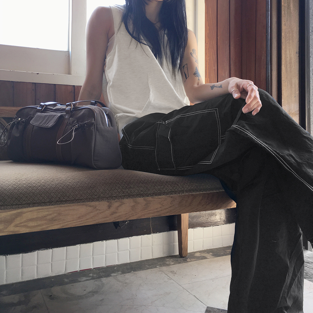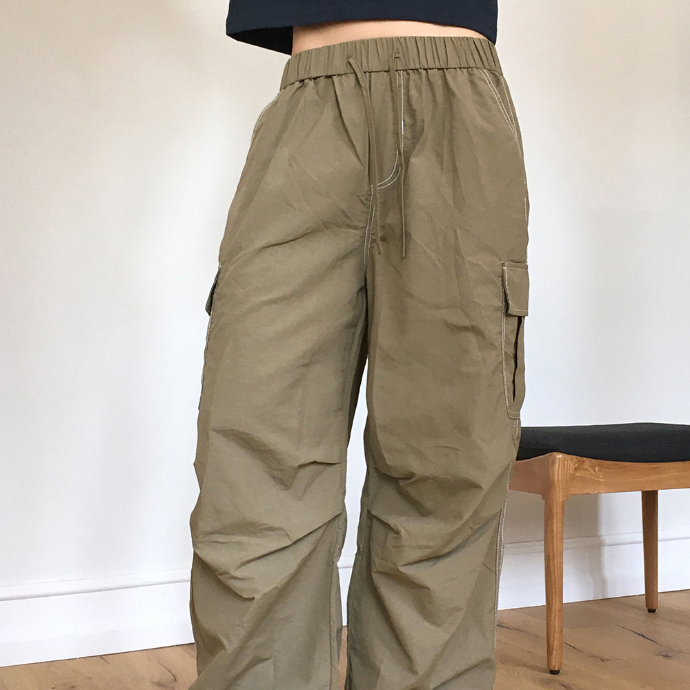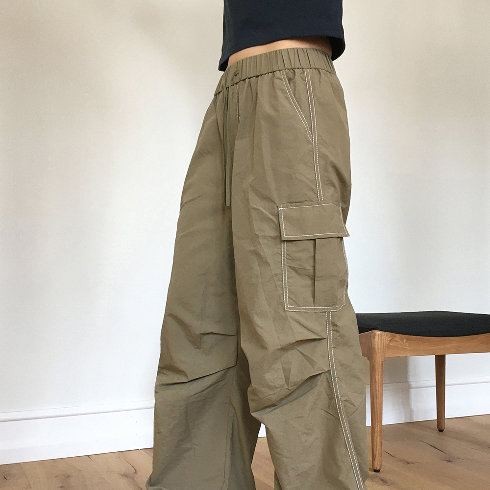 ステッチバイカラーナイロン2WAYカーゴロングワイドジョガーパンツ