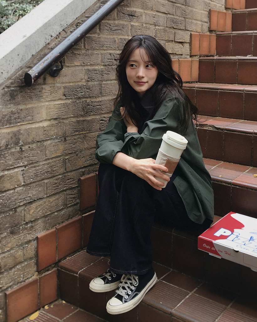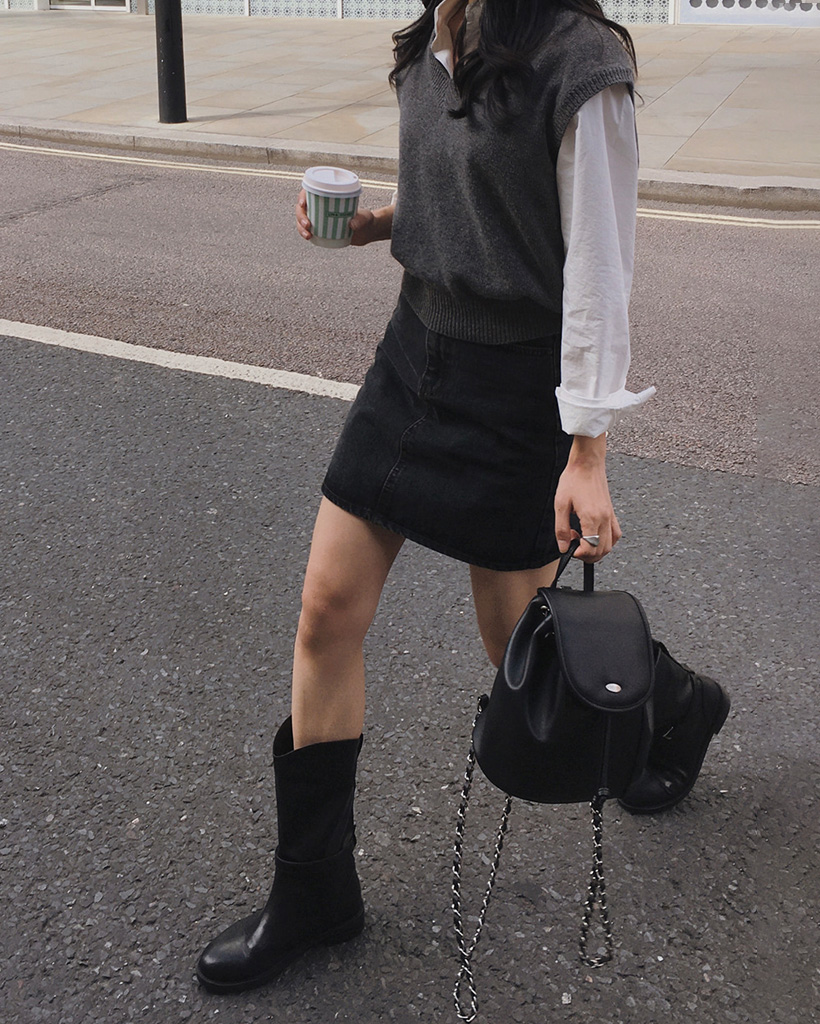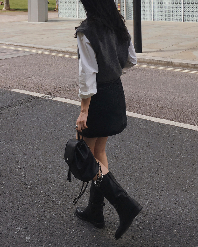 -#SLOWMADE. 투타입 빈티지챠콜 데님스커트 /숏S