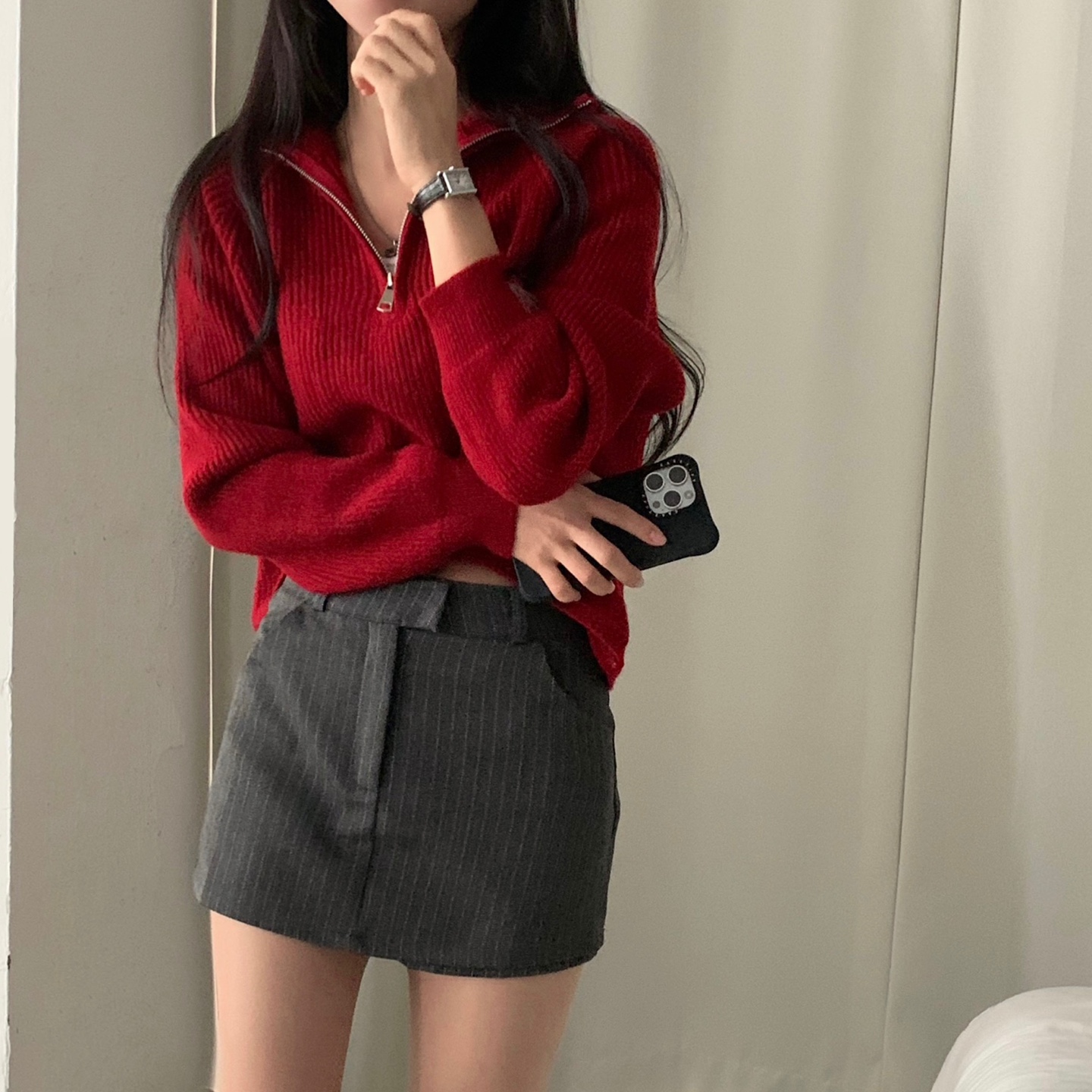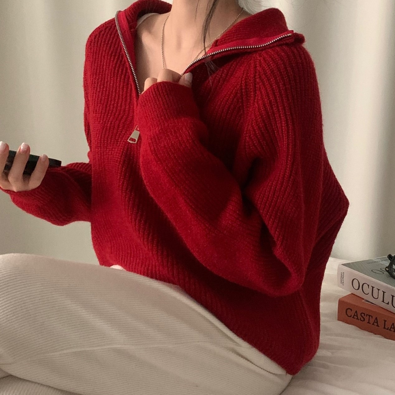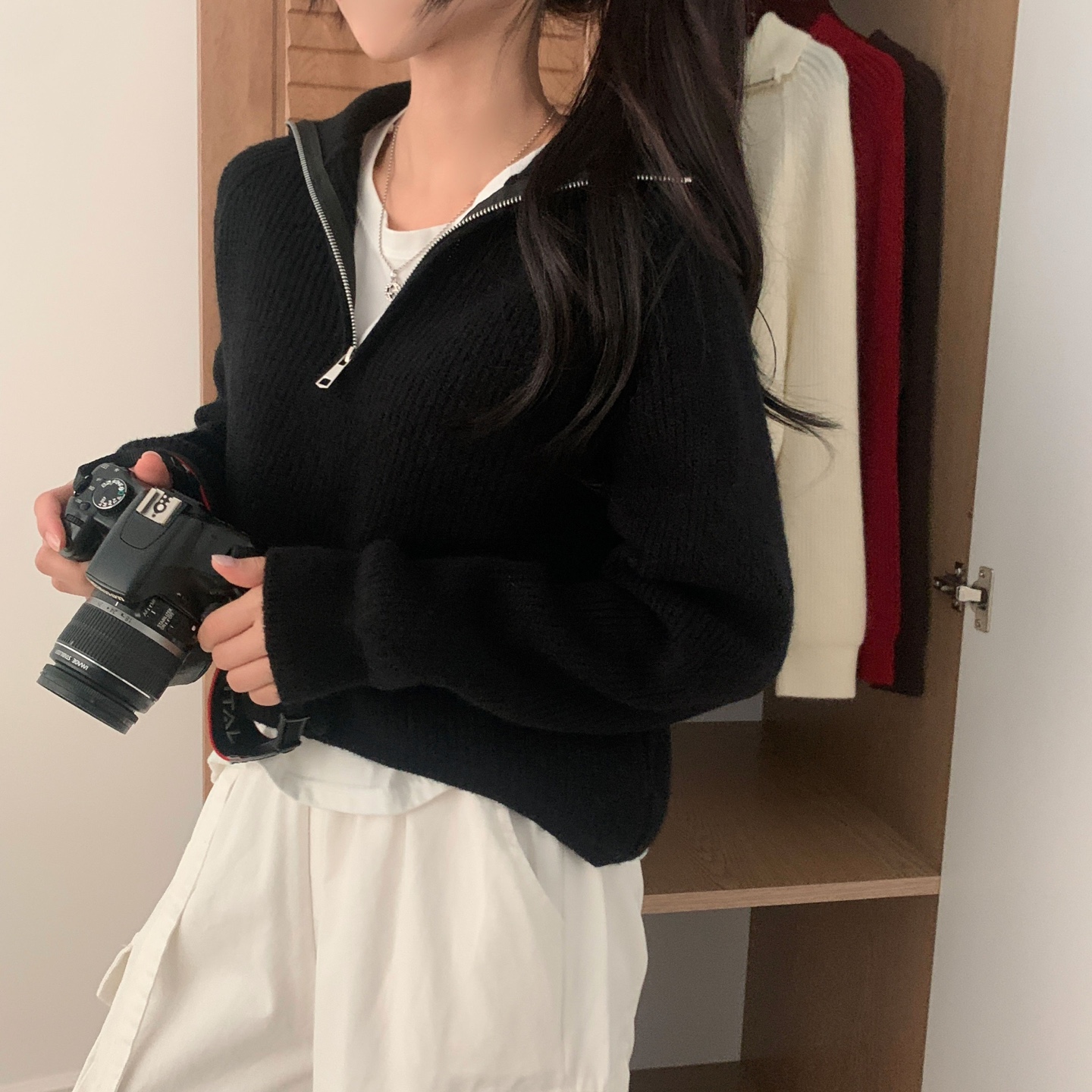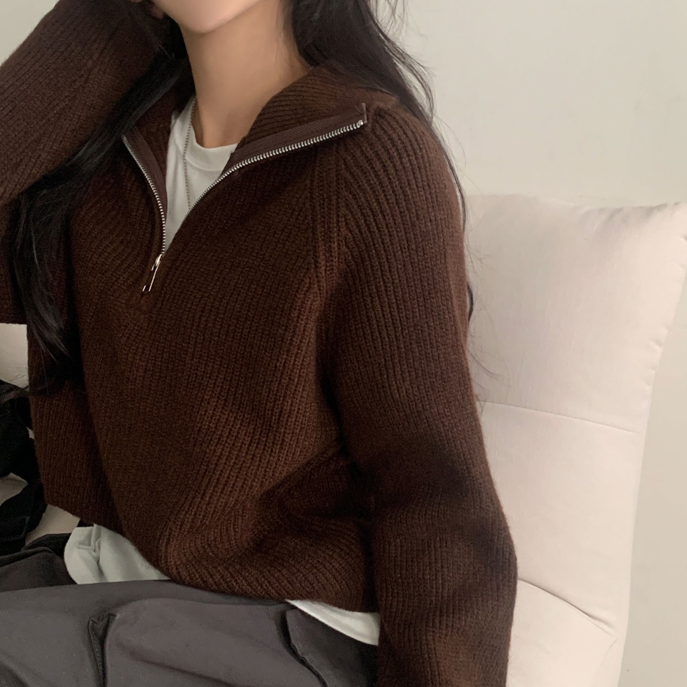 スリムハーフジップニット-4color