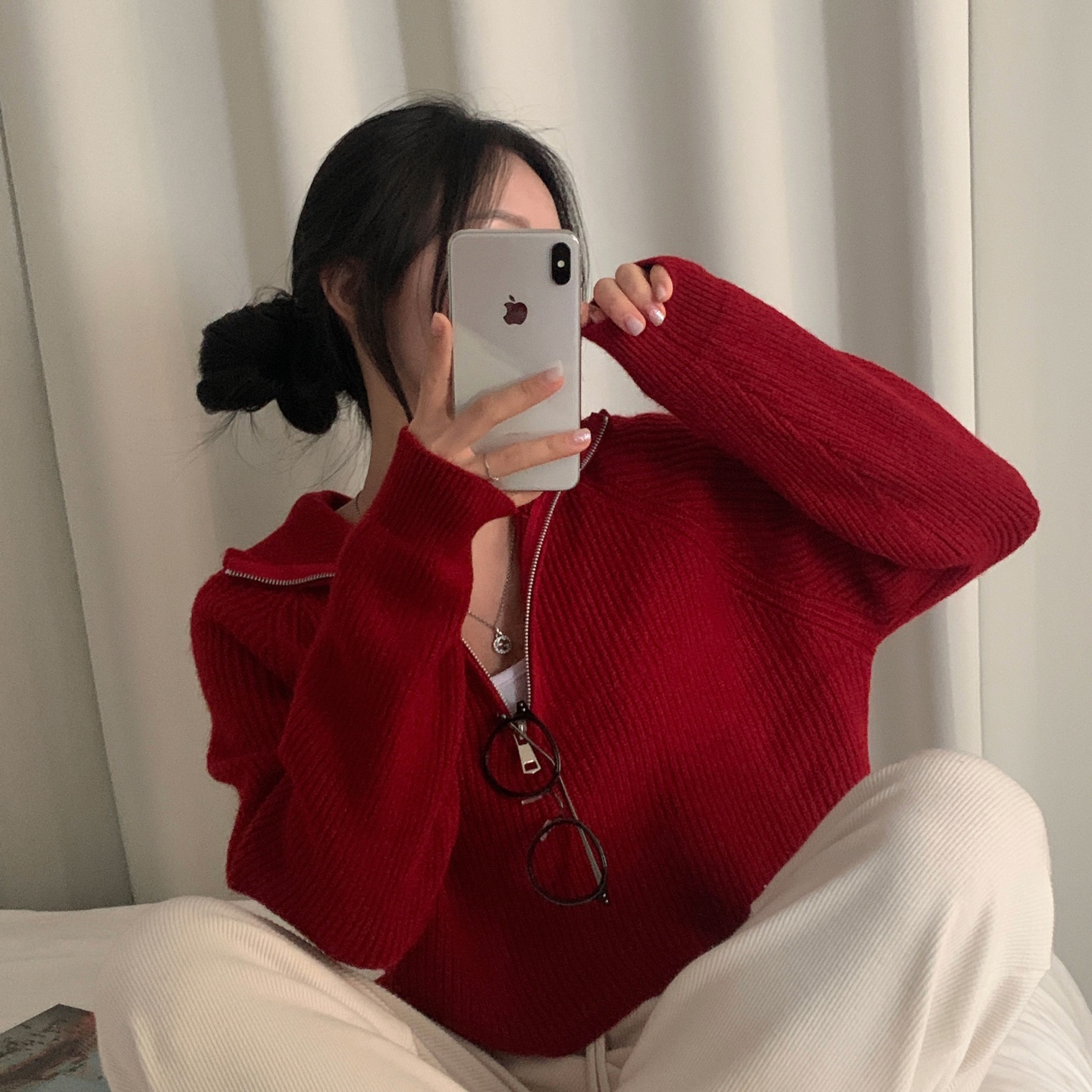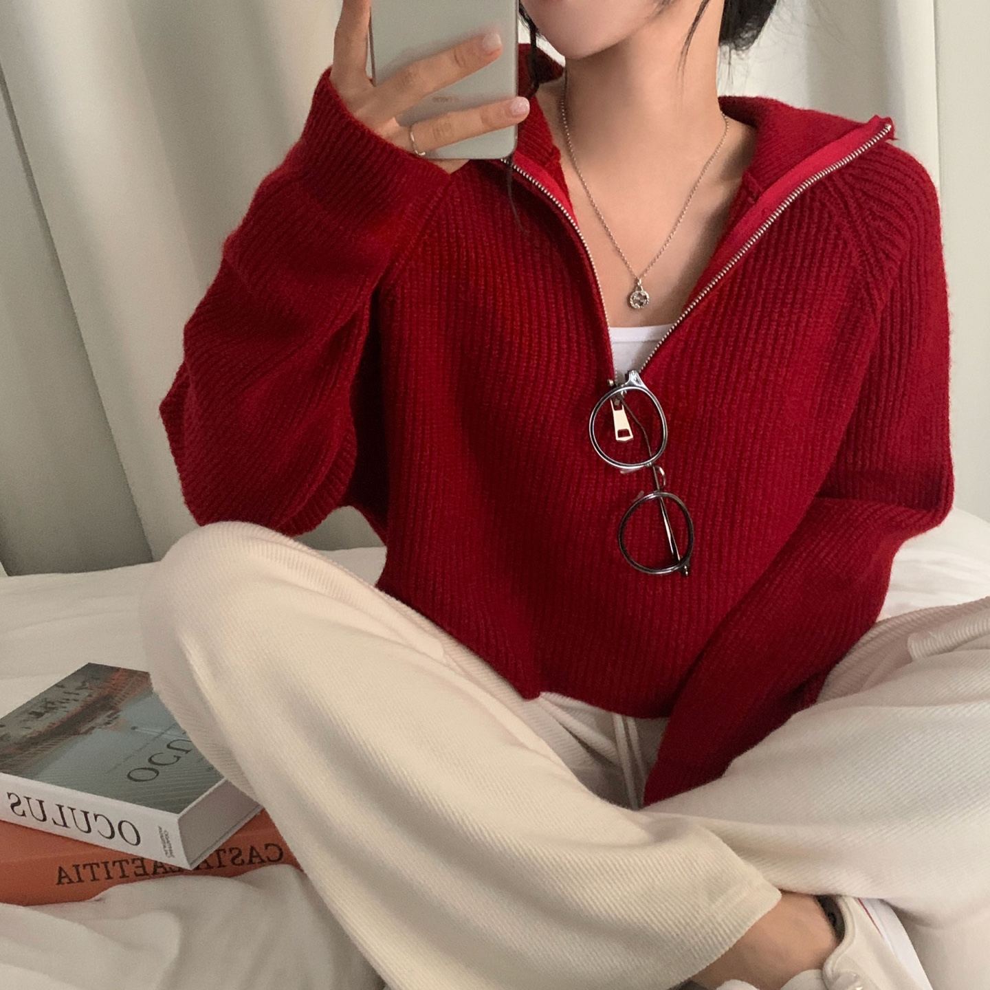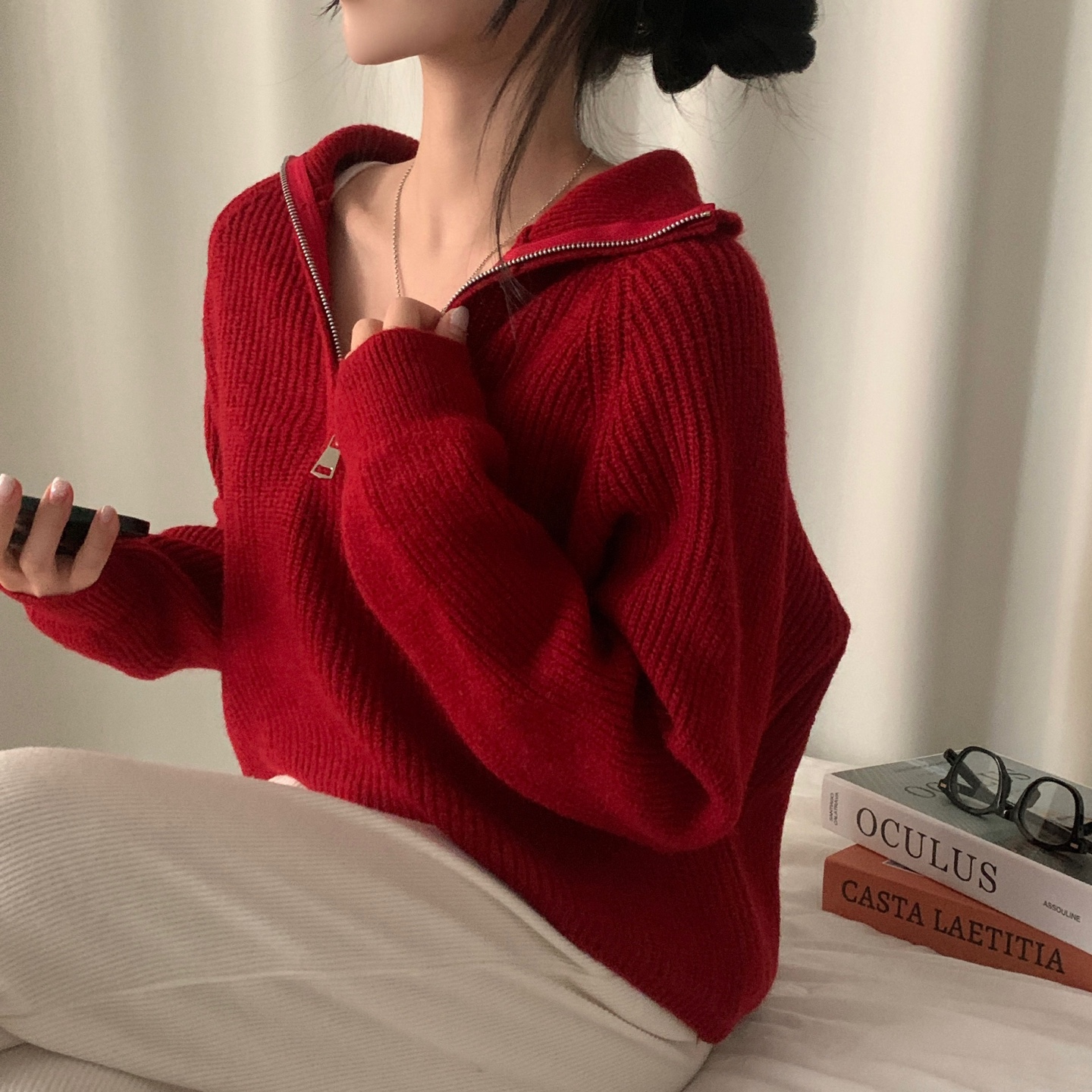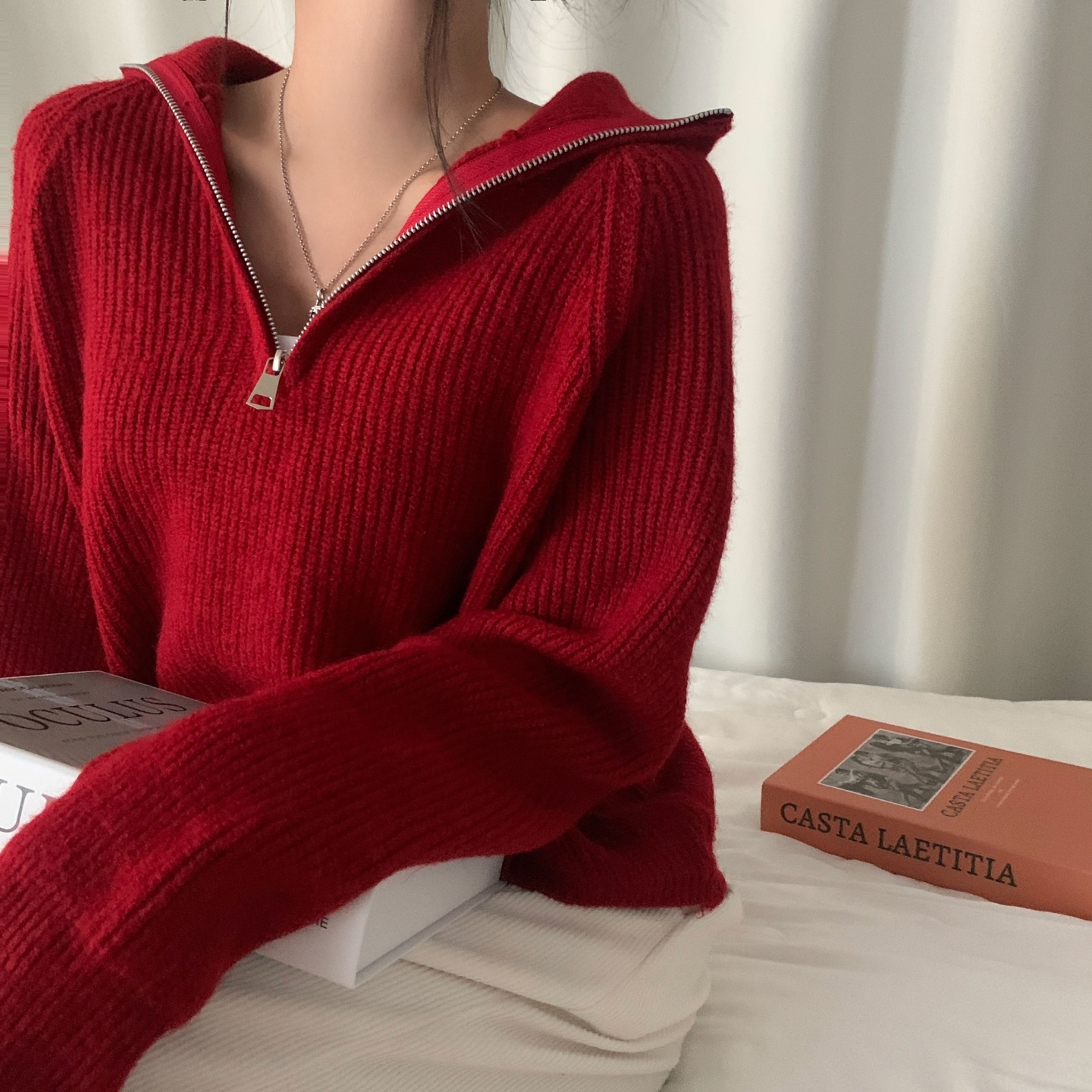 スリムハーフジップニット-4color