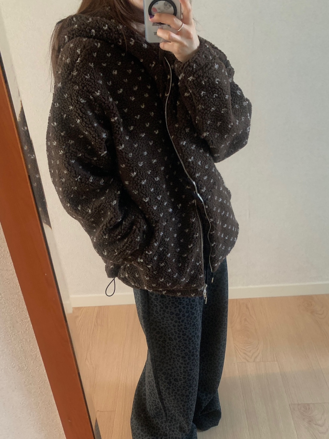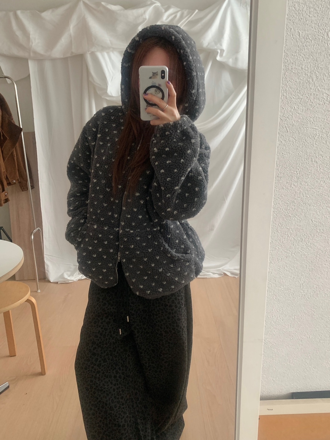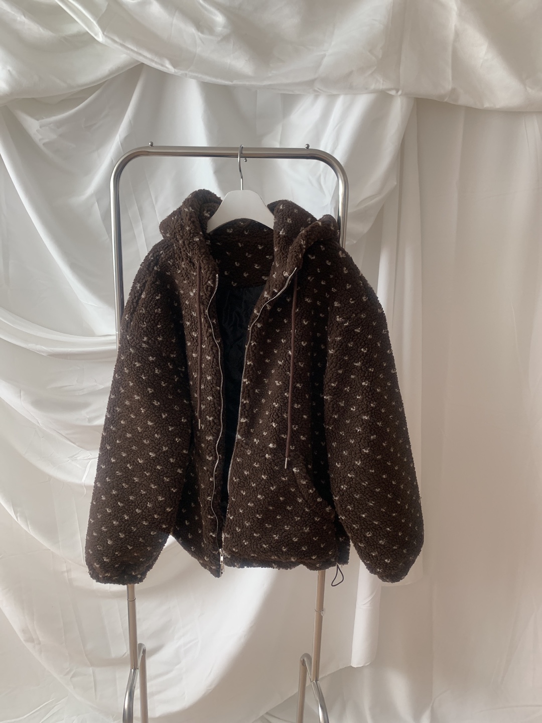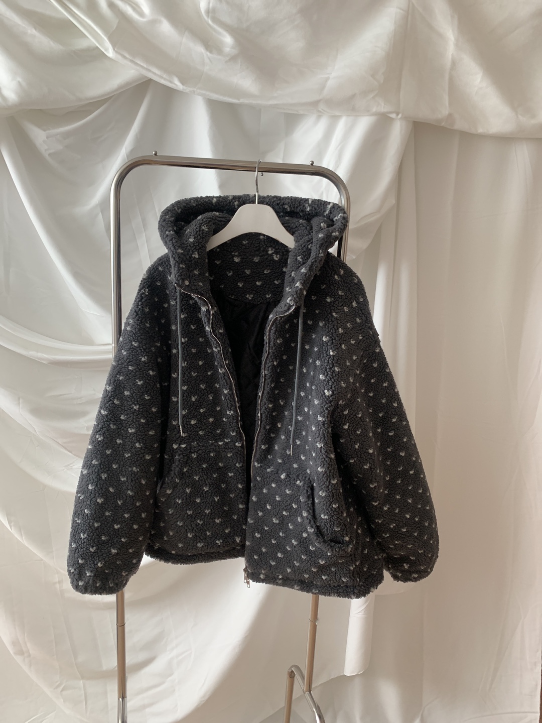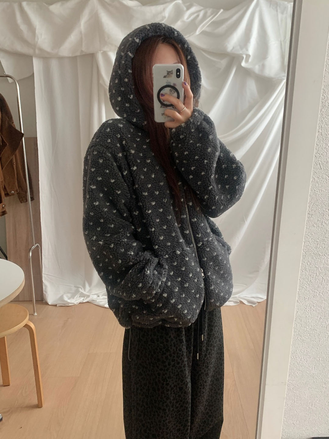 ボアドットフード付きジップアップ
