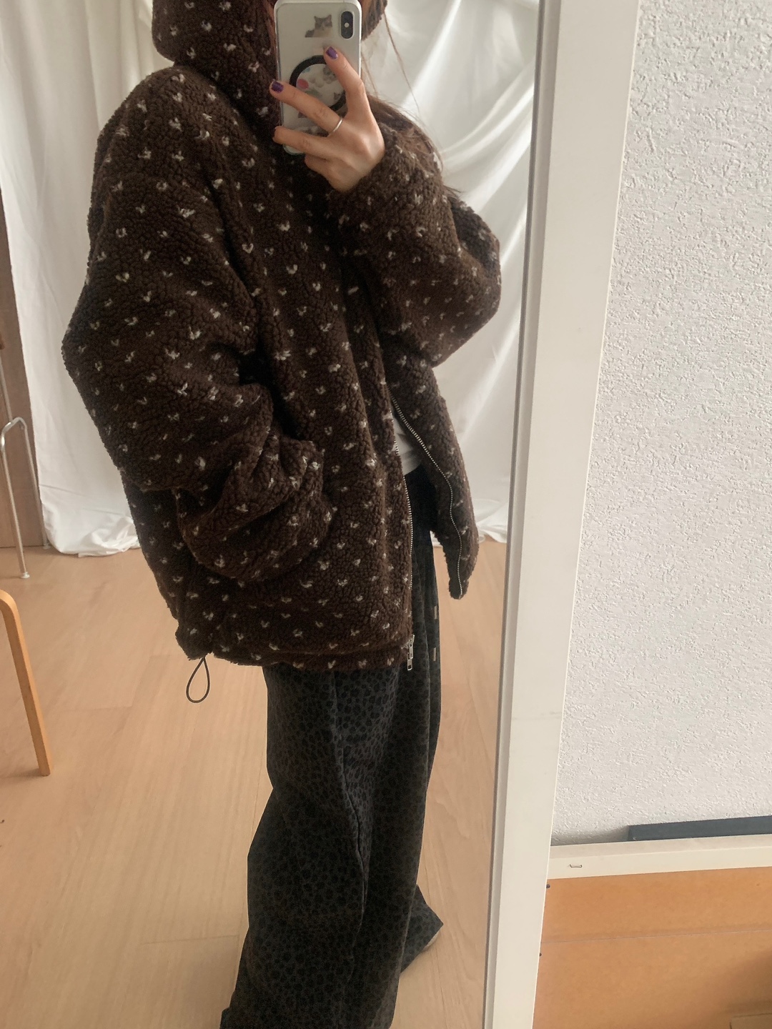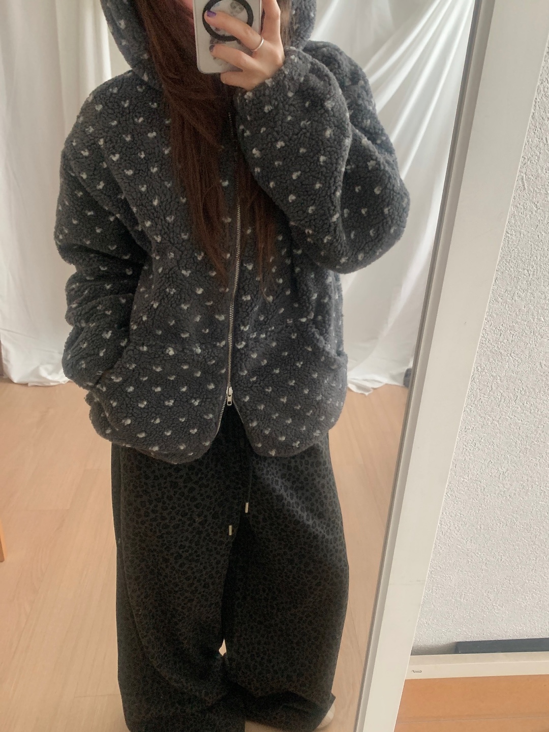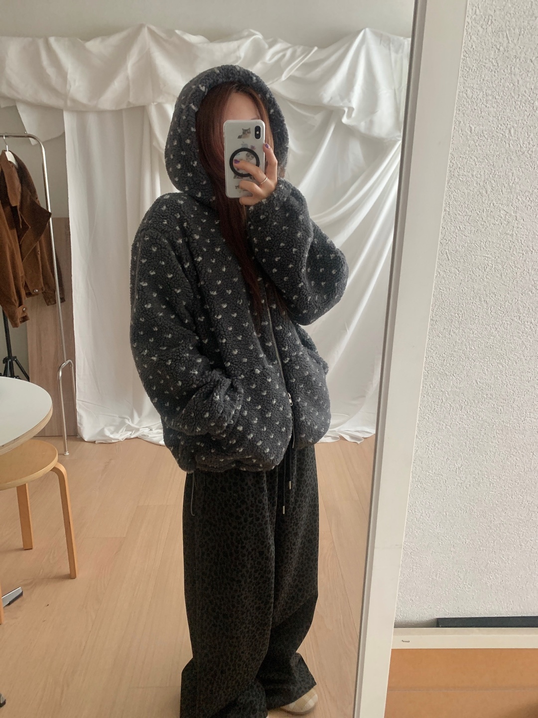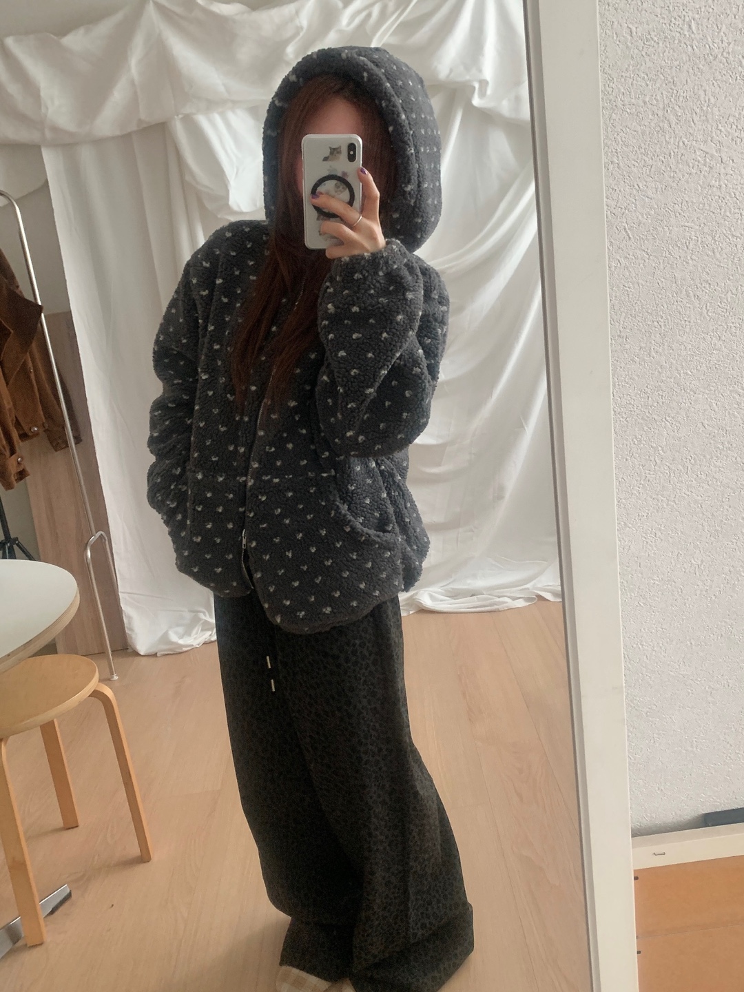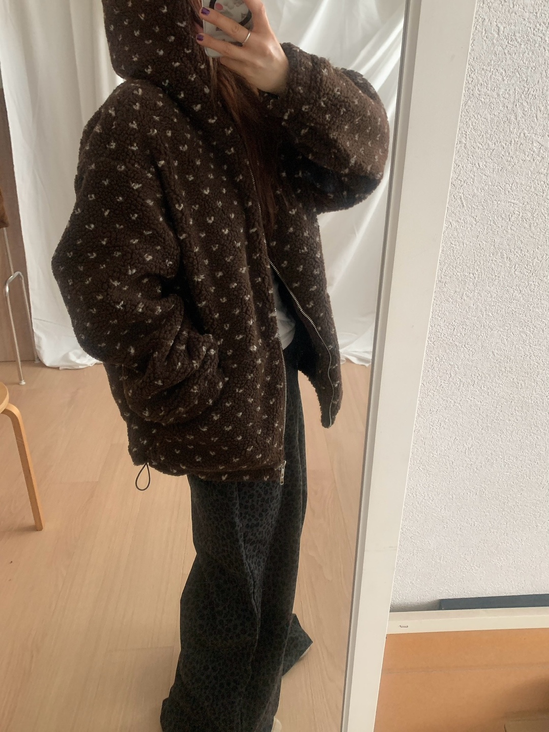 ボアドットフード付きジップアップ