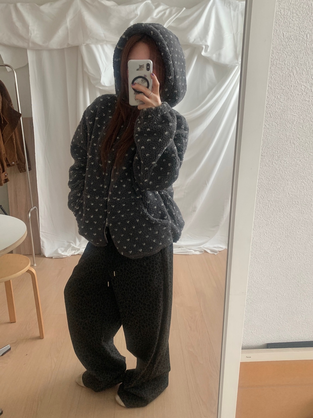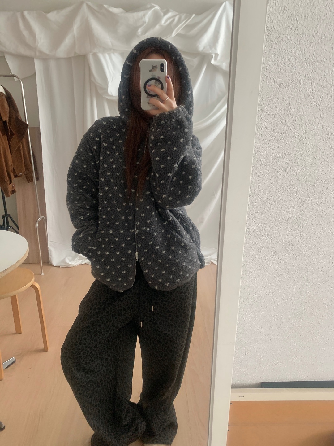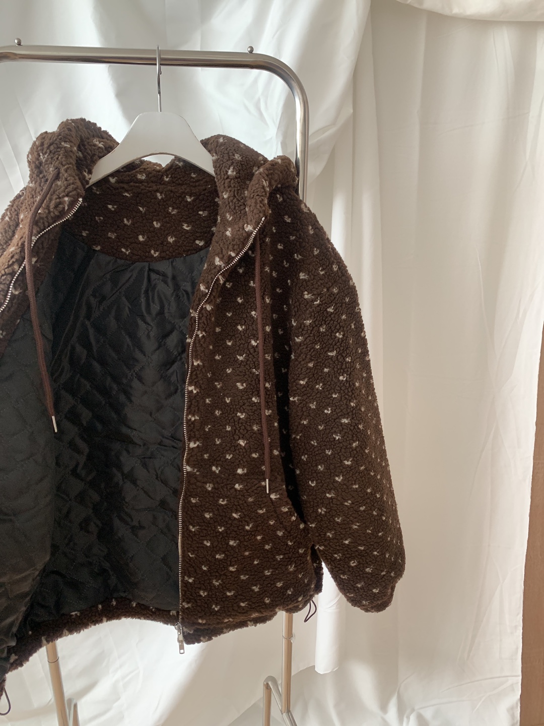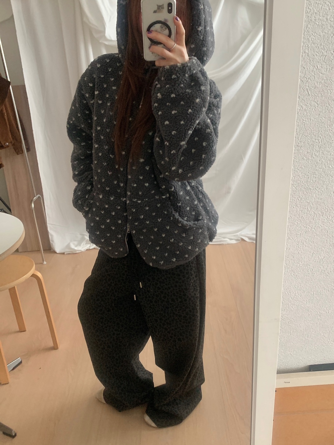 ボアドットフード付きジップアップ