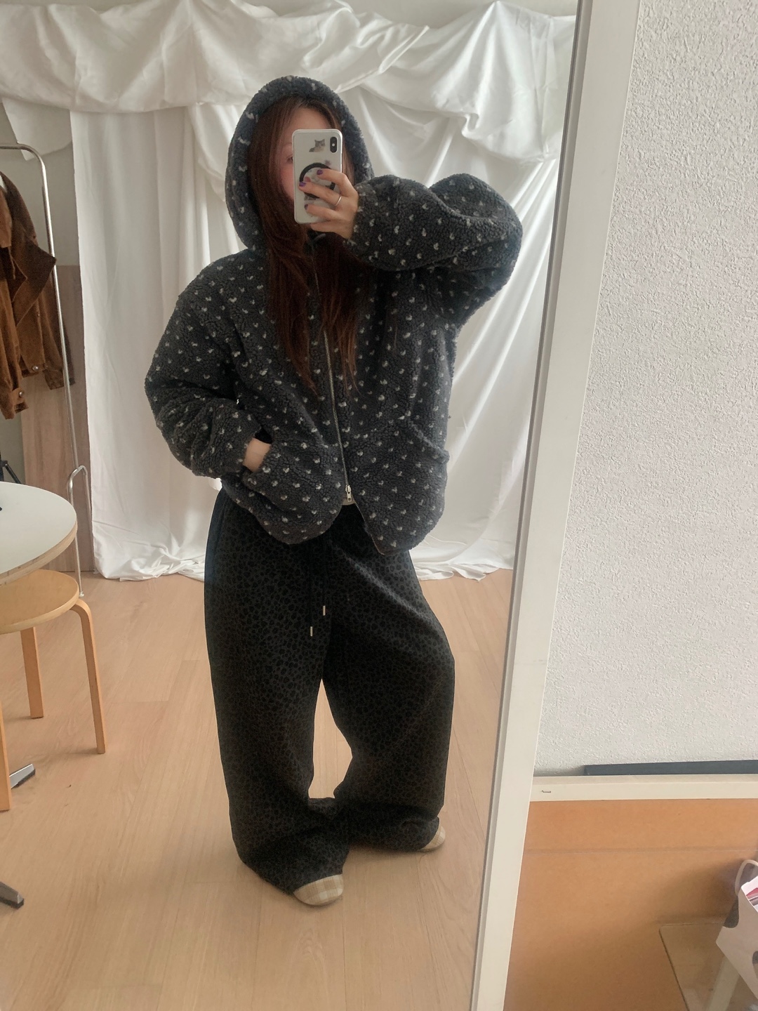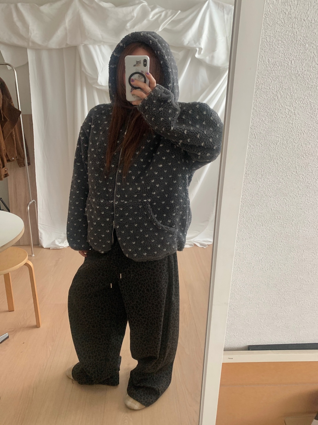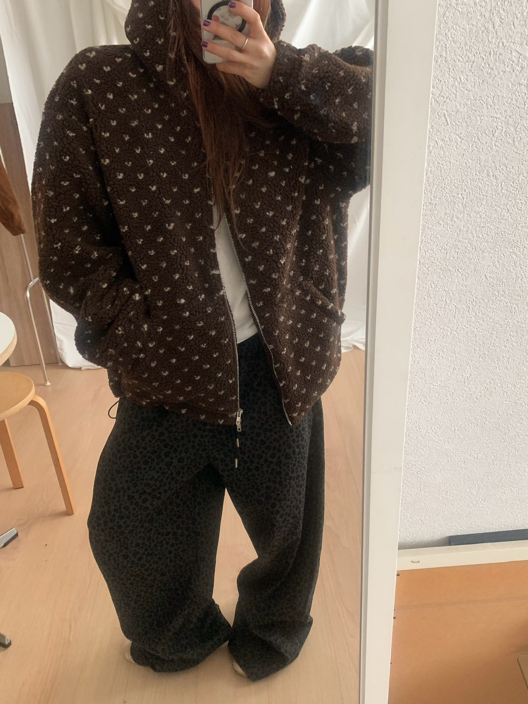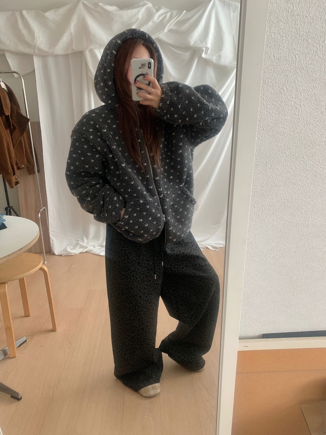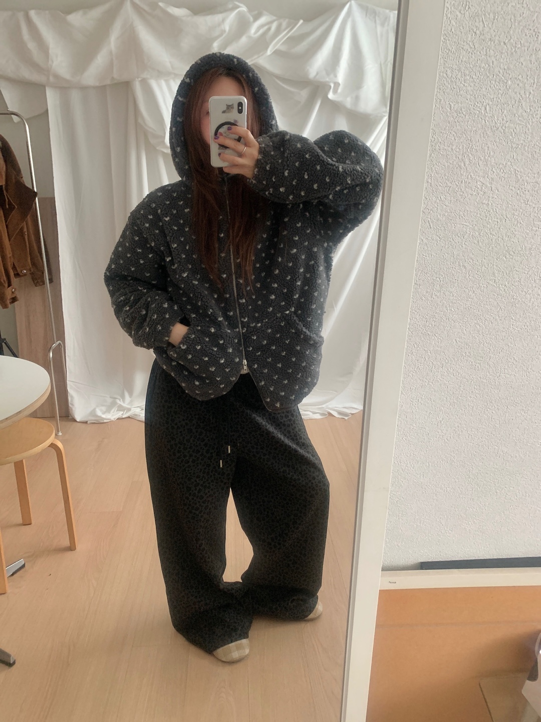 ボアドットフード付きジップアップ