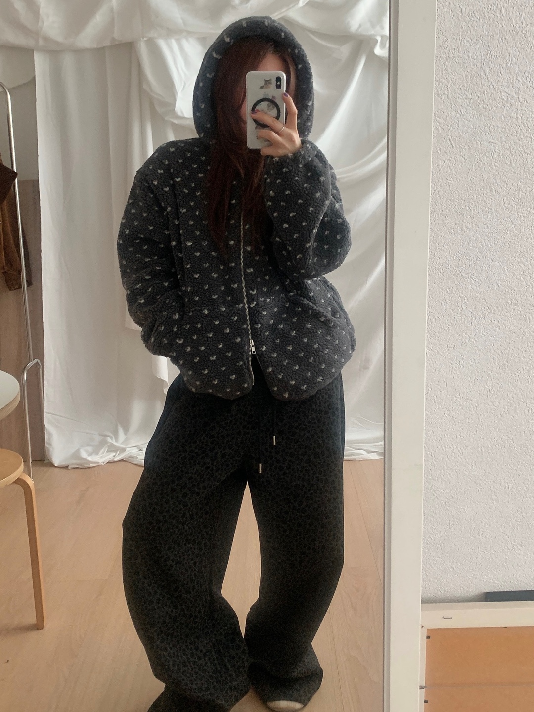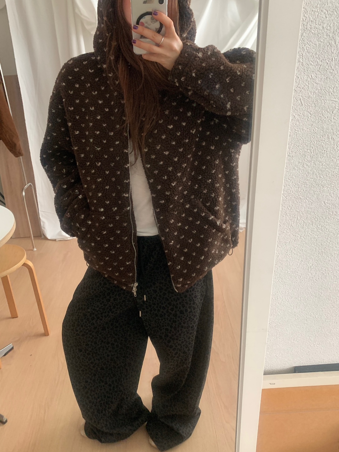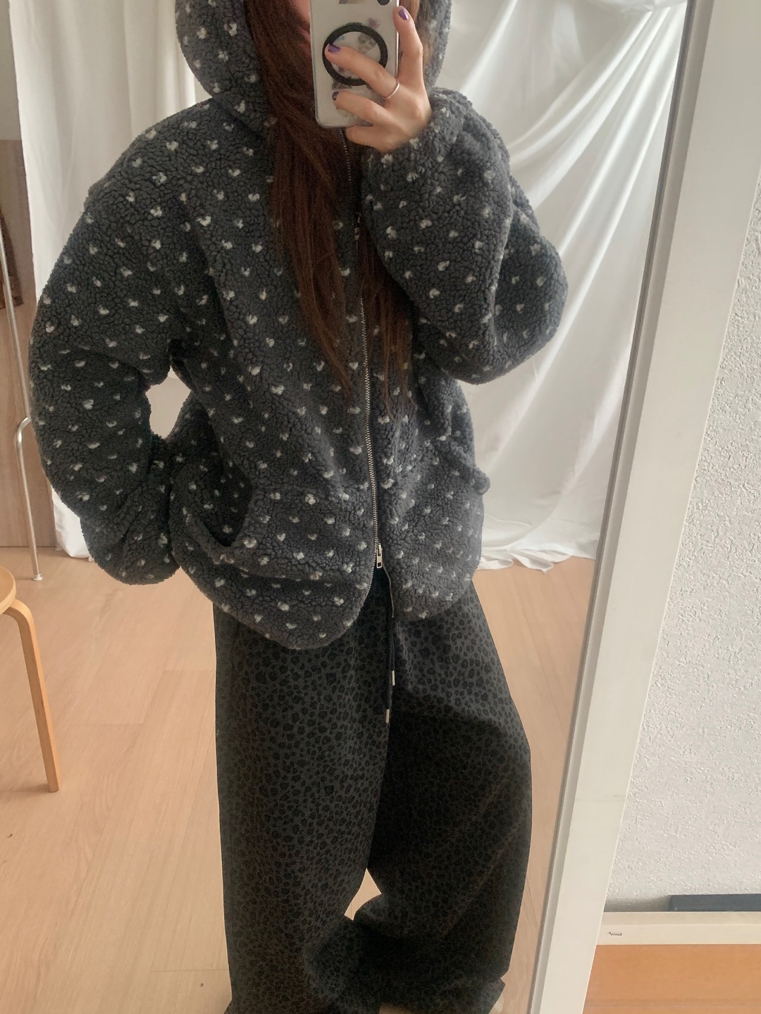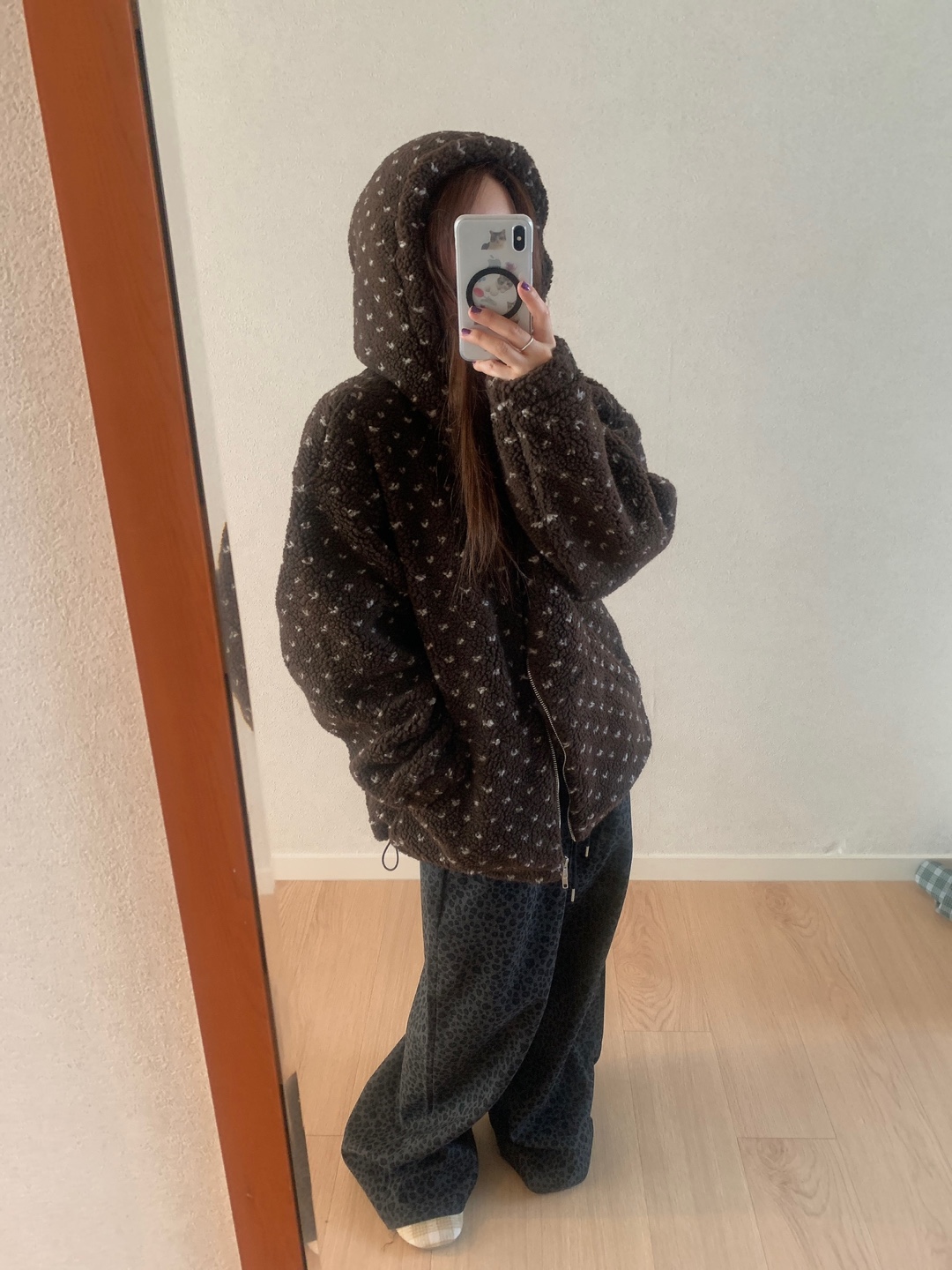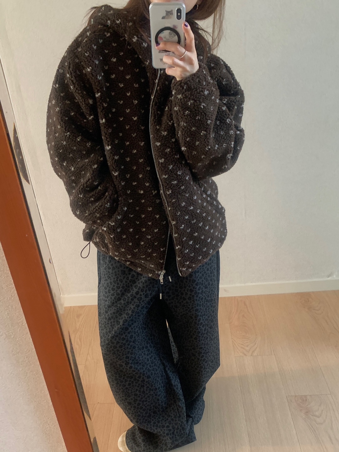 ボアドットフード付きジップアップ