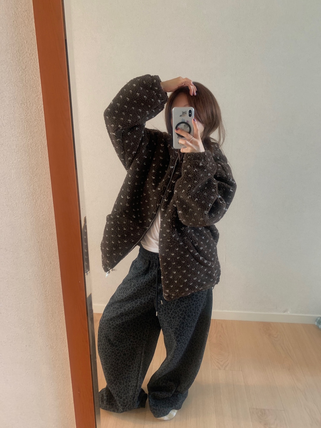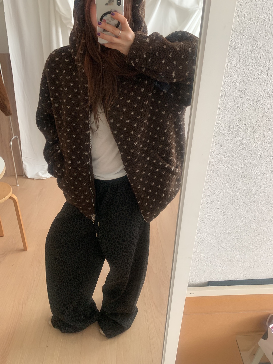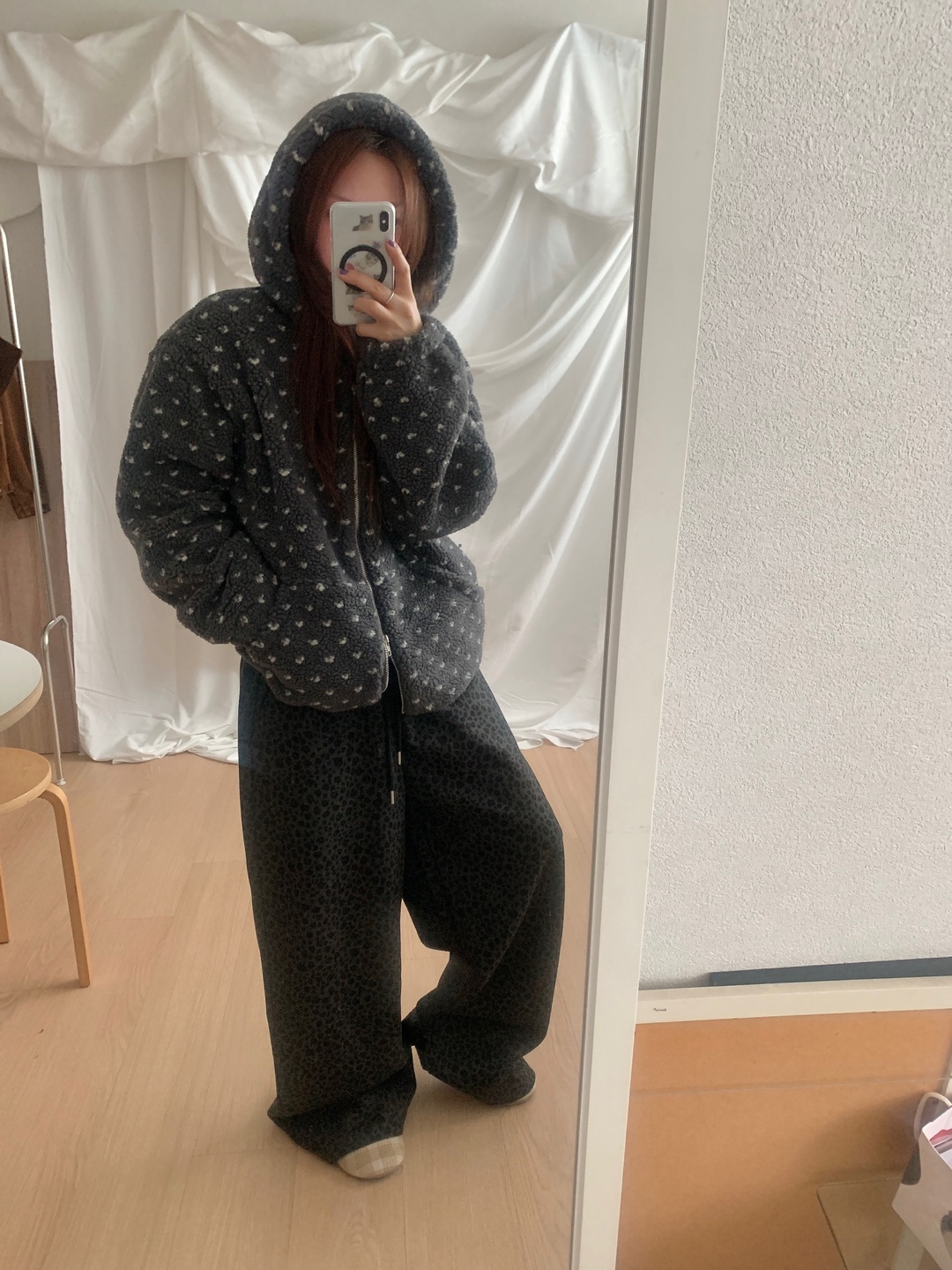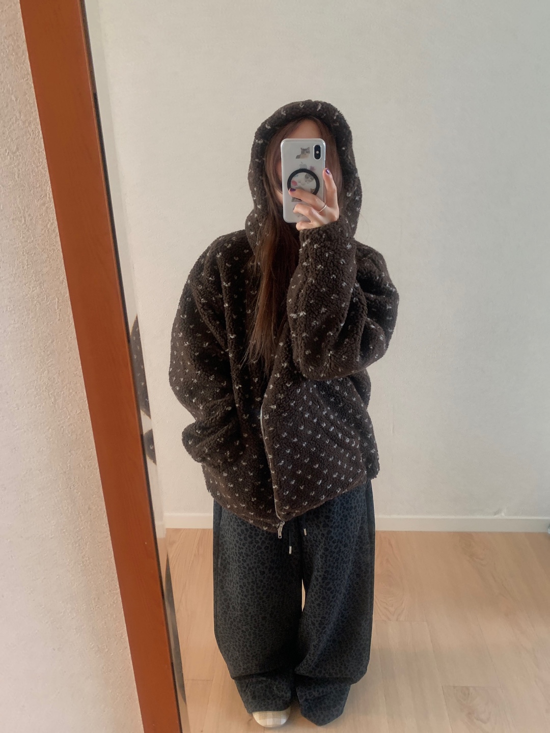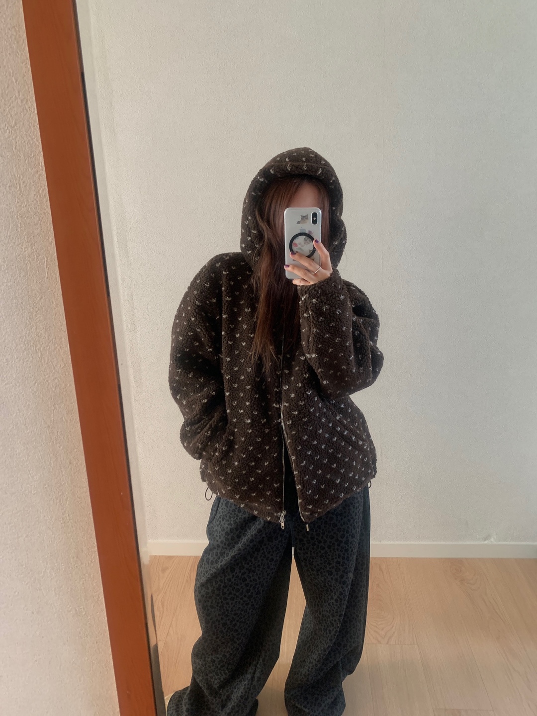 ボアドットフード付きジップアップ