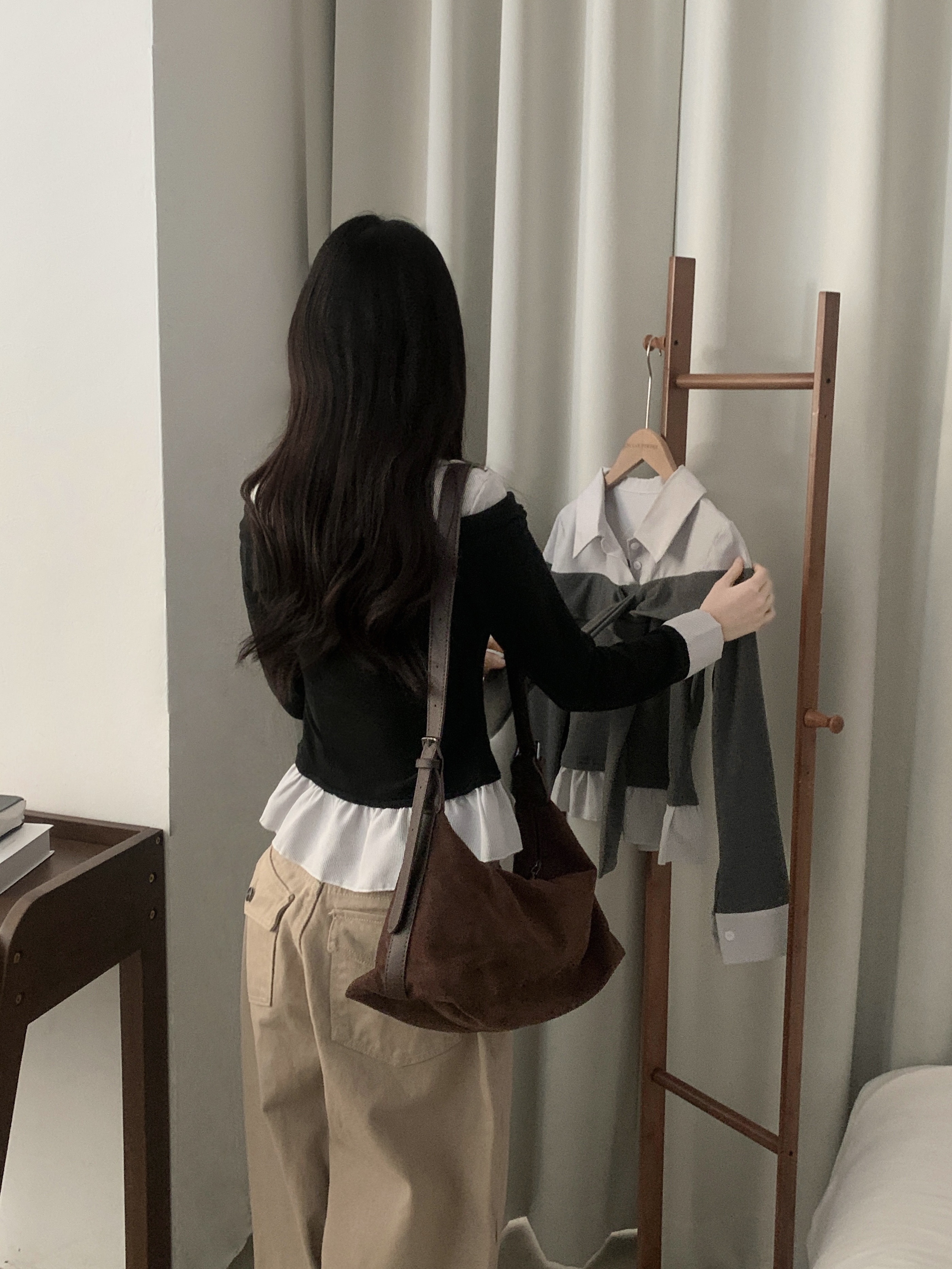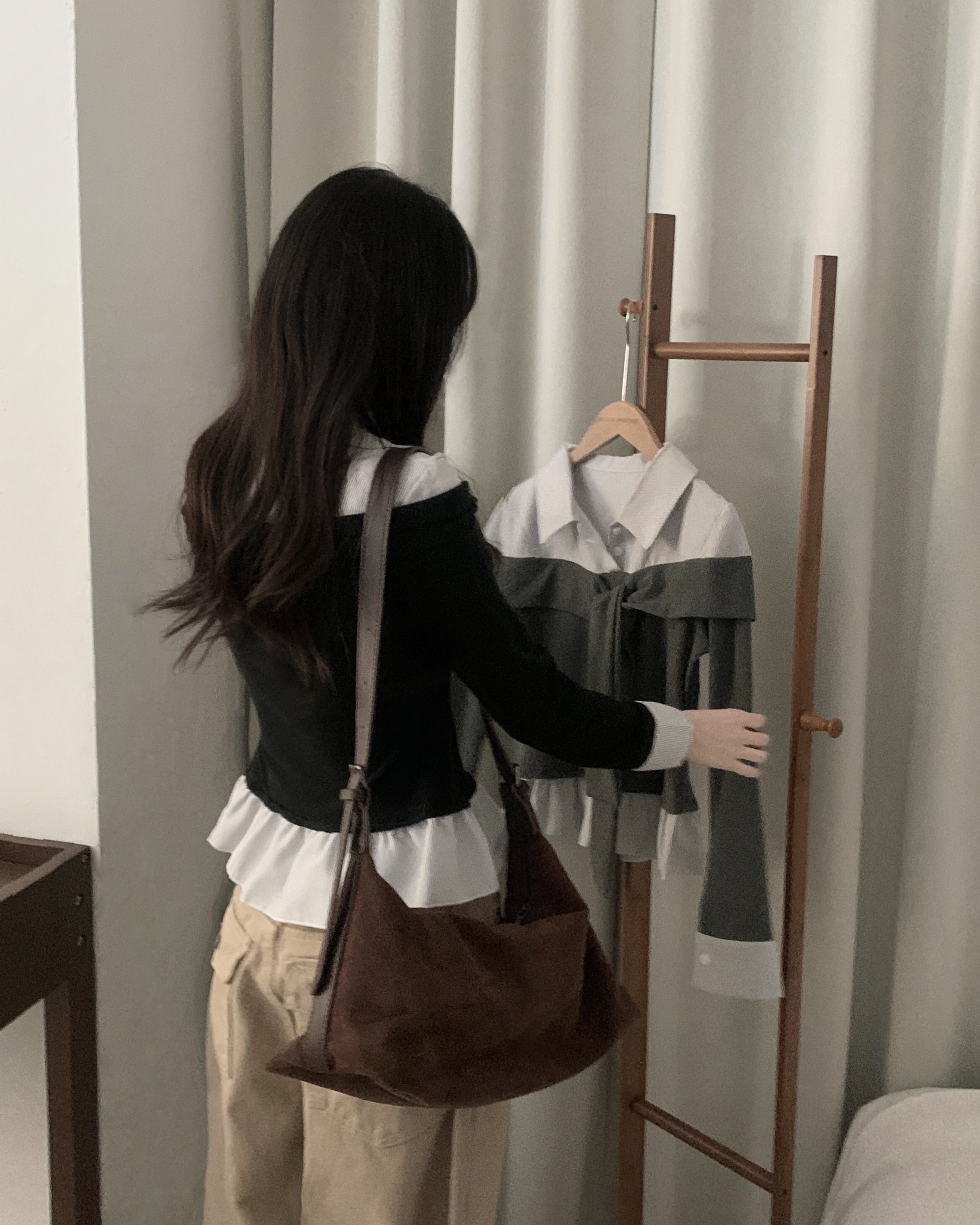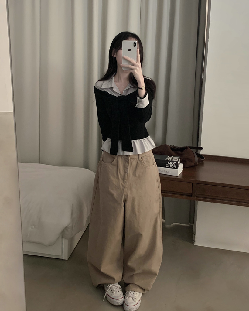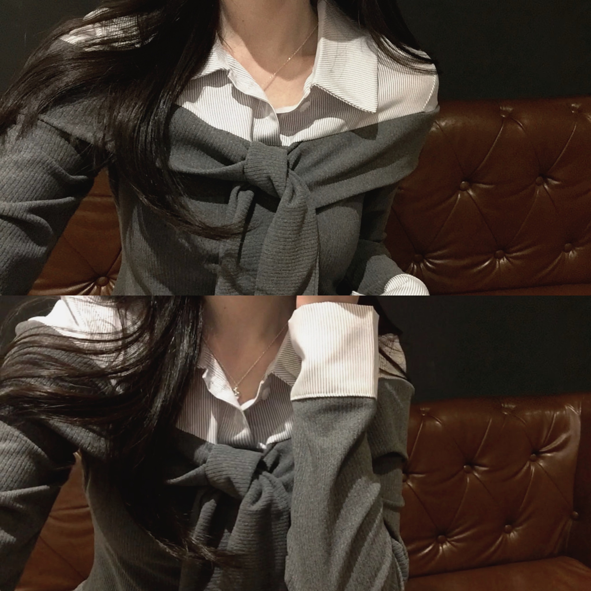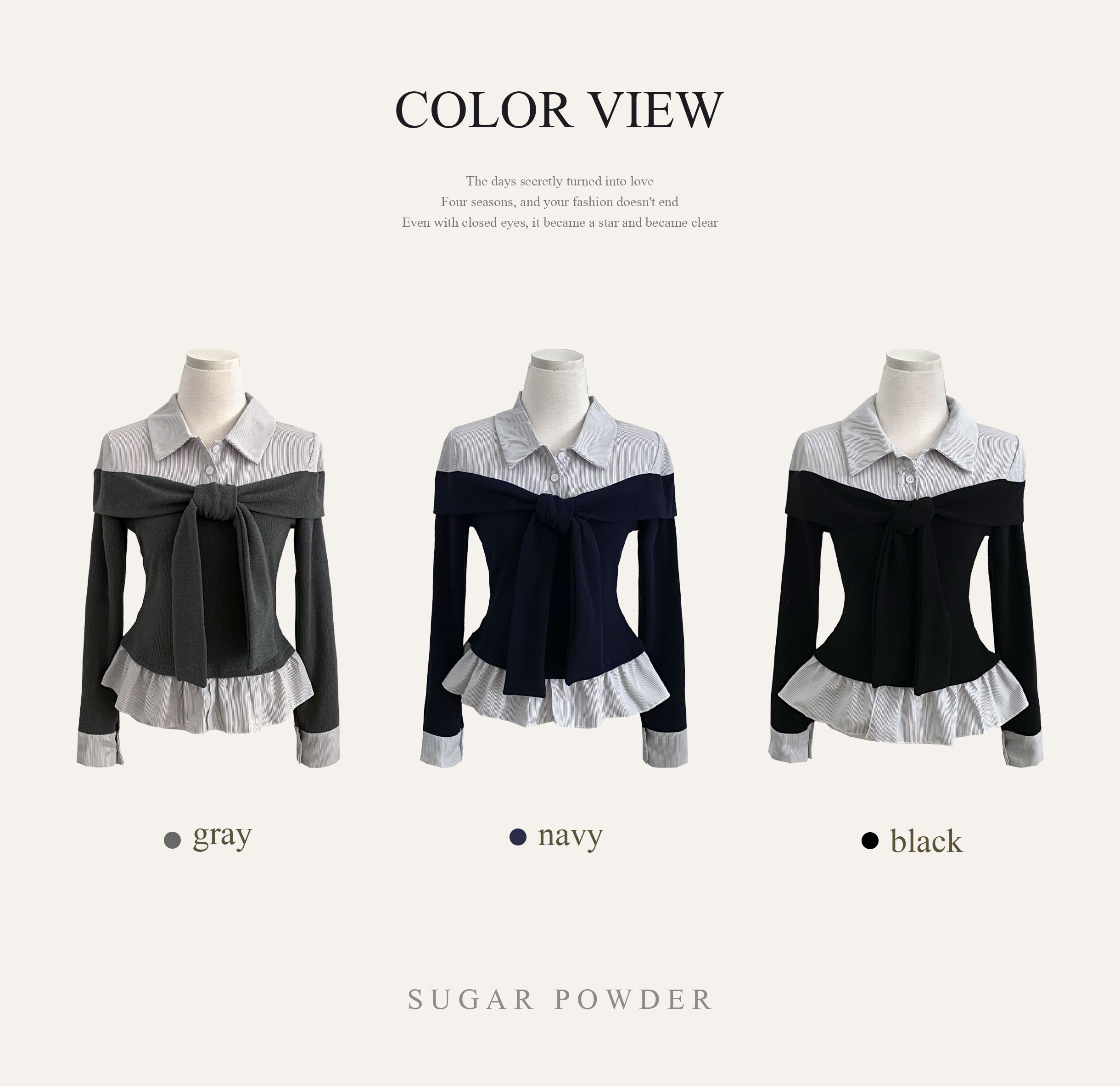(3color) タイ リボン フリル レイヤード ドッキング シャツ Tシャツ トップス