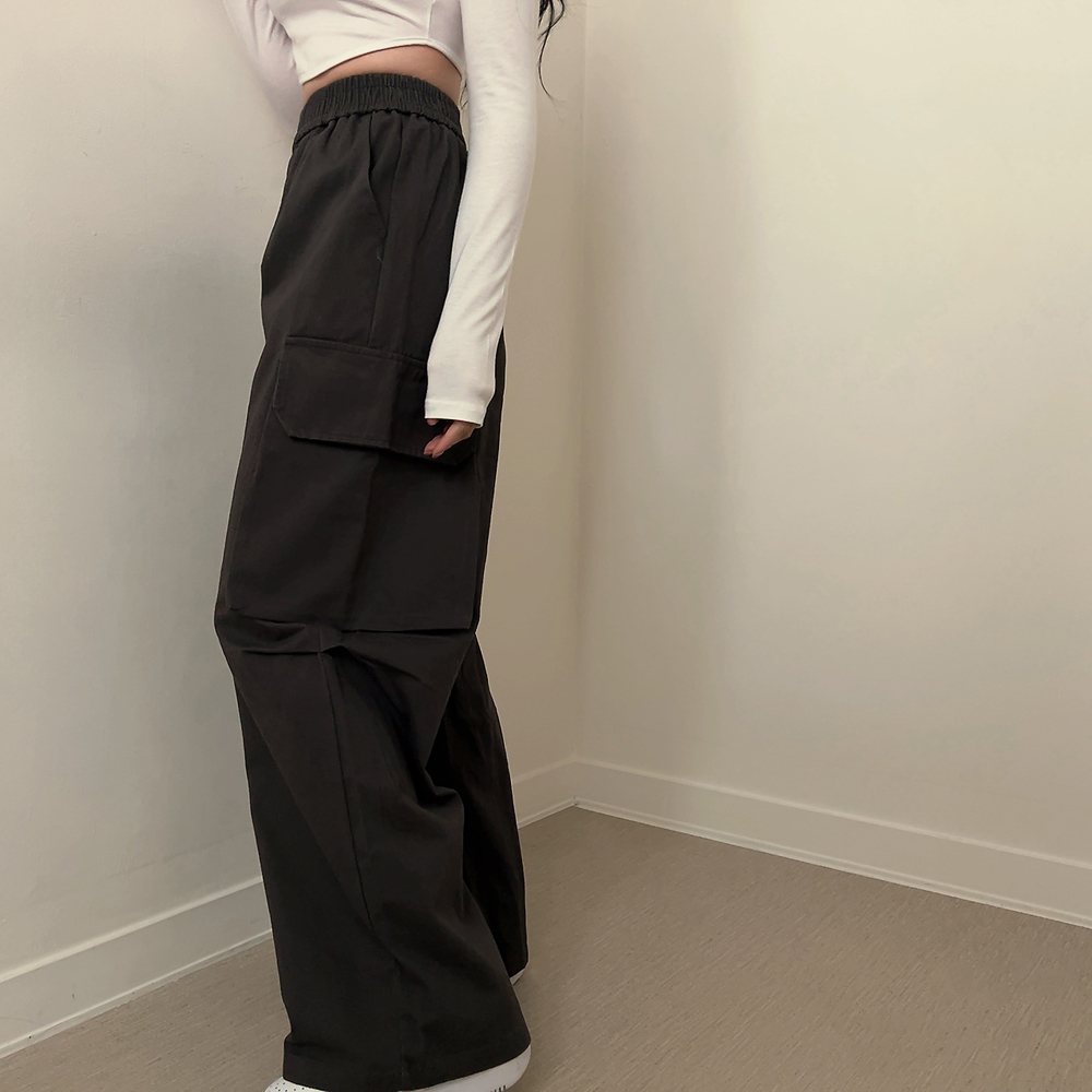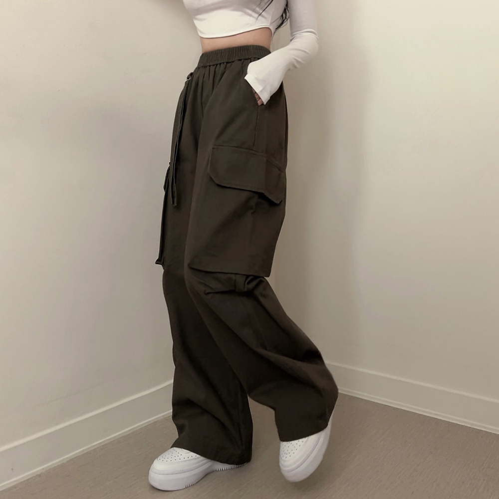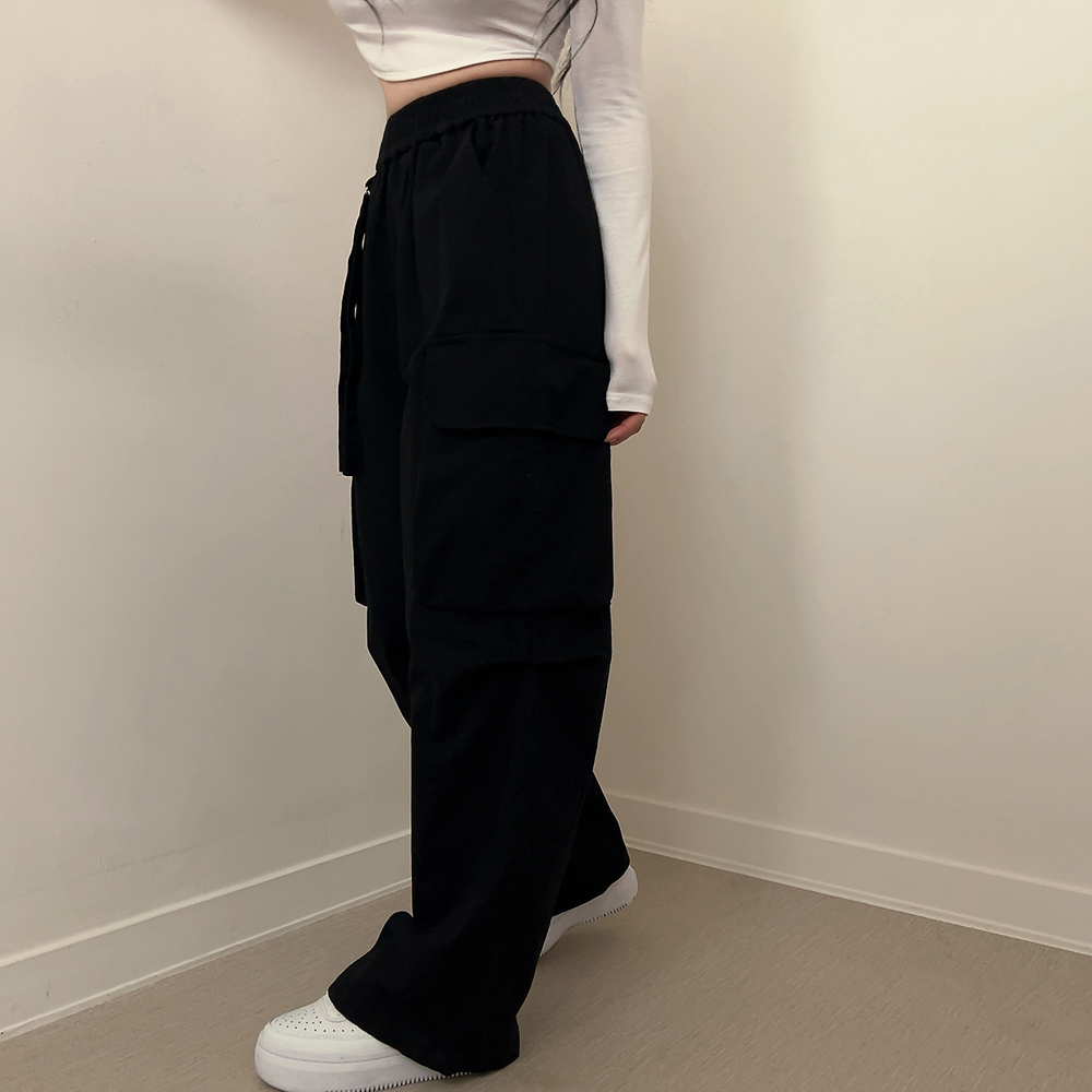 コットンゴムカーゴパンツポケットストレートワイドロングパンツ